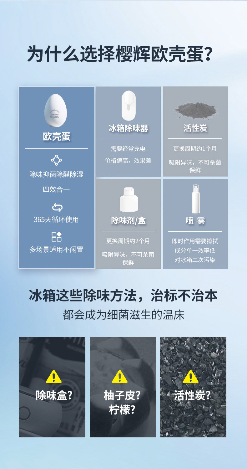 【樱辉除味抑菌欧壳蛋】除味抑菌保鲜除醛四效合一新房装修冰箱室内异味净化250g/个