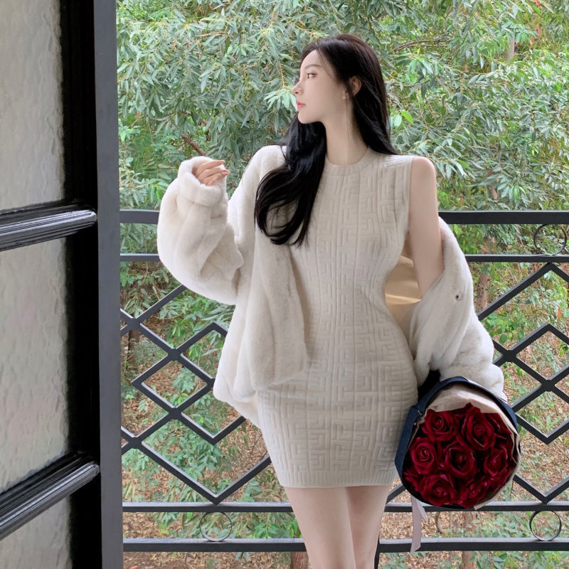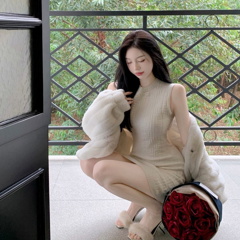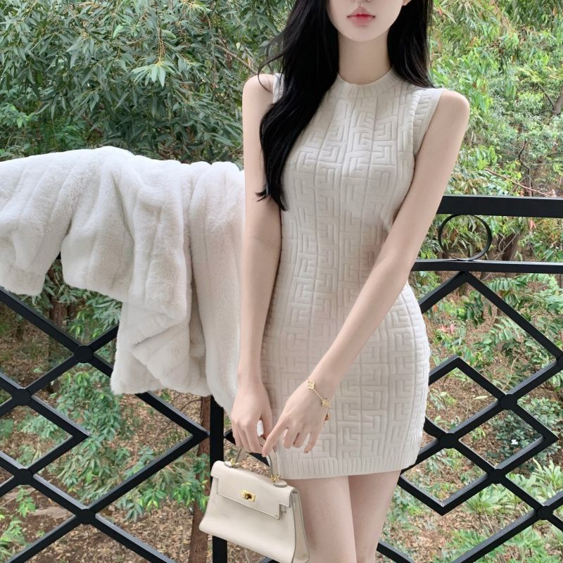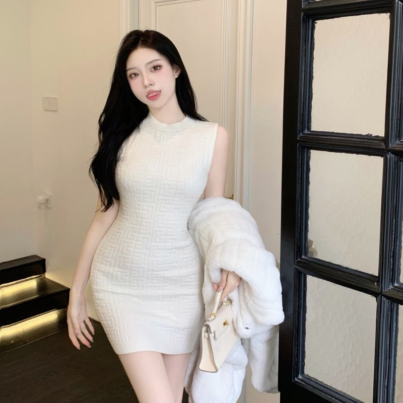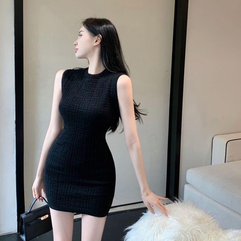 【时尚性感修身❗️显瘦显高提花背心连衣裙】性感迷人,展现身体曲线,亲肤质地,舒适柔软顺滑,穿上舒适优雅迷人,黑色包臀短裙子春秋新款圆领针织裙女粉丝专属