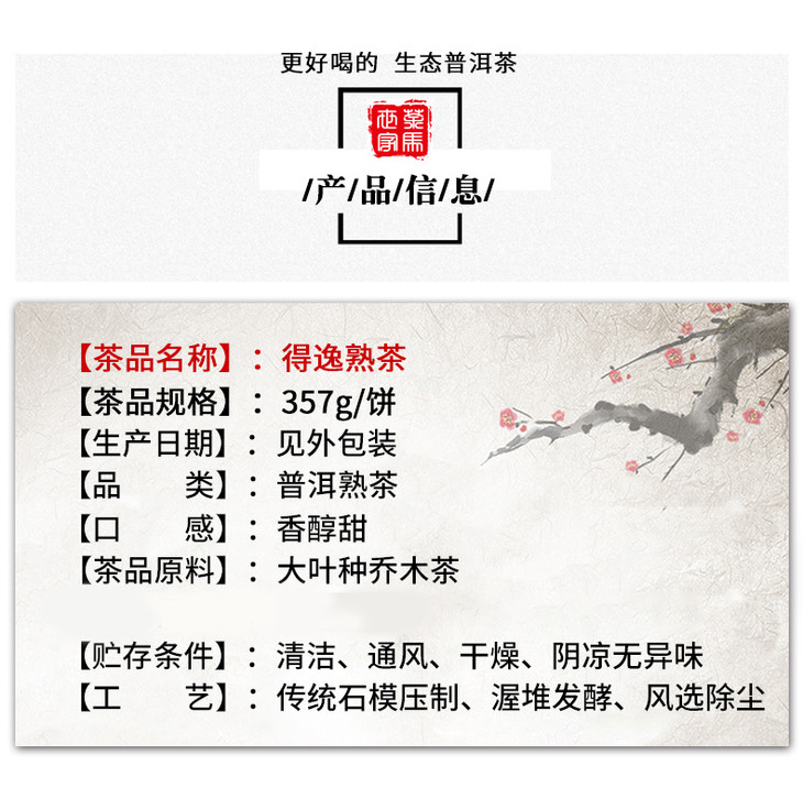 【老牌爆款】茶马世家得逸熟普洱熟茶357g