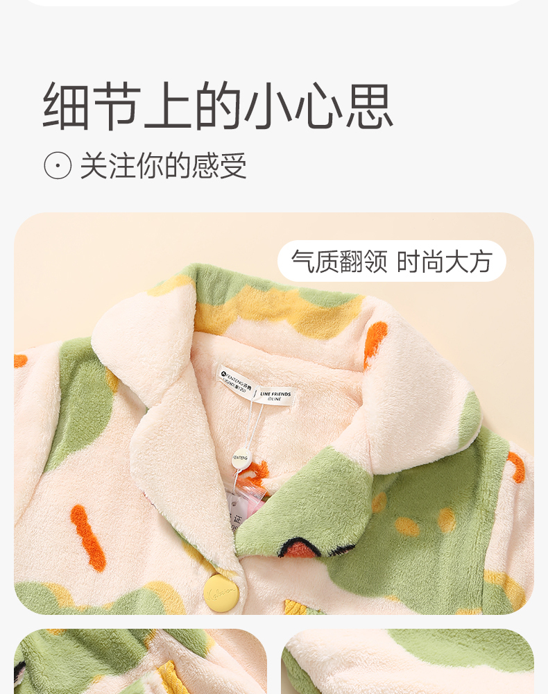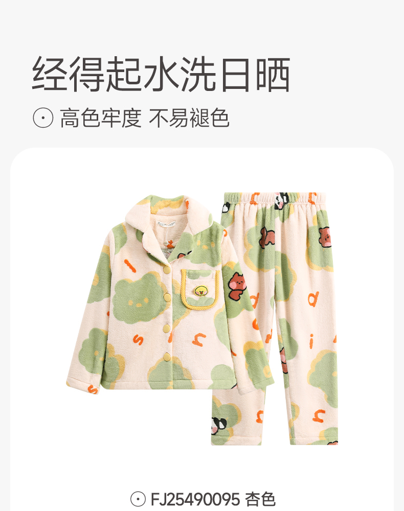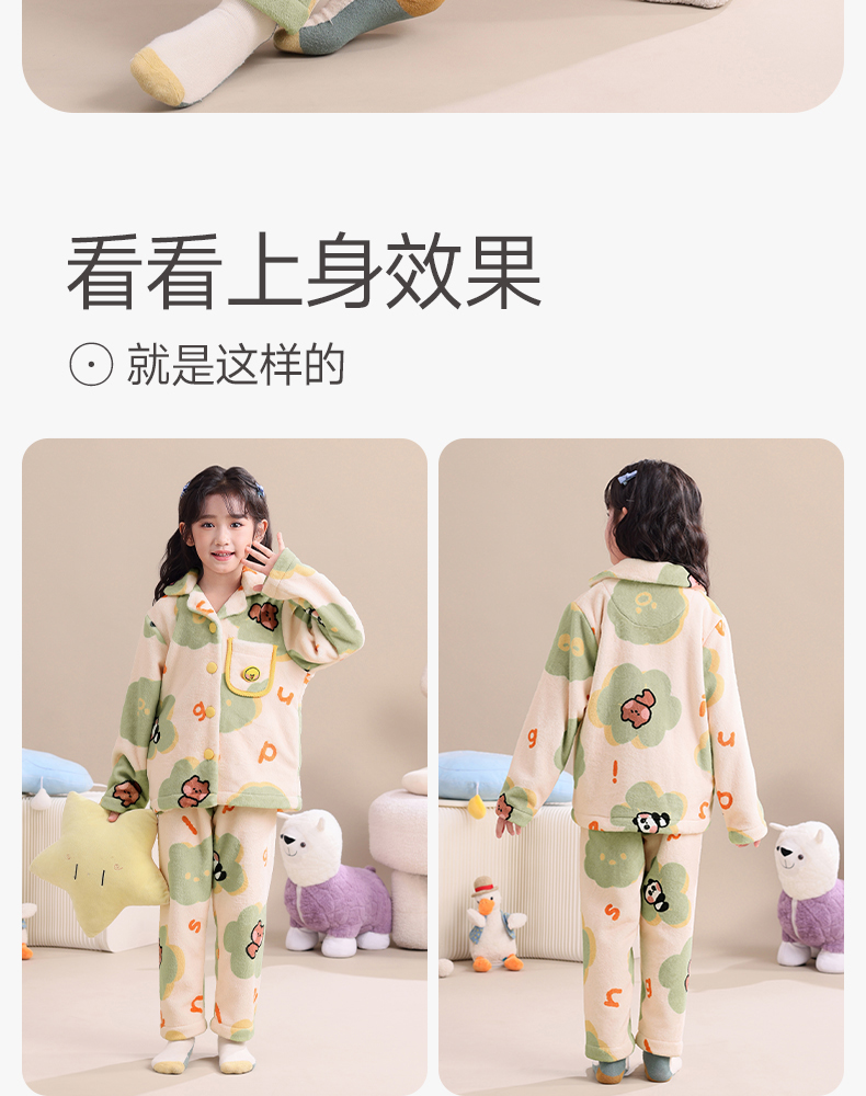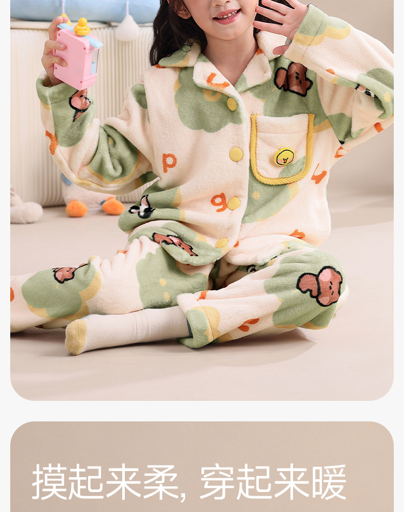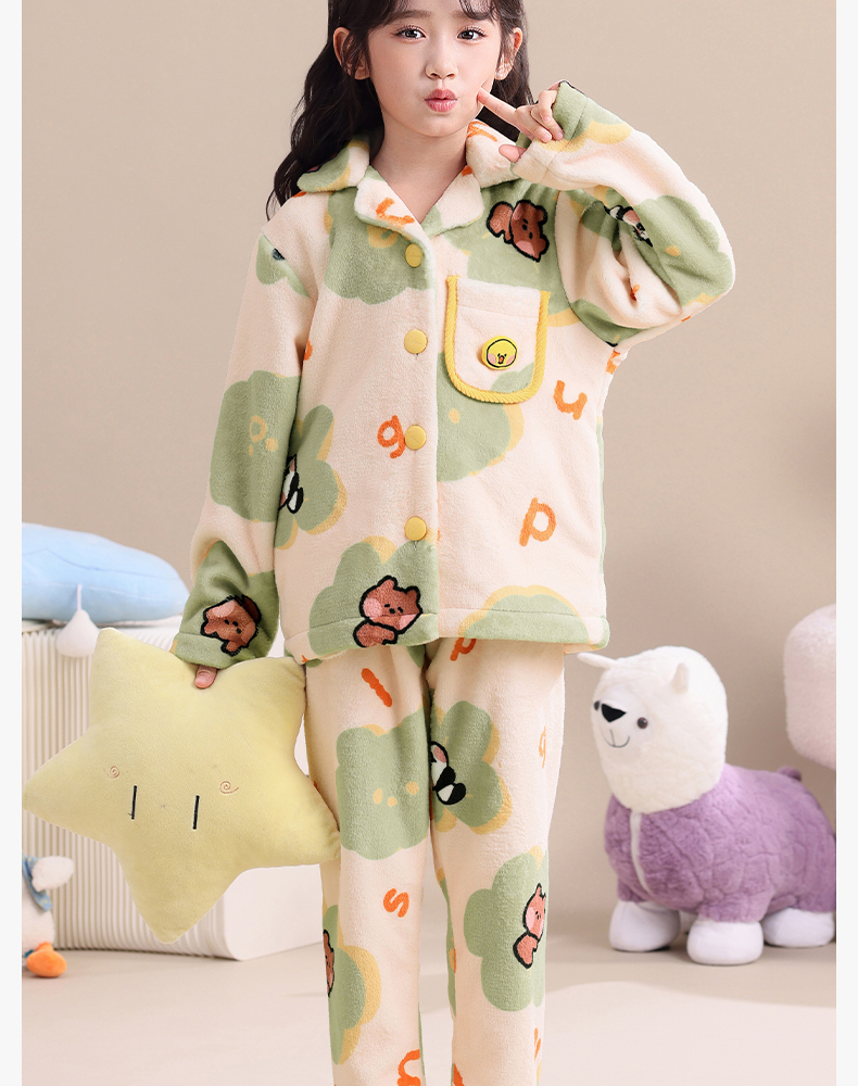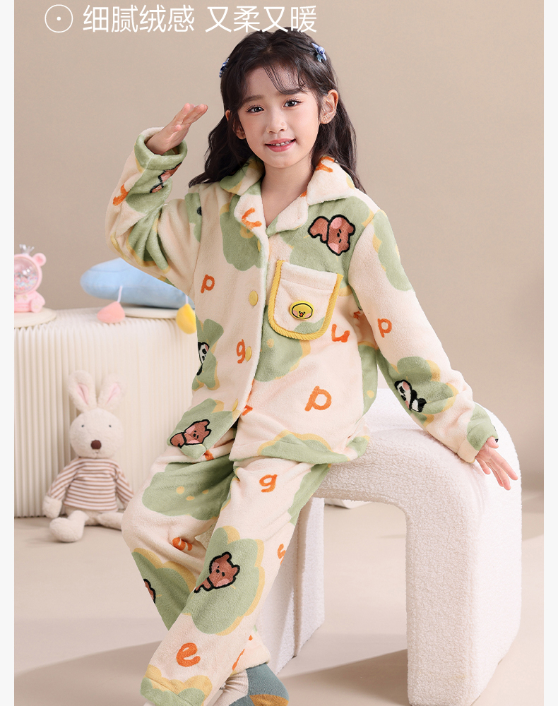 芬腾珊瑚绒女童睡衣秋冬加厚套装布朗熊女孩中大童宝宝儿童家居服