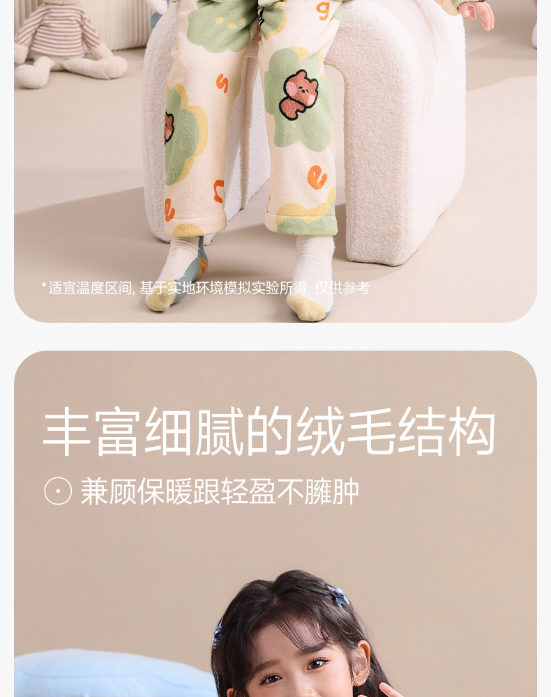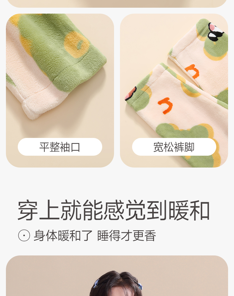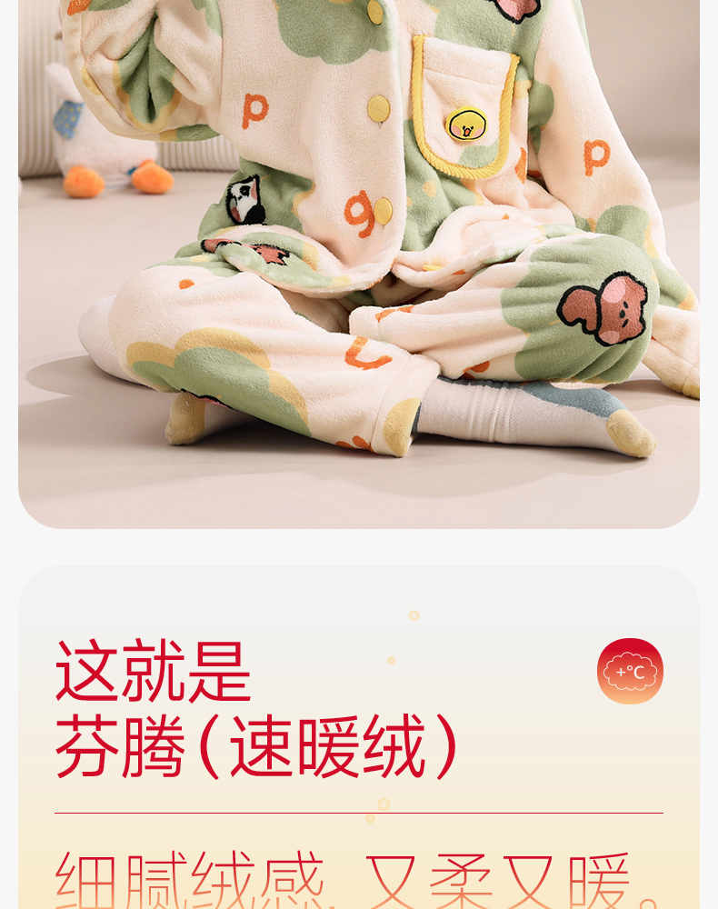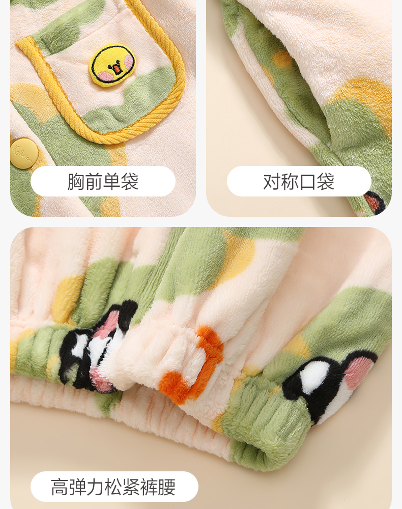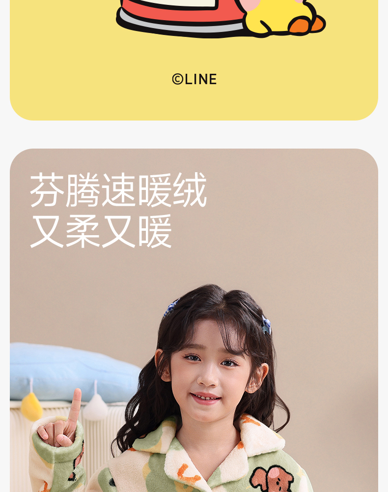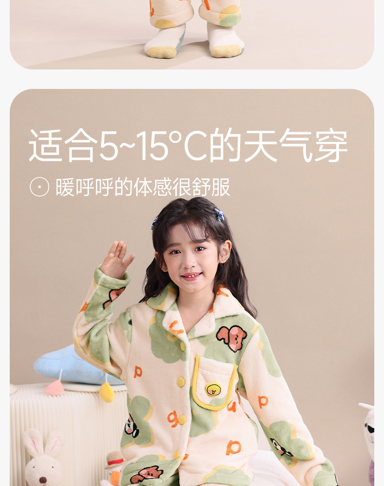 芬腾珊瑚绒女童睡衣秋冬加厚套装布朗熊女孩中大童宝宝儿童家居服