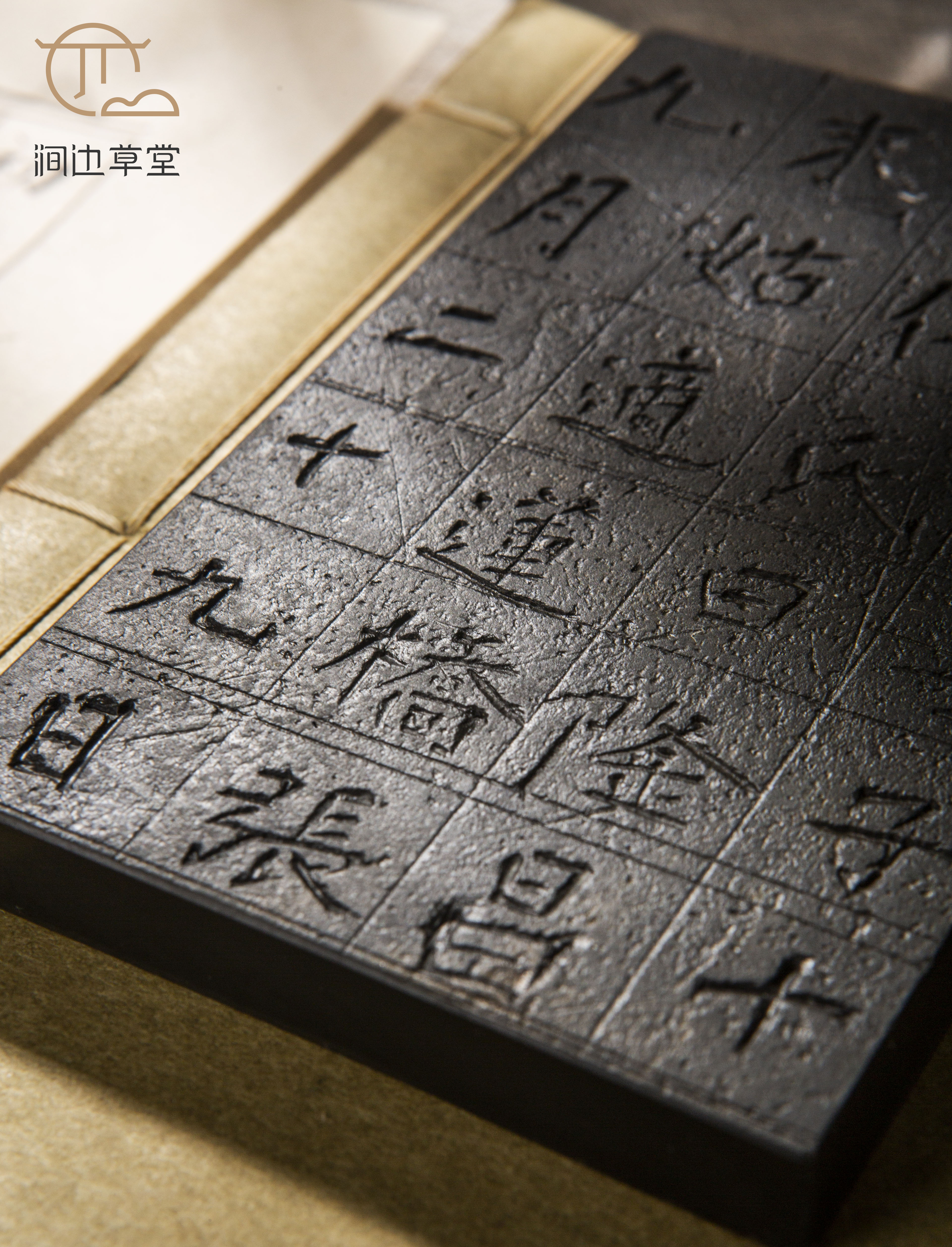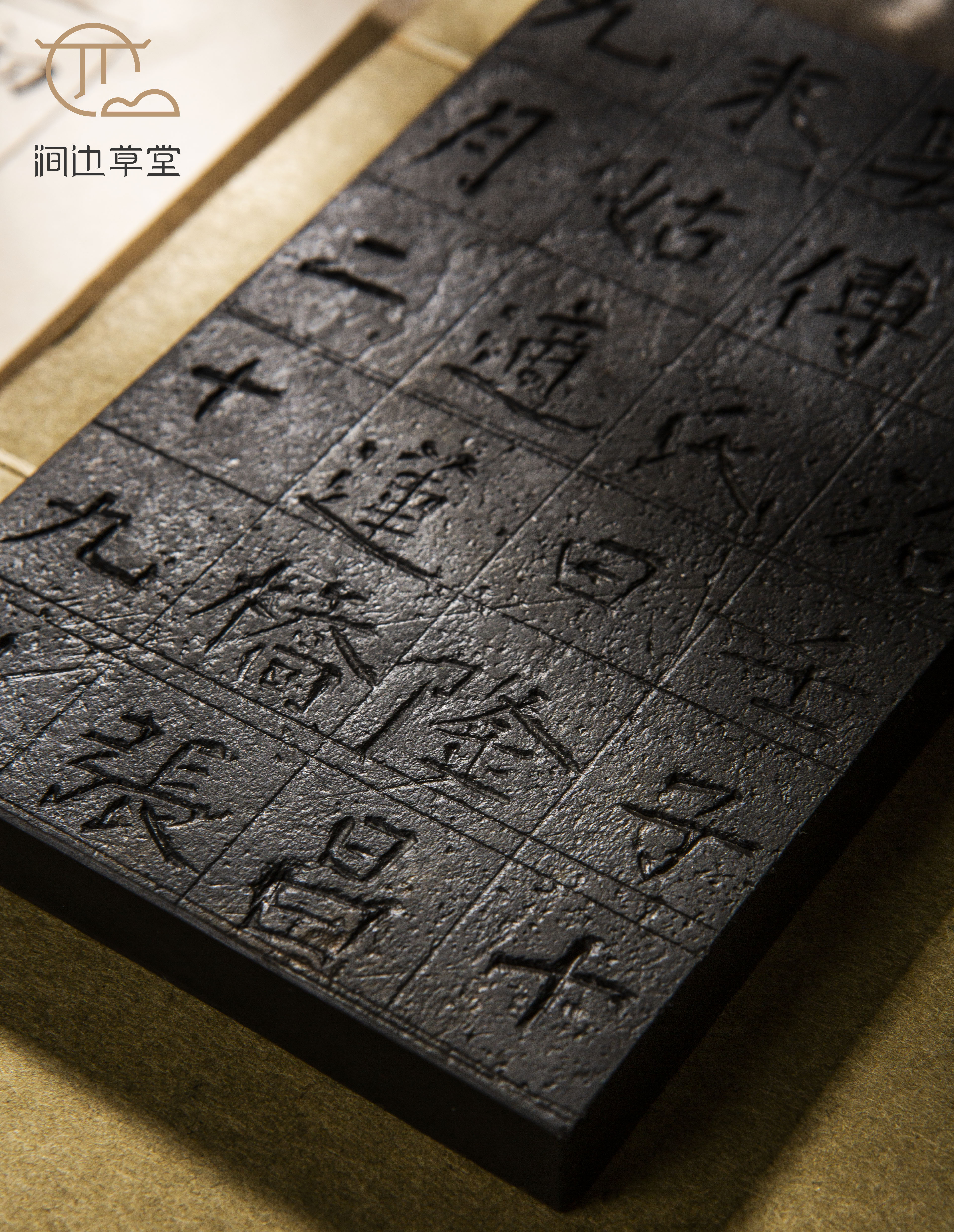 此砚使用明代弘治时期歙石残碑为原材料手工精制成砚,砚上所刻文字均为明代原碑上的文字(非后刻)。此砚石质温润,制砚工艺精细,是一方难得的佳品。