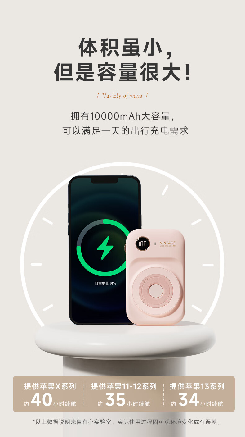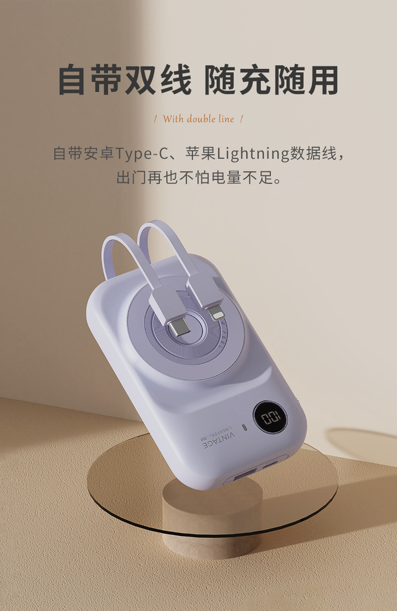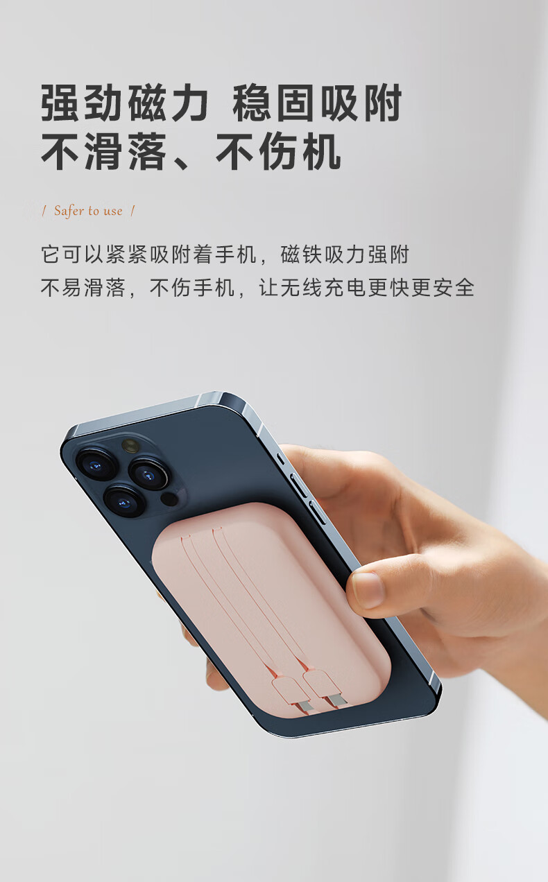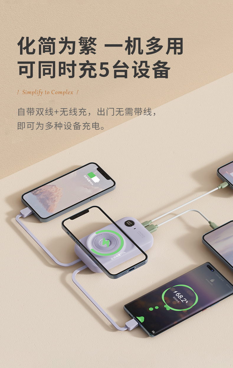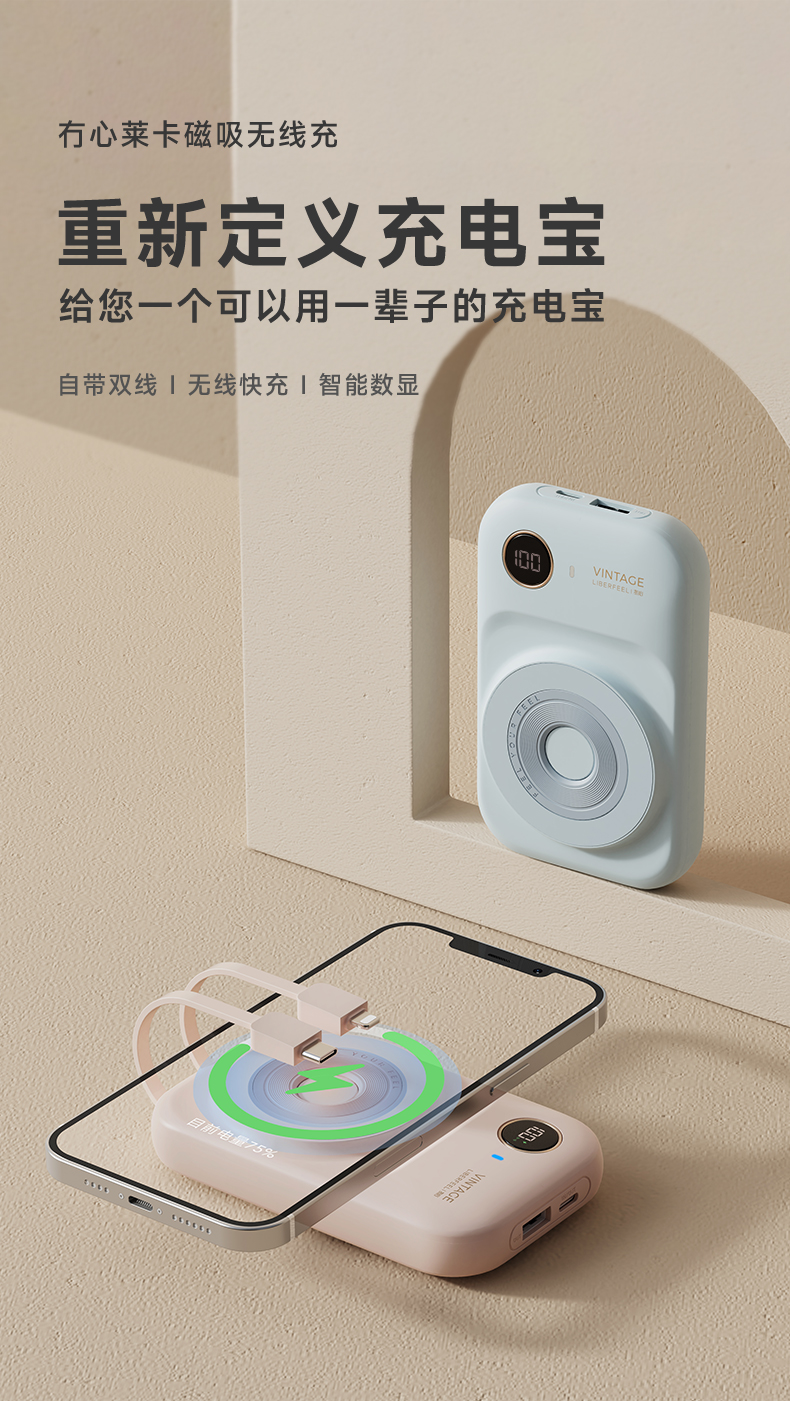 冇心 莱卡磁吸无线充电宝自带线10000毫安22.5W快充移动电源Magsafe适用于苹果华为安卓T-49