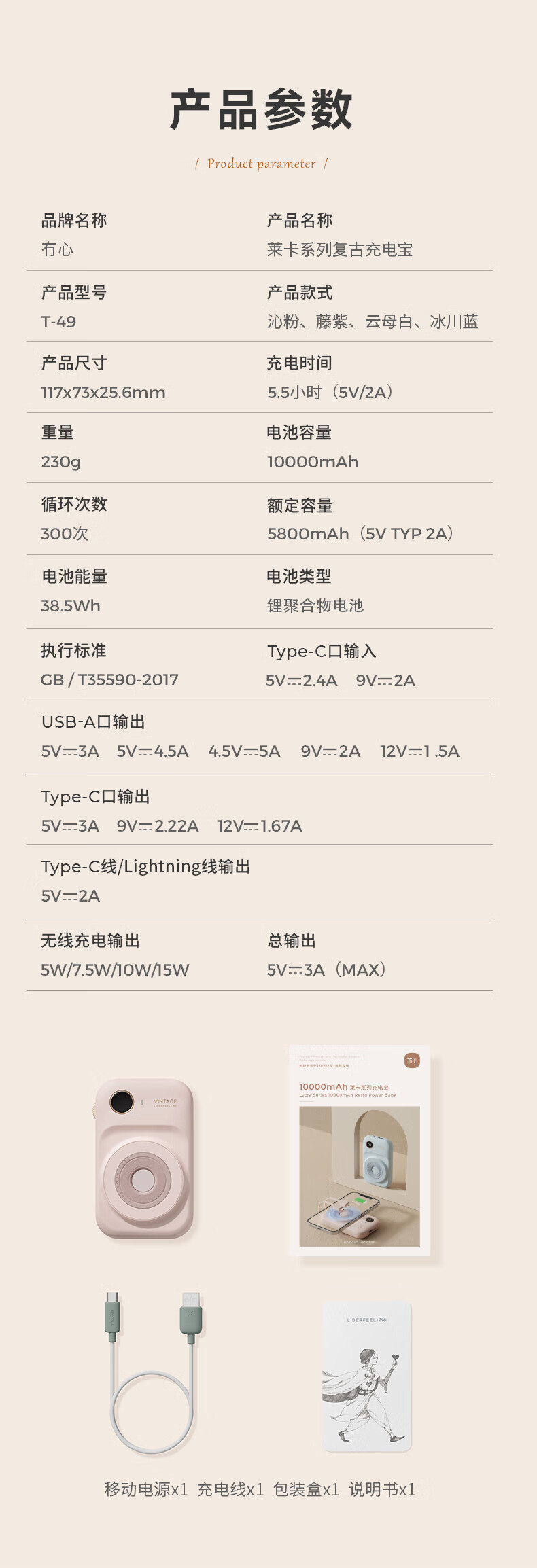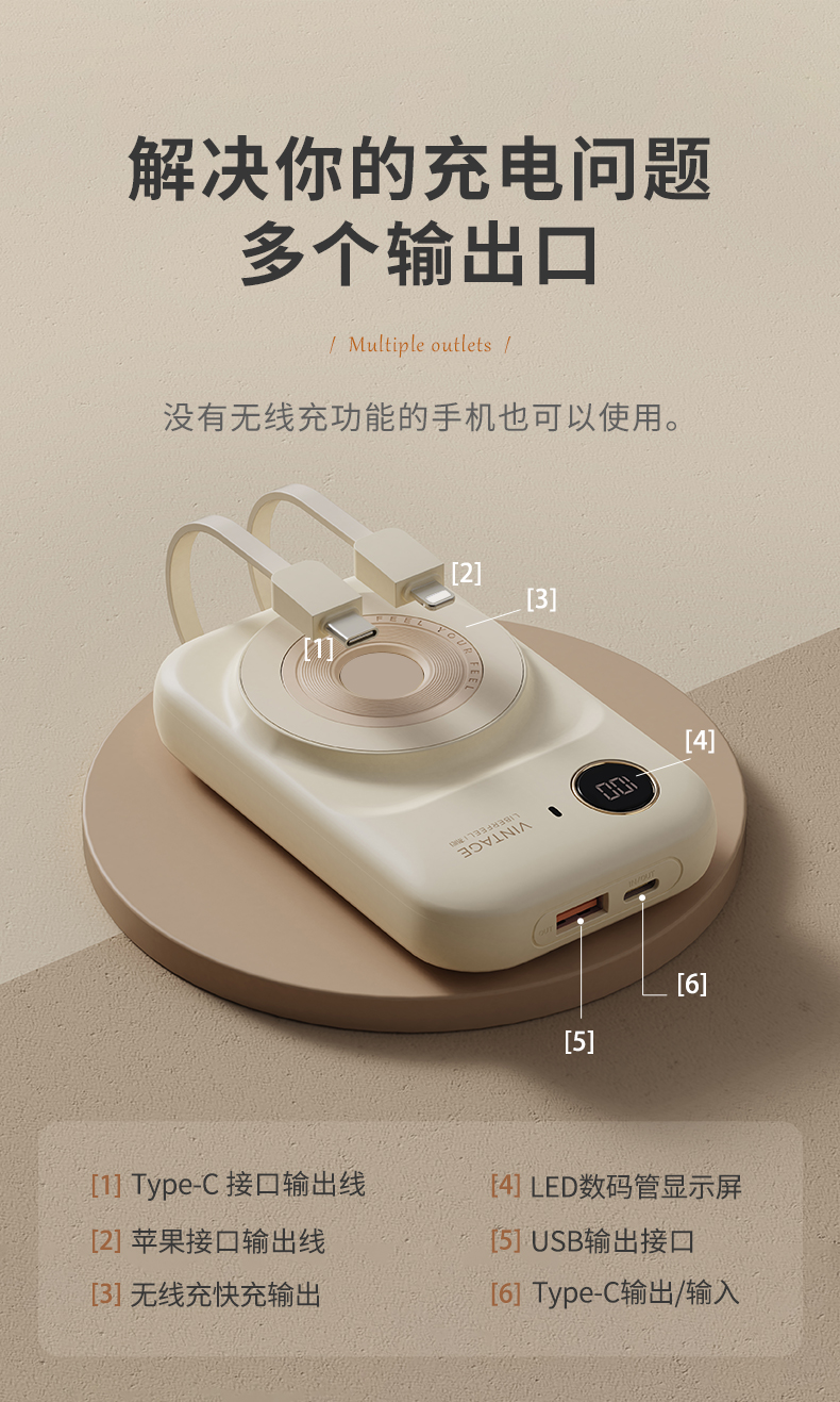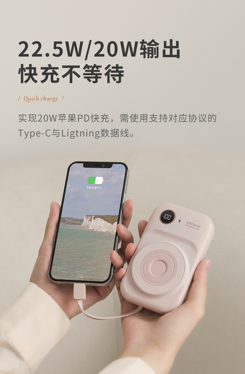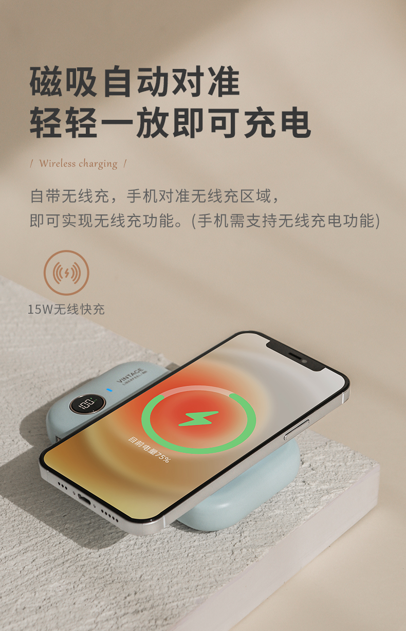 冇心 莱卡磁吸无线充电宝自带线10000毫安22.5W快充移动电源Magsafe适用于苹果华为安卓T-49