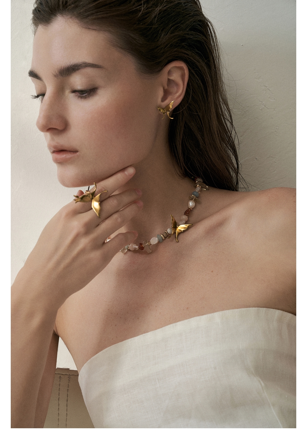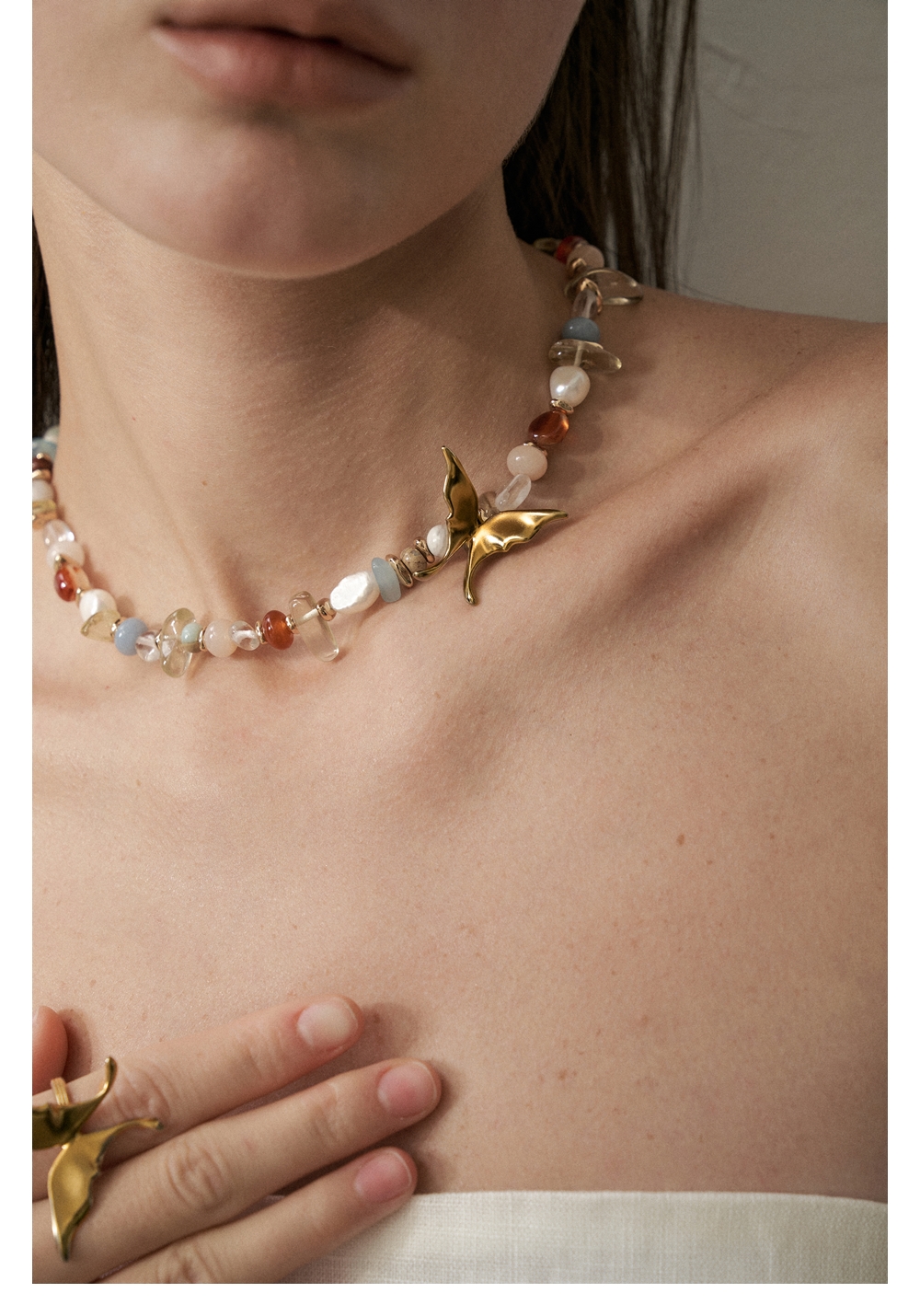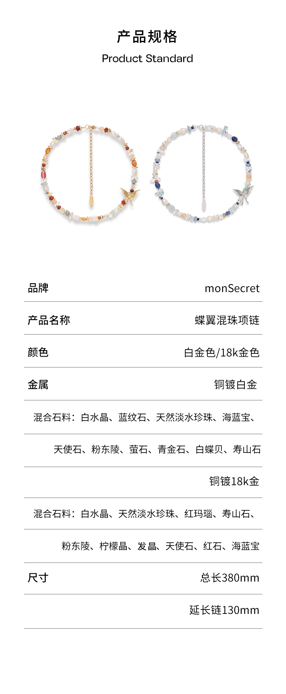 monSecret|HB240102 蝶翼混珠项链【ELYSIA】 [ 银 _P / 金_G ]