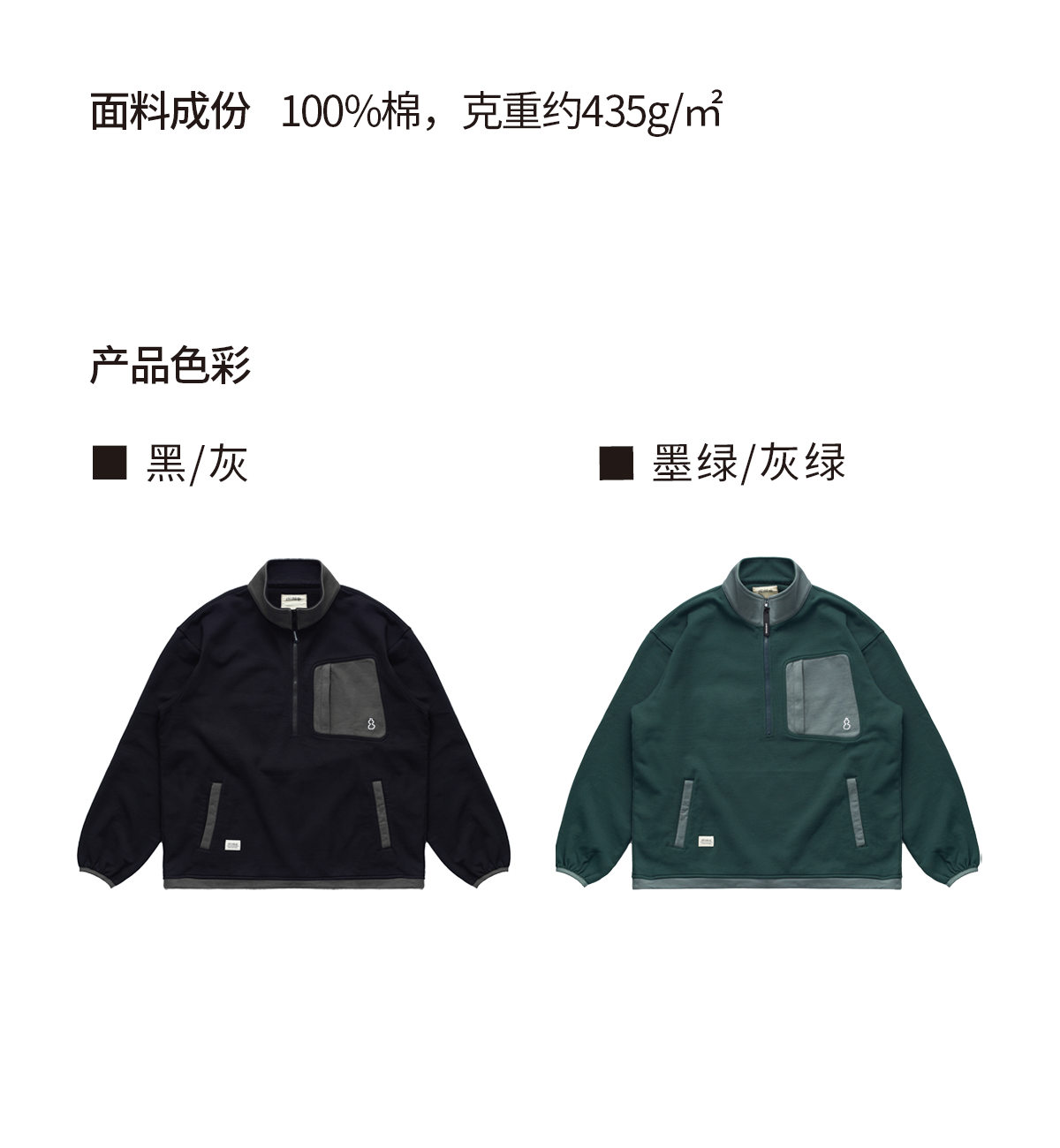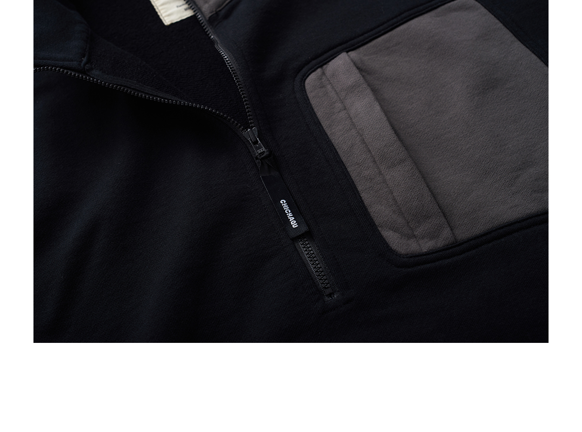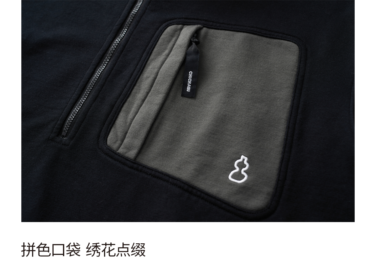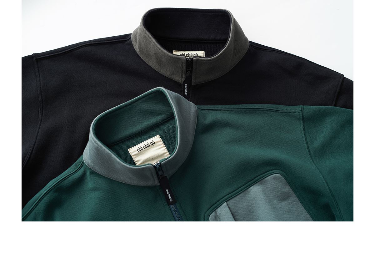 吃茶去chichaqu2024宽松拼色立领卫衣全棉复古休闲运动百搭