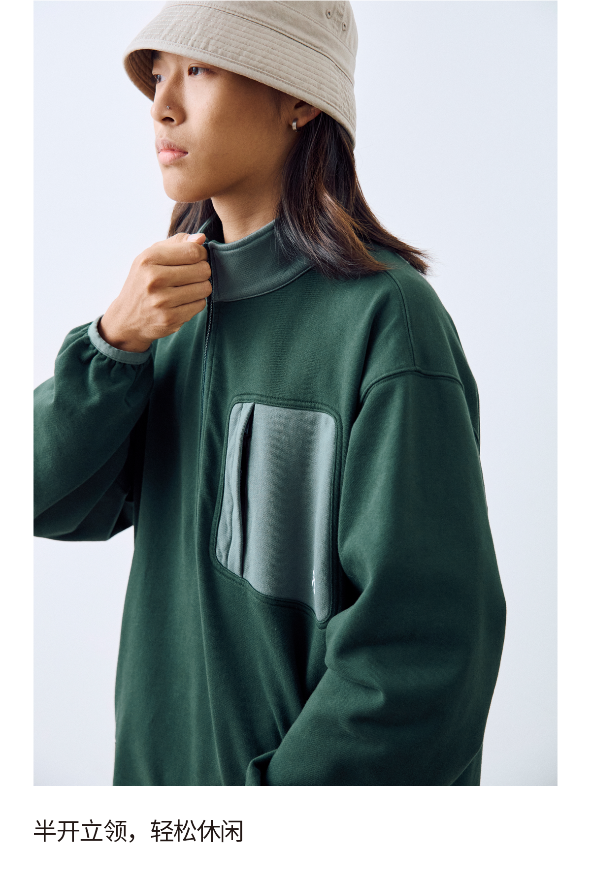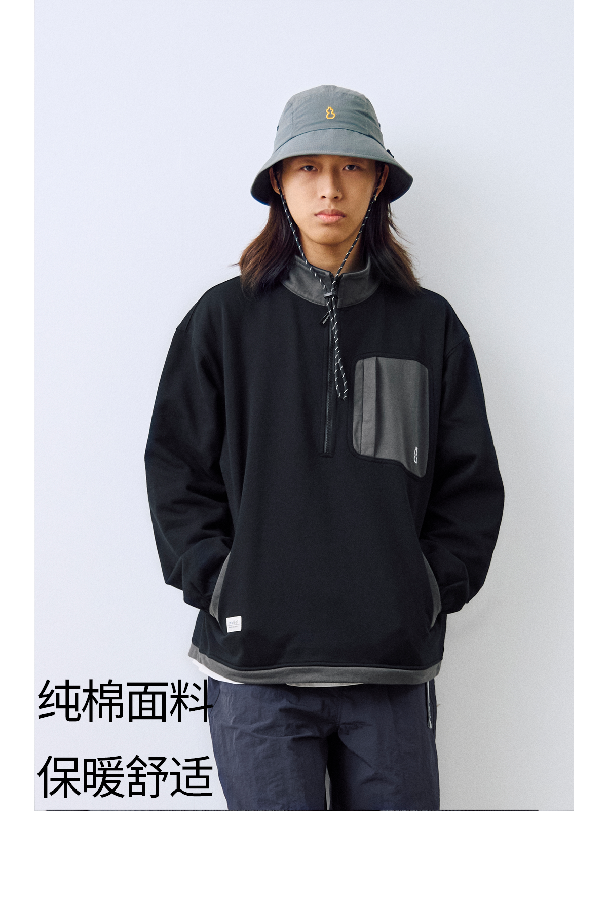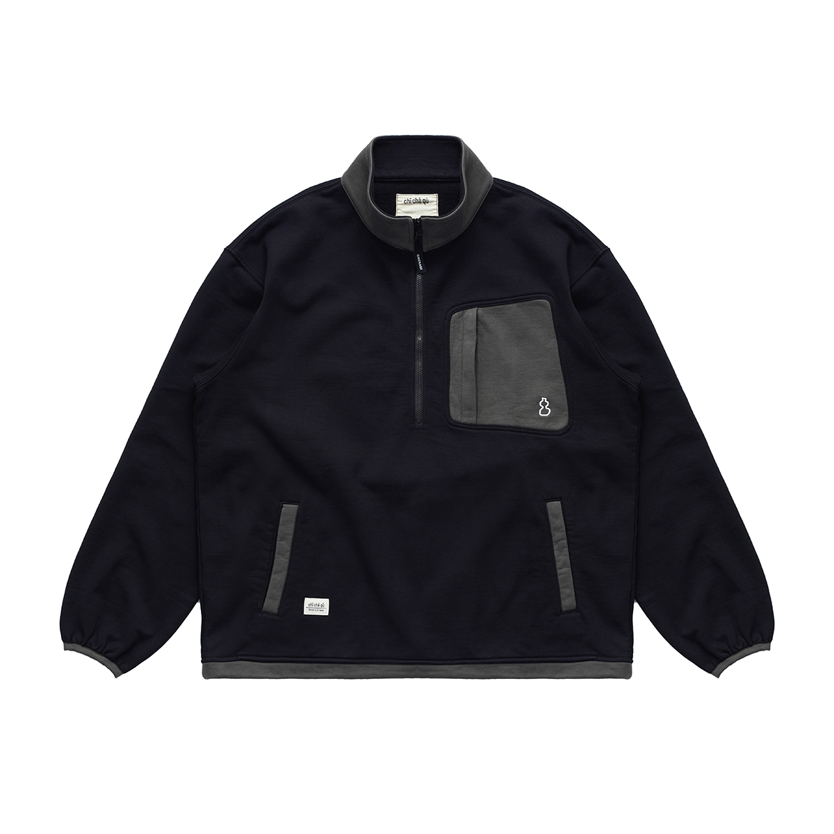吃茶去chichaqu2024宽松拼色立领卫衣全棉复古休闲运动百搭
