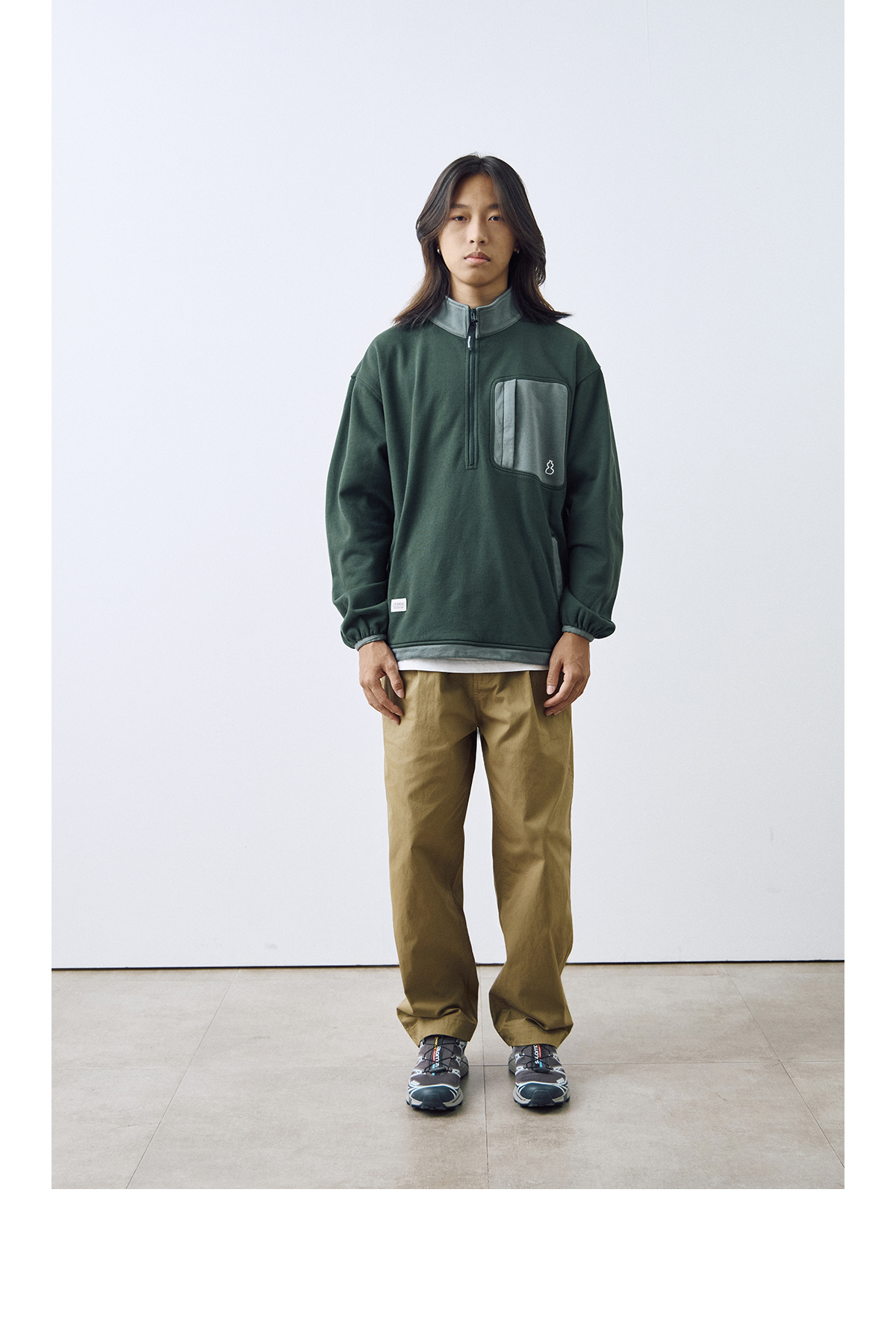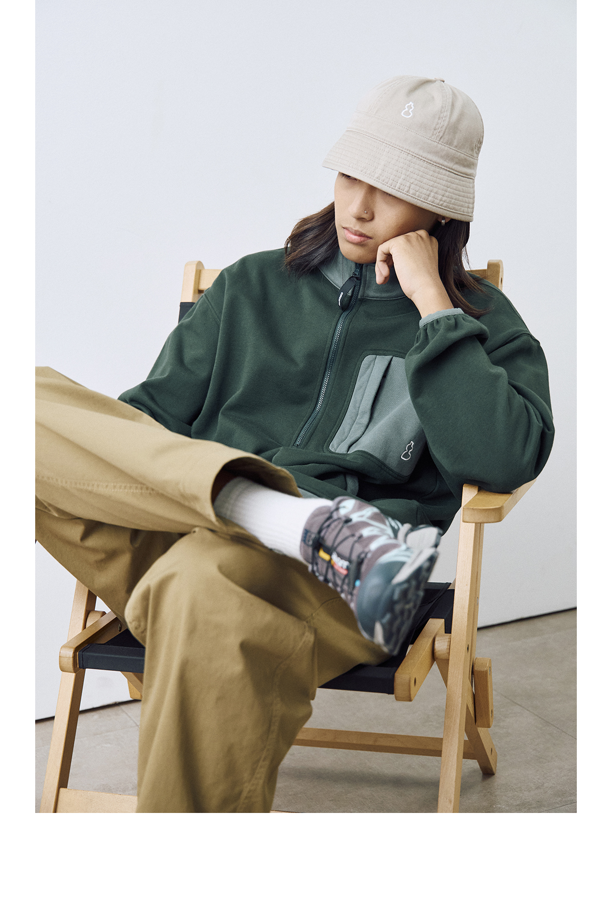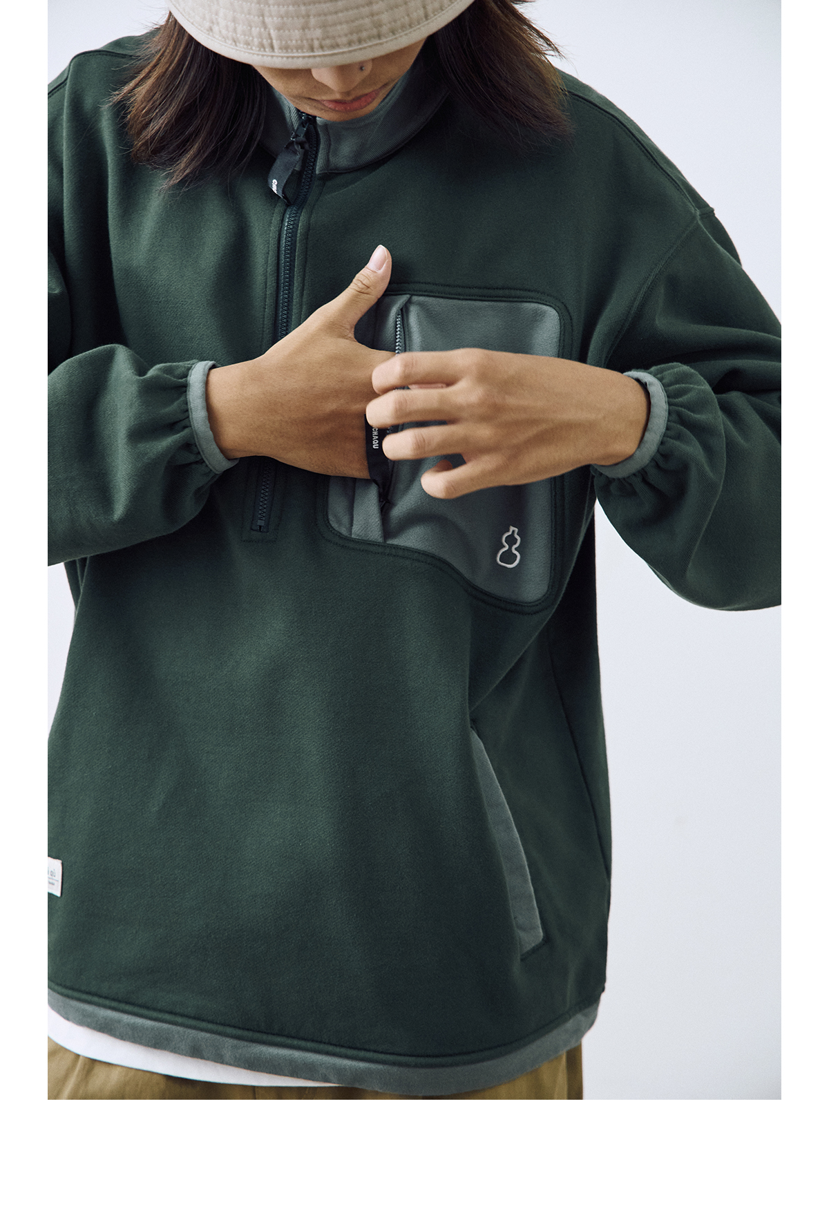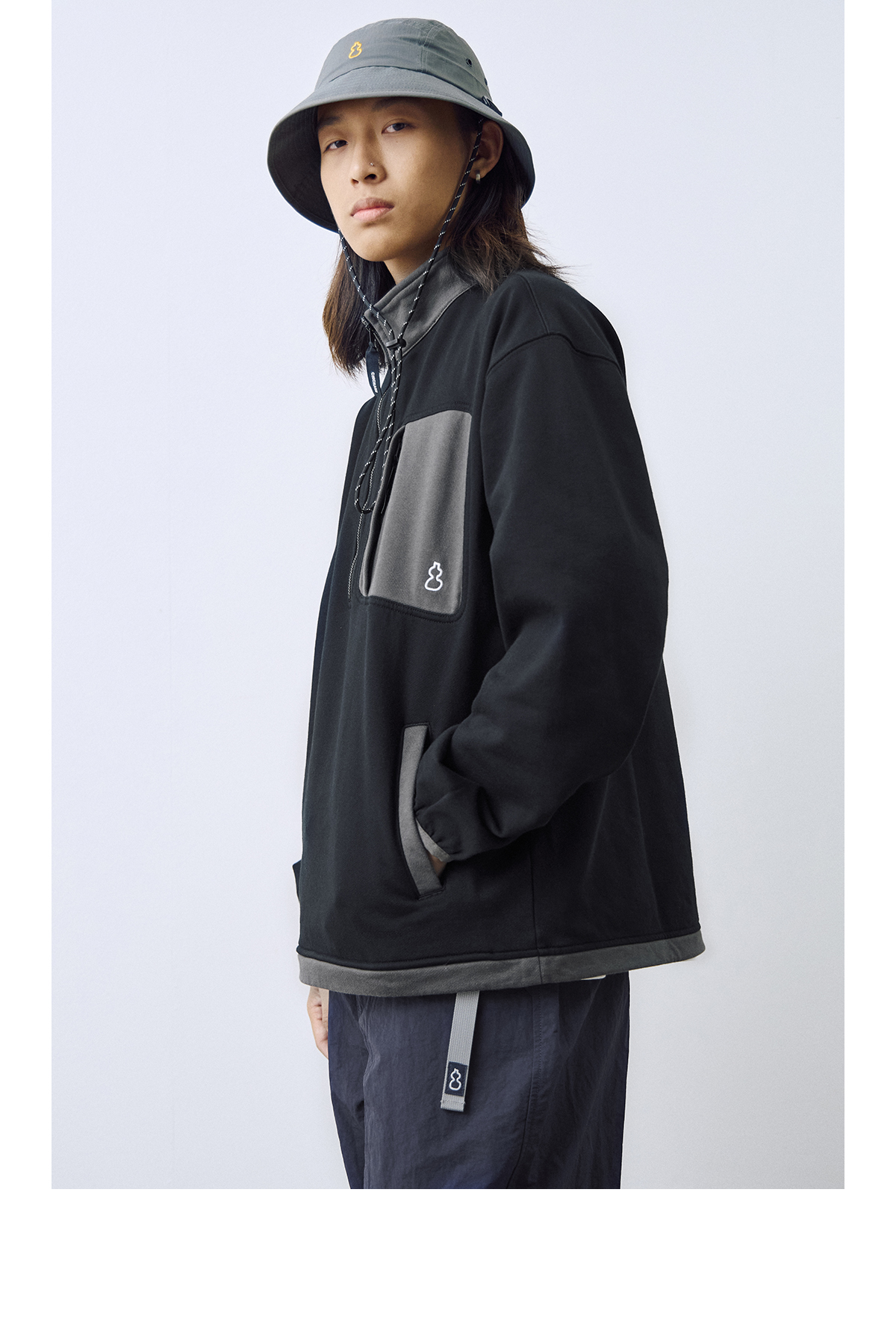 吃茶去chichaqu2024宽松拼色立领卫衣全棉复古休闲运动百搭