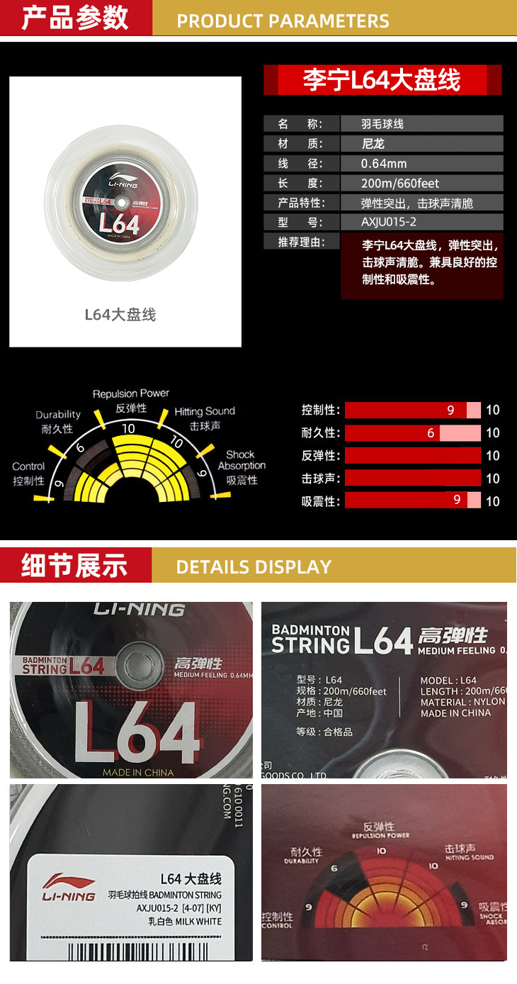 李宁大盘线羽毛球线L64高弹羽毛球线 多根装