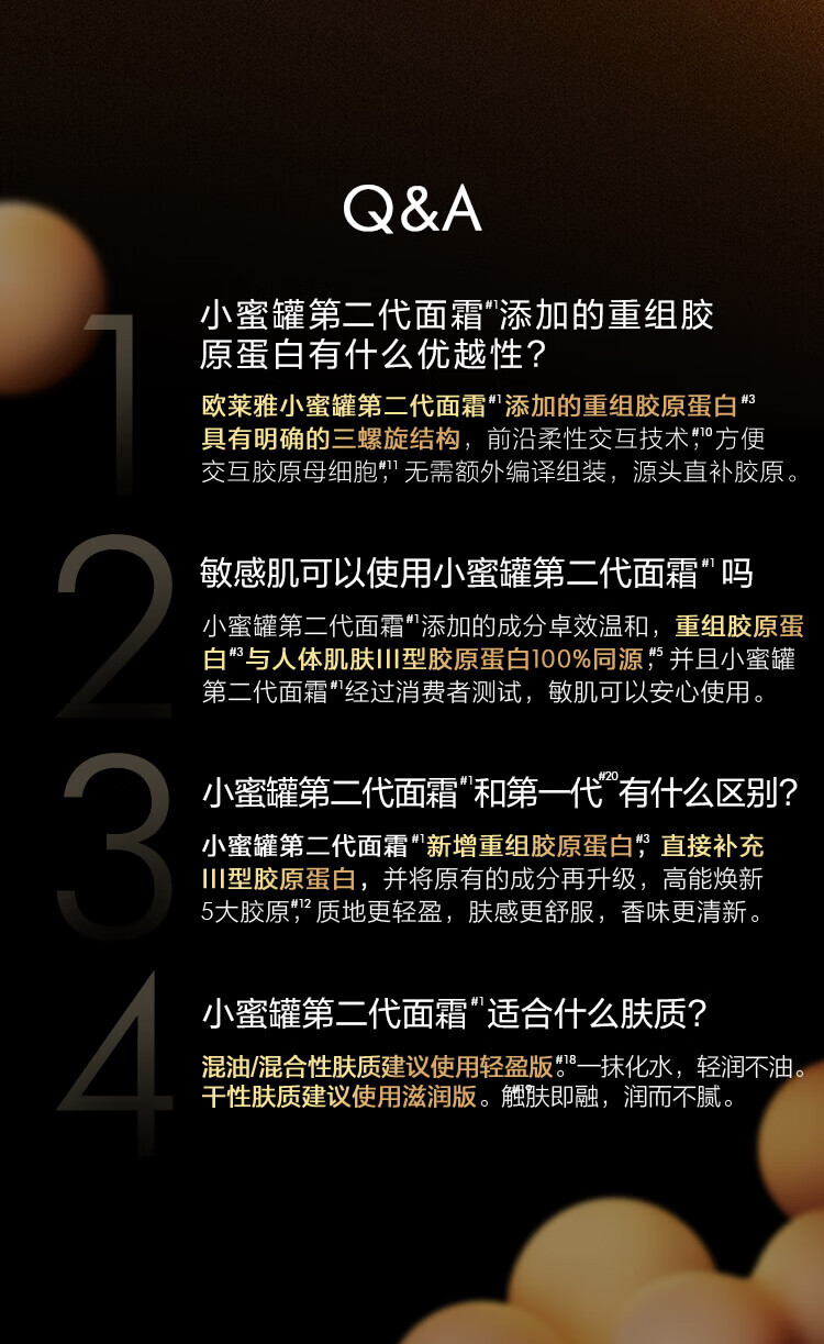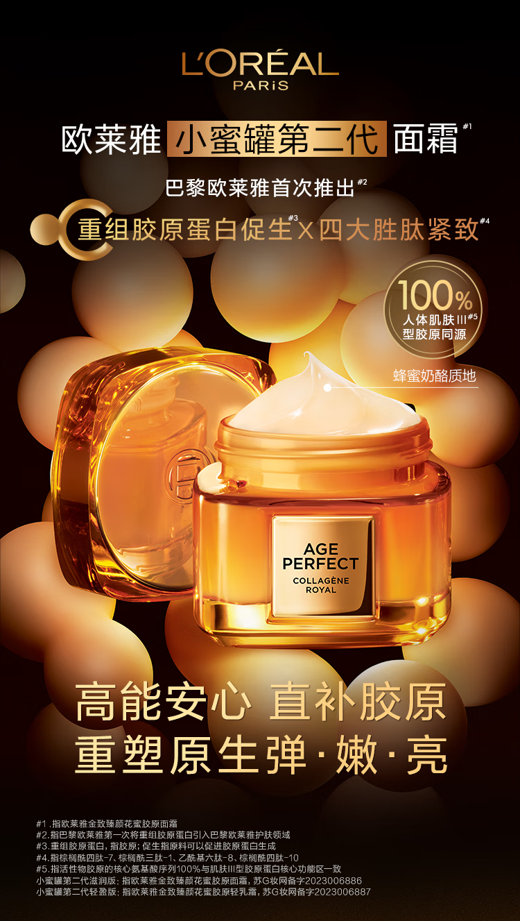 【小蜜罐面霜滋润版/轻盈版】欧莱雅金致臻颜花蜜胶原面霜 30ML滋润版3代4代随机发