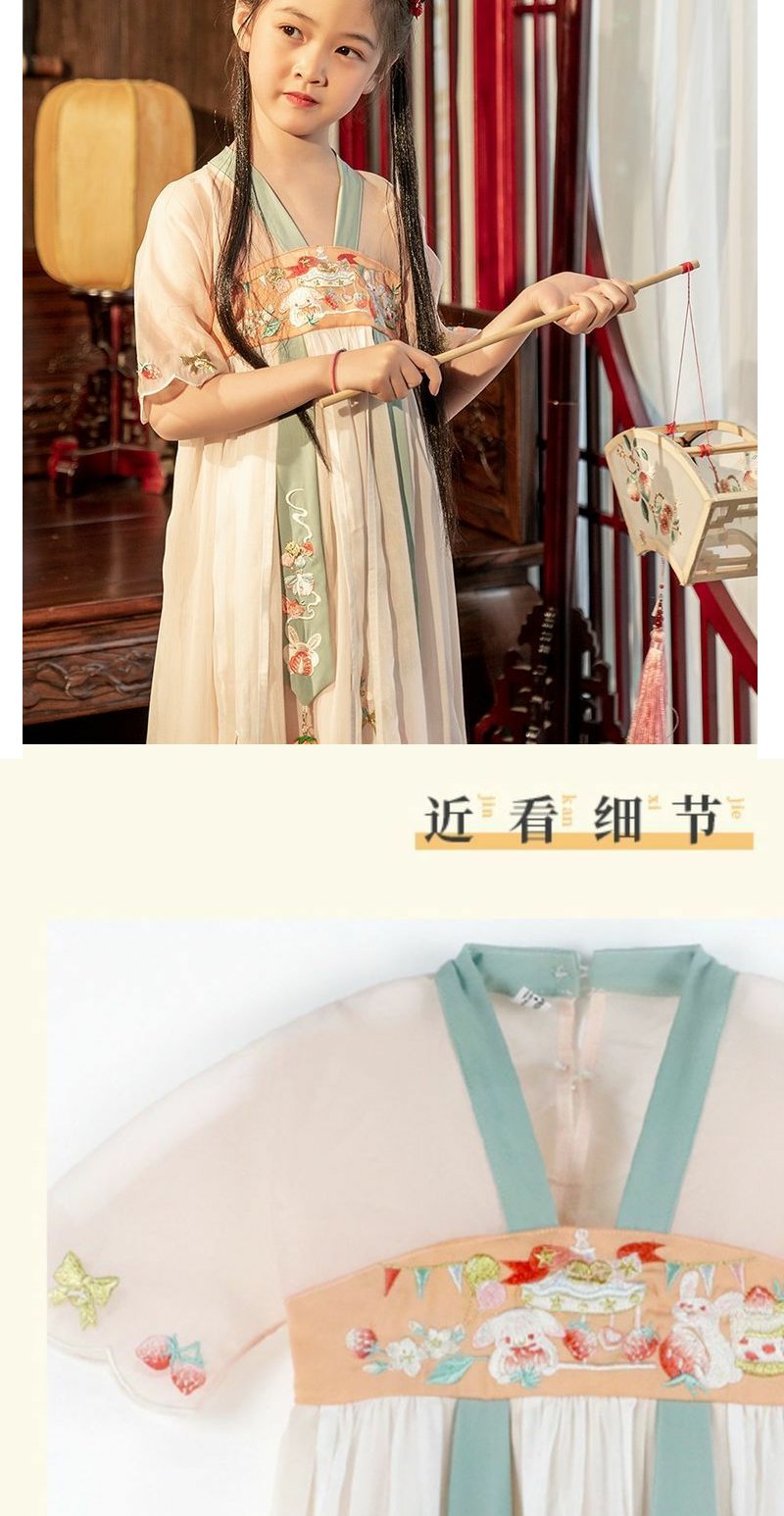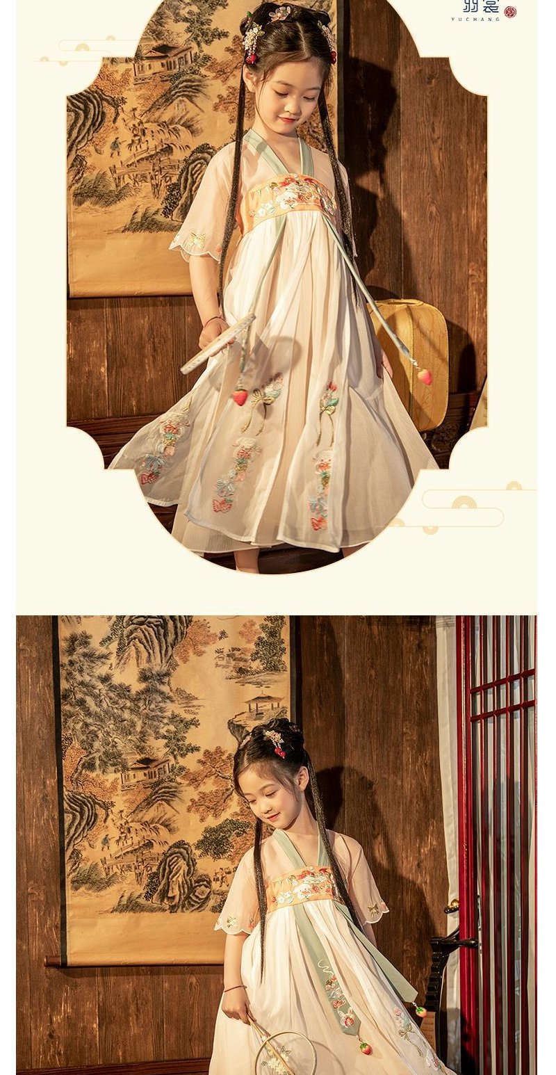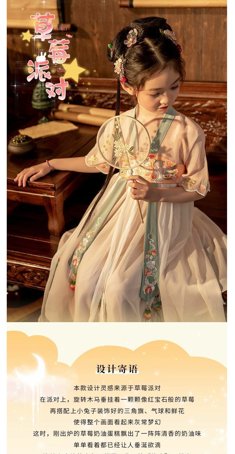 古风改良草莓派对女童汉服女孩古装中国风超仙短袖雪纺连衣襦裙夏