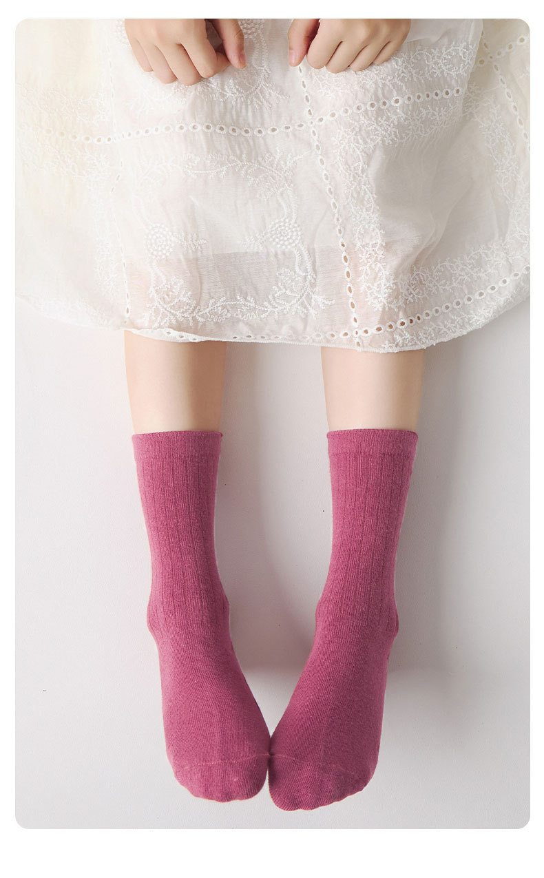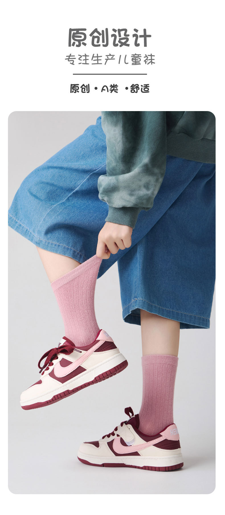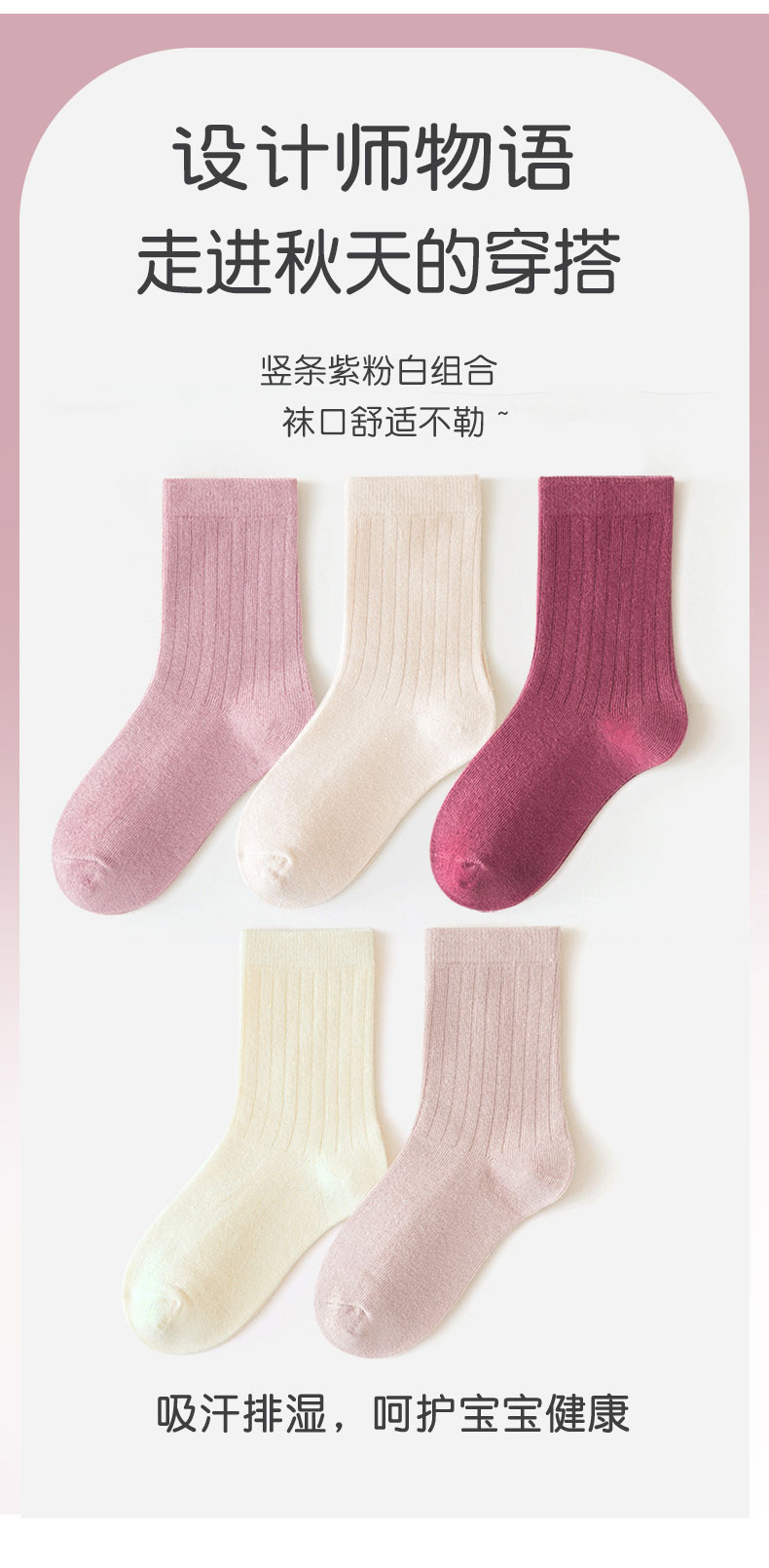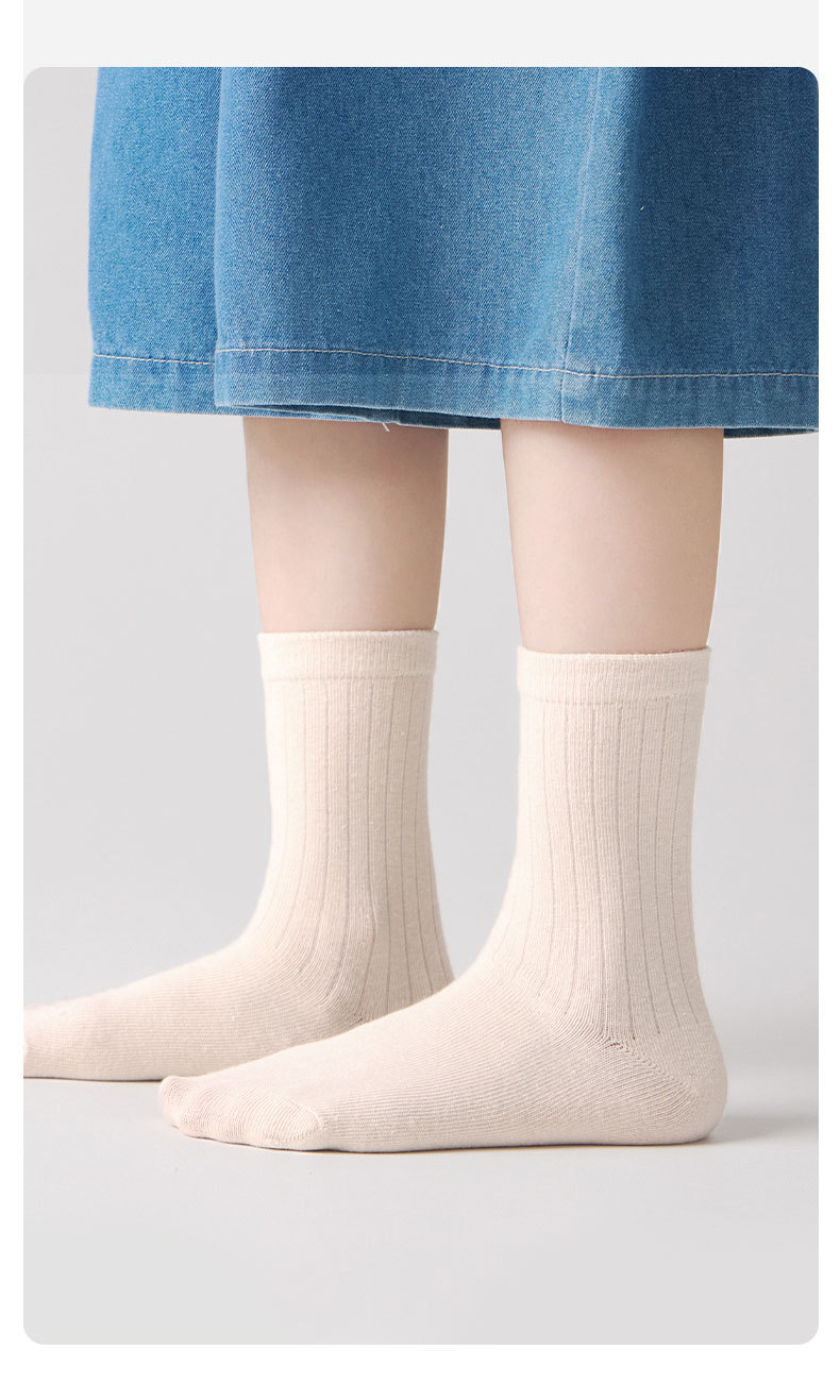 5双29.9包邮!纯色系秋季透气棉袜中筒袜ins女童韩系纯色松口男童棉袜21-42码