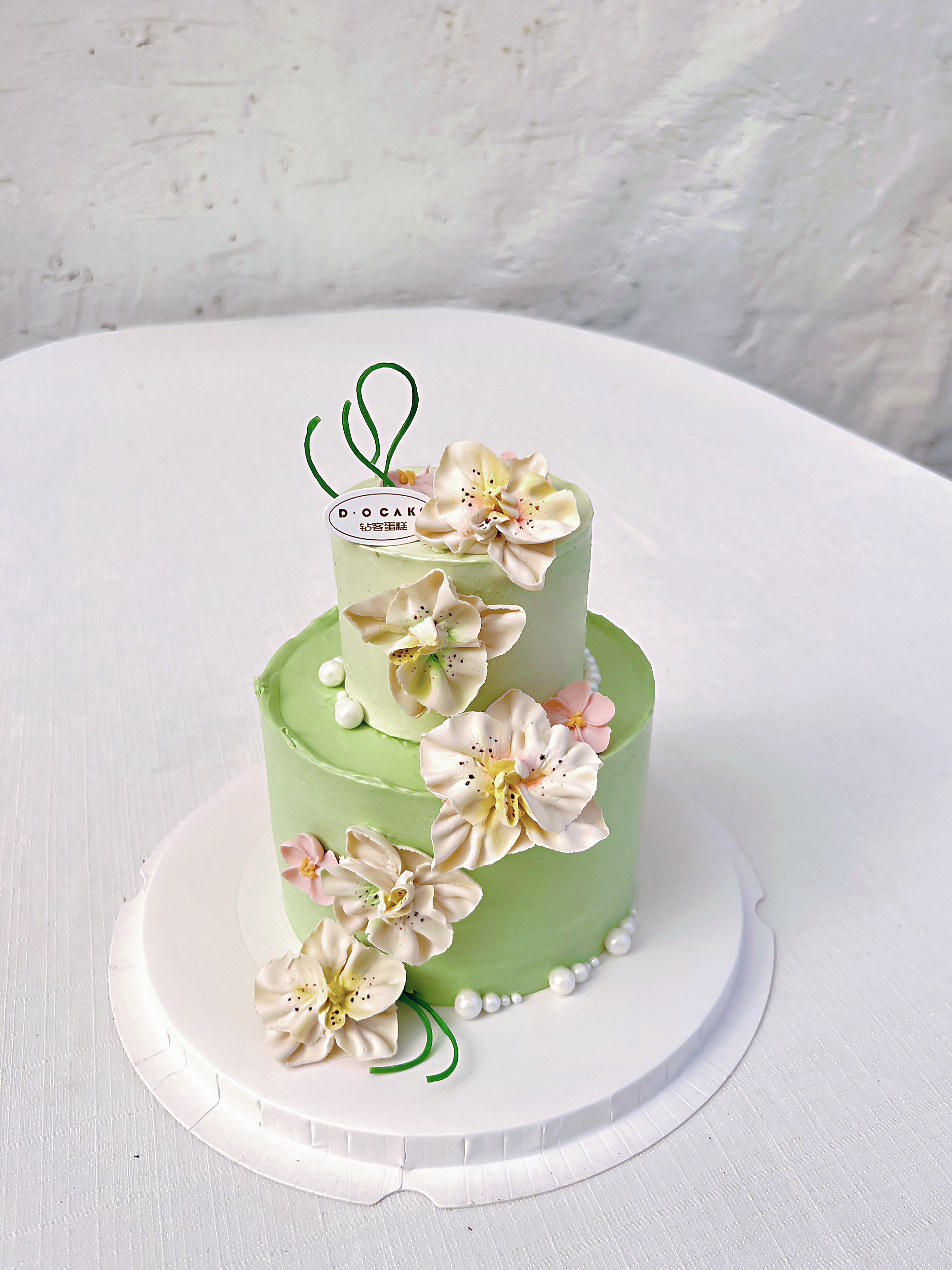 韩式黄油抹面+低糖韩式裱花韩式黄油抹面+乳酪红丝绒夹心+手工韩式裱花