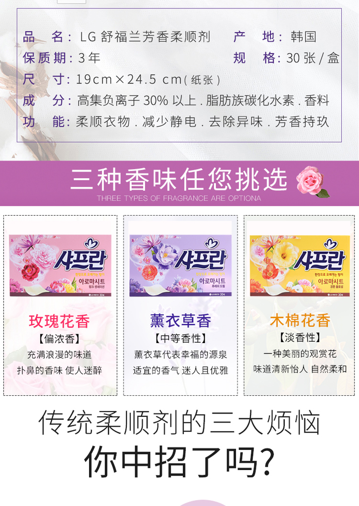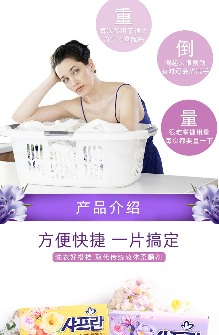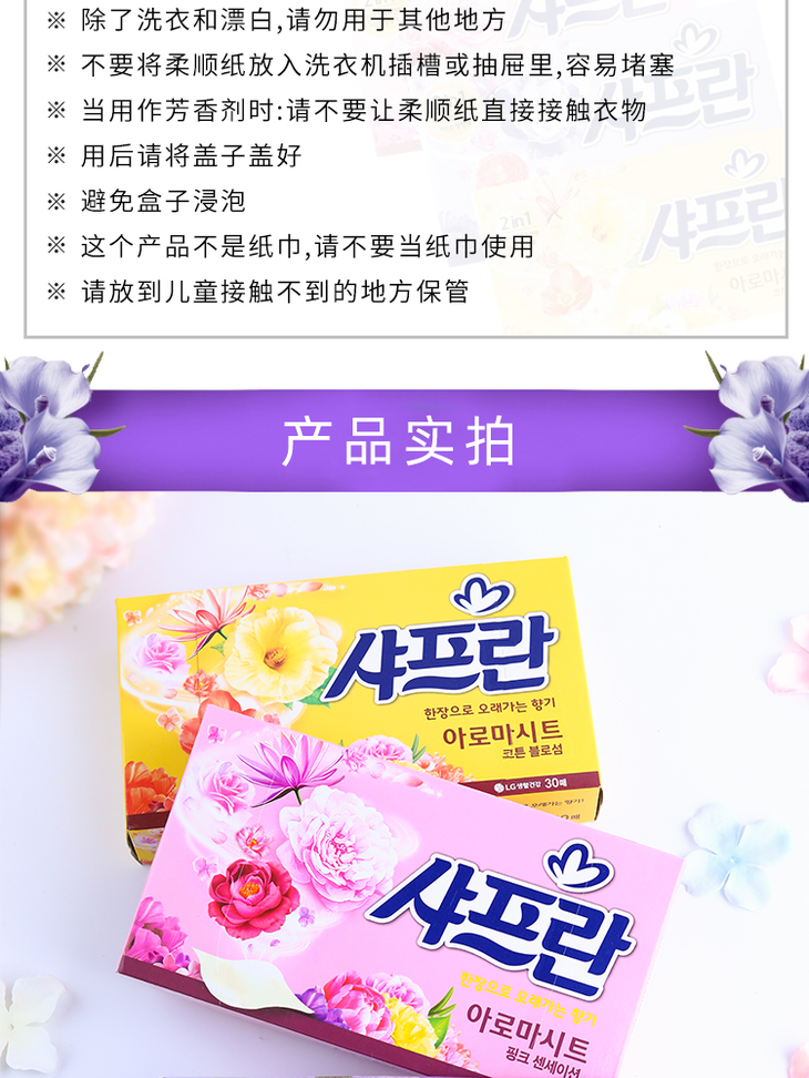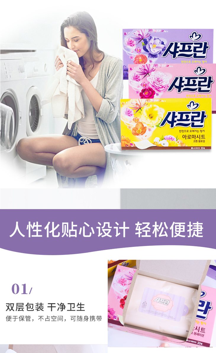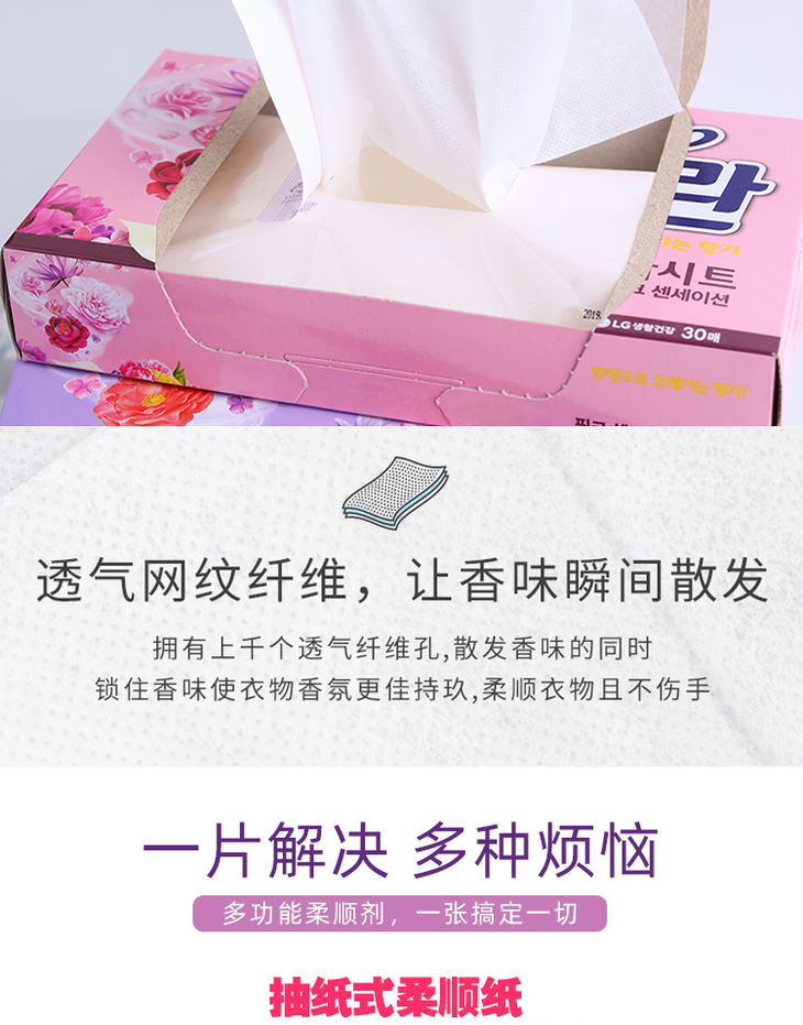 【韩国】进口LG舒福蓝衣物柔顺剂防静电抽取式柔顺纸洗衣纸带中文标 新旧包装随机发