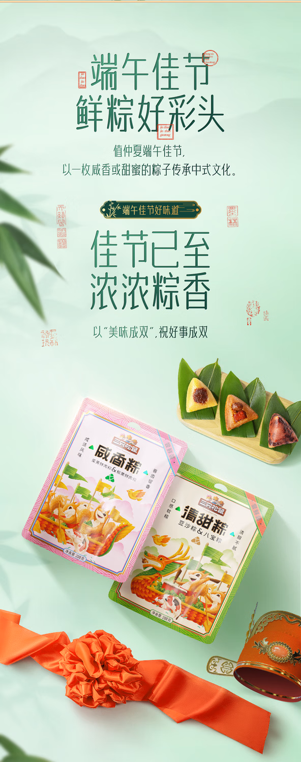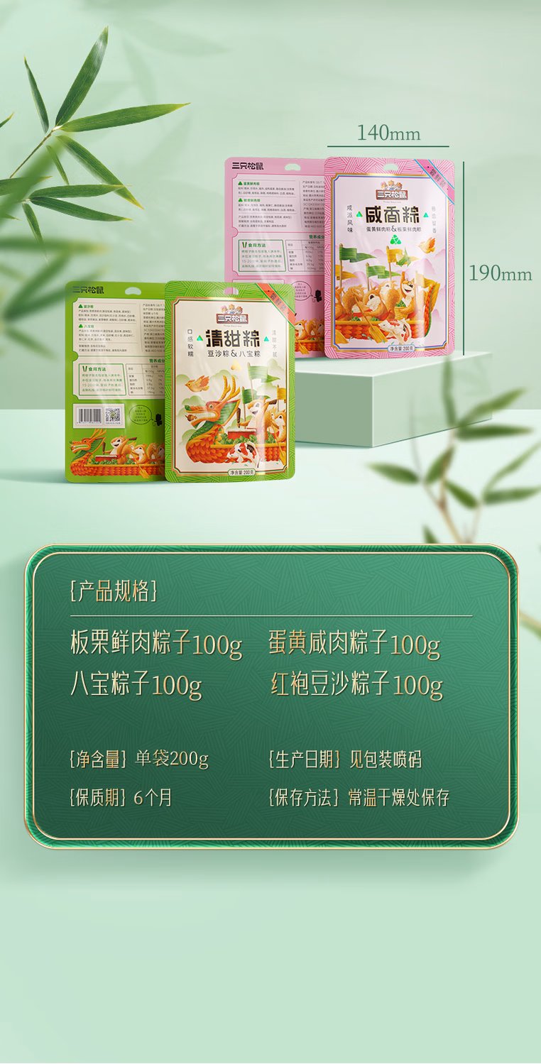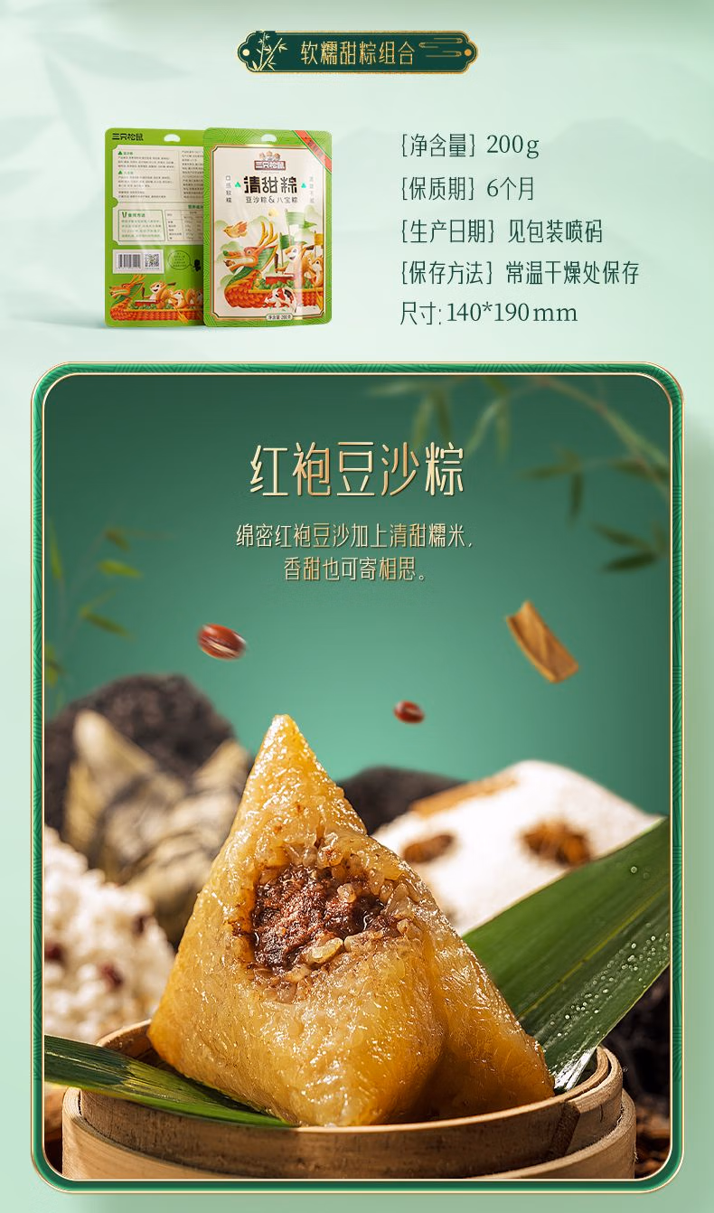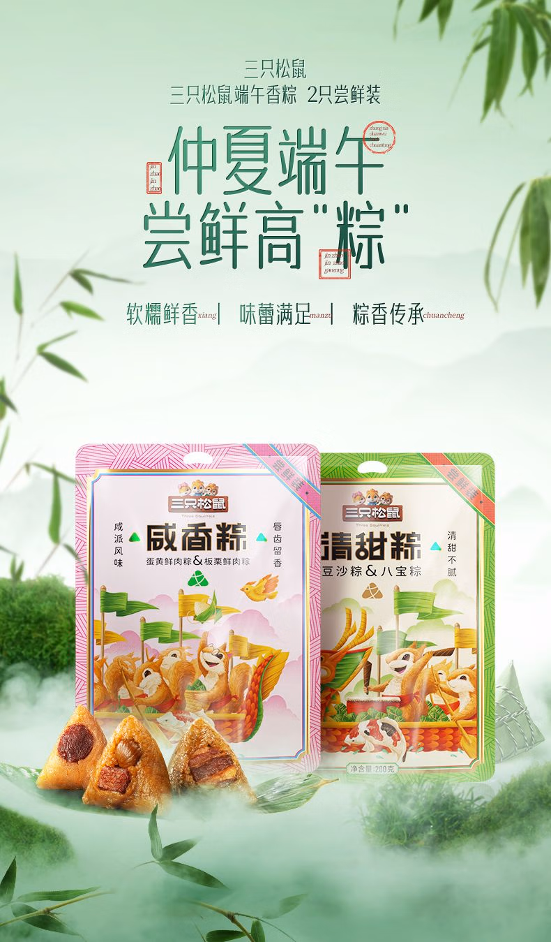 三只松鼠清甜粽(豆沙粽+八宝粽)200g