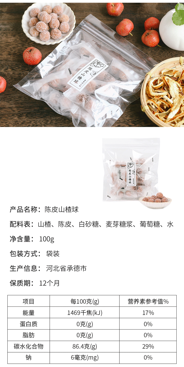 陈皮山楂球 果粒小零食 100g*5袋