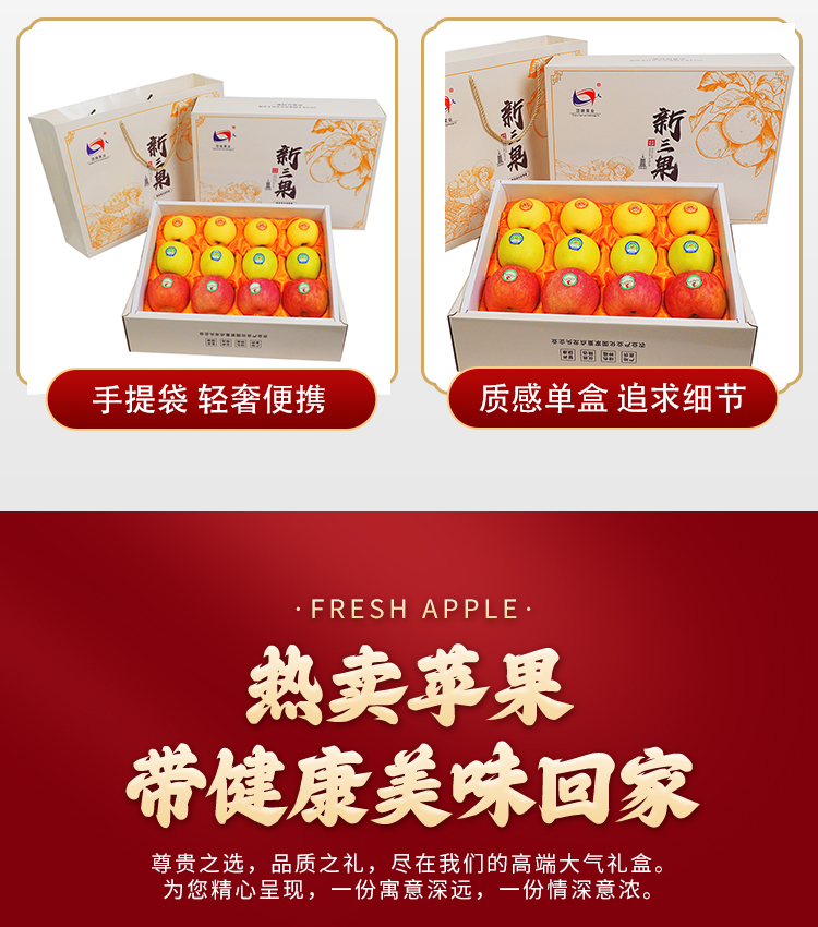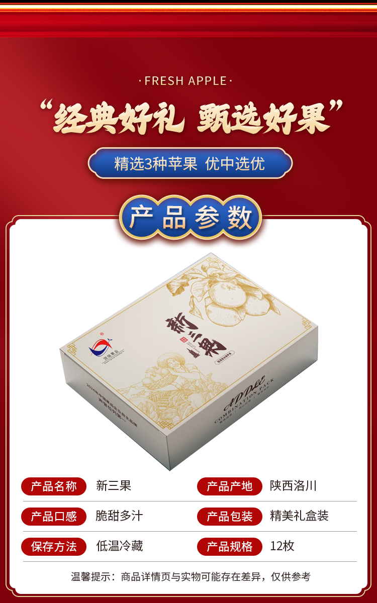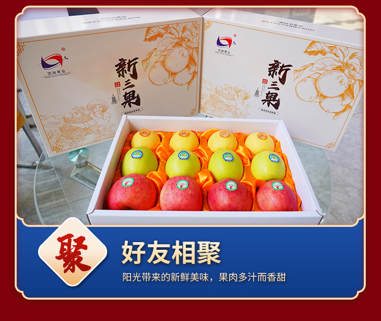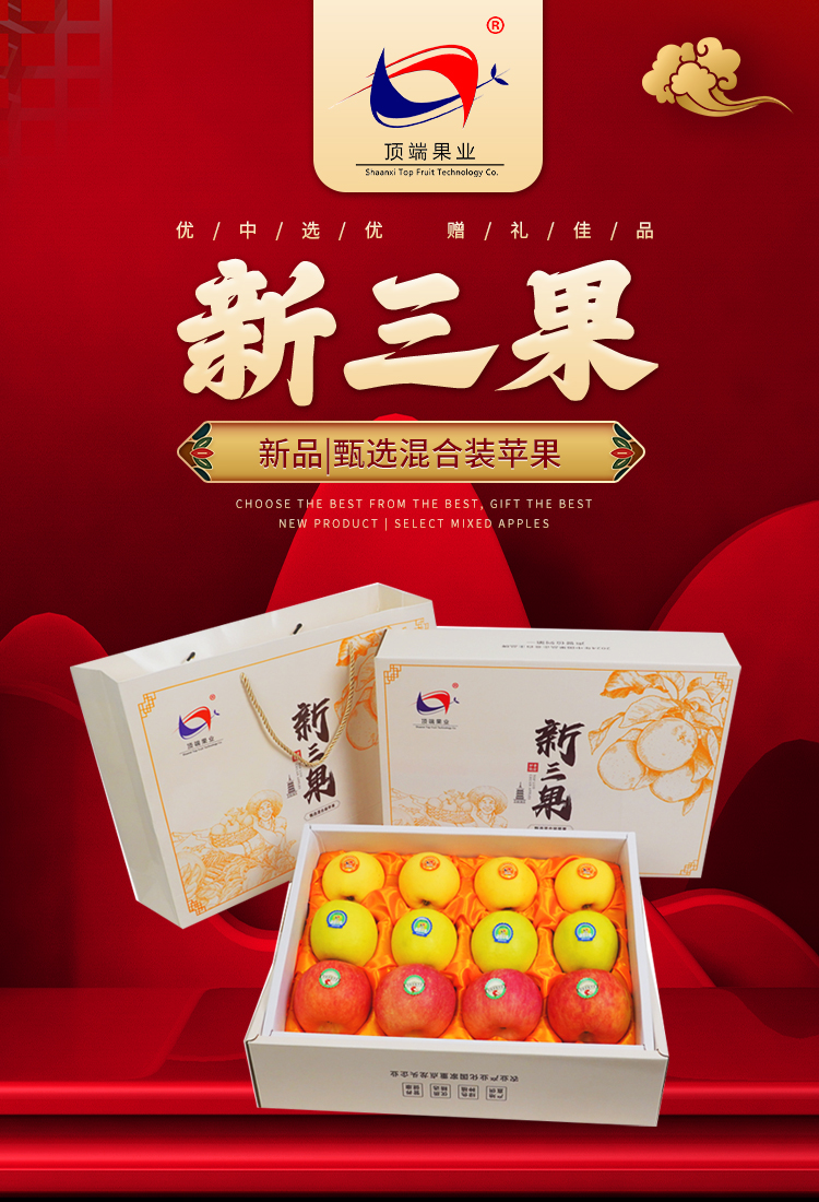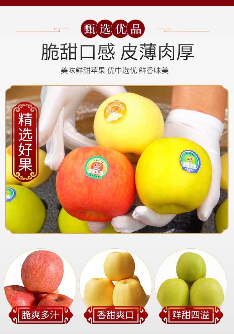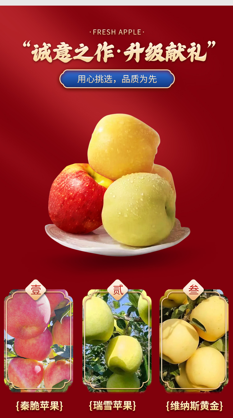 【新三果】顶端果业秦脆+维纳斯黄金+瑞雪苹果三色拼装苹果12枚大果组合装 送礼佳选 升级全新包装