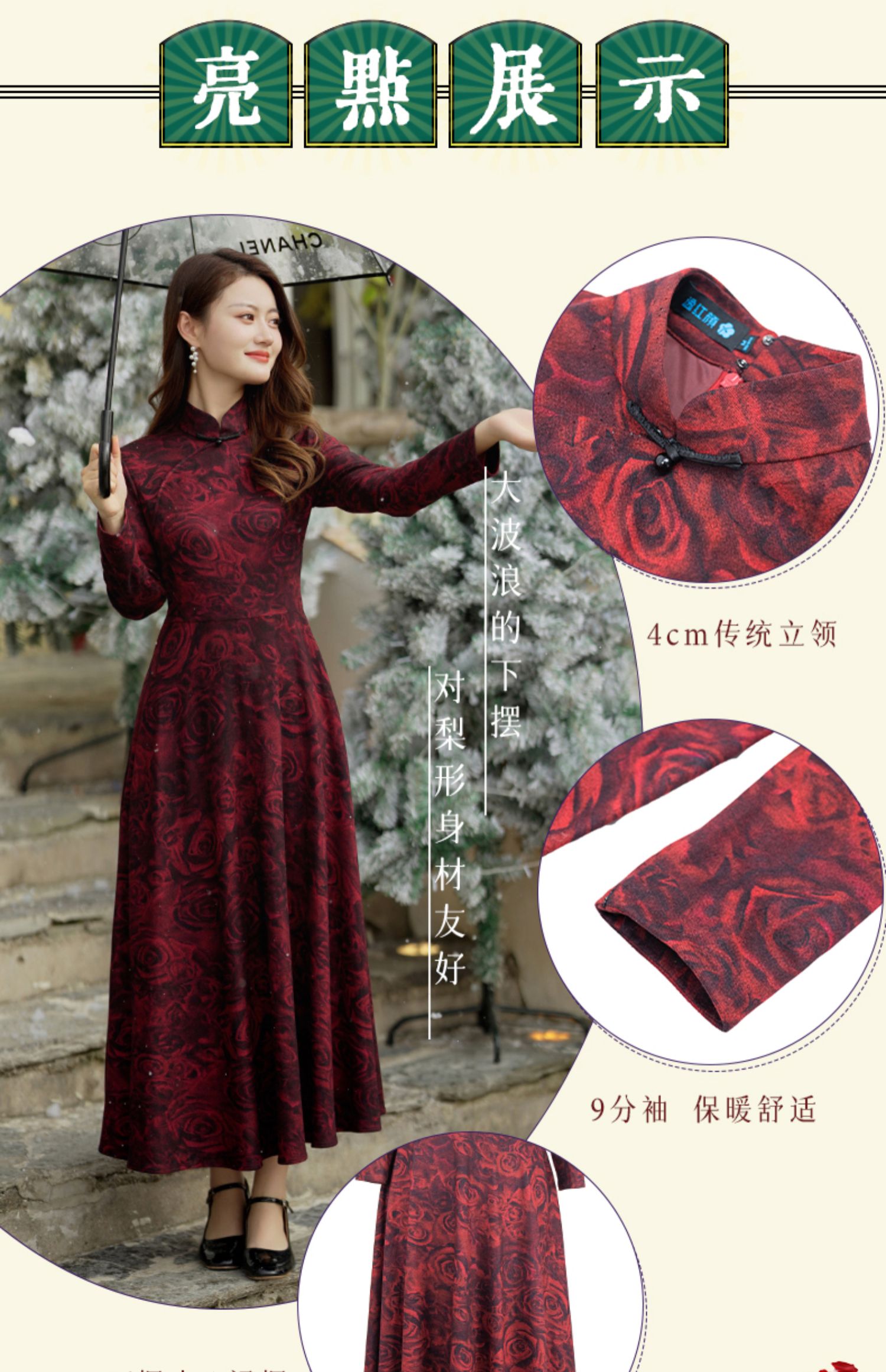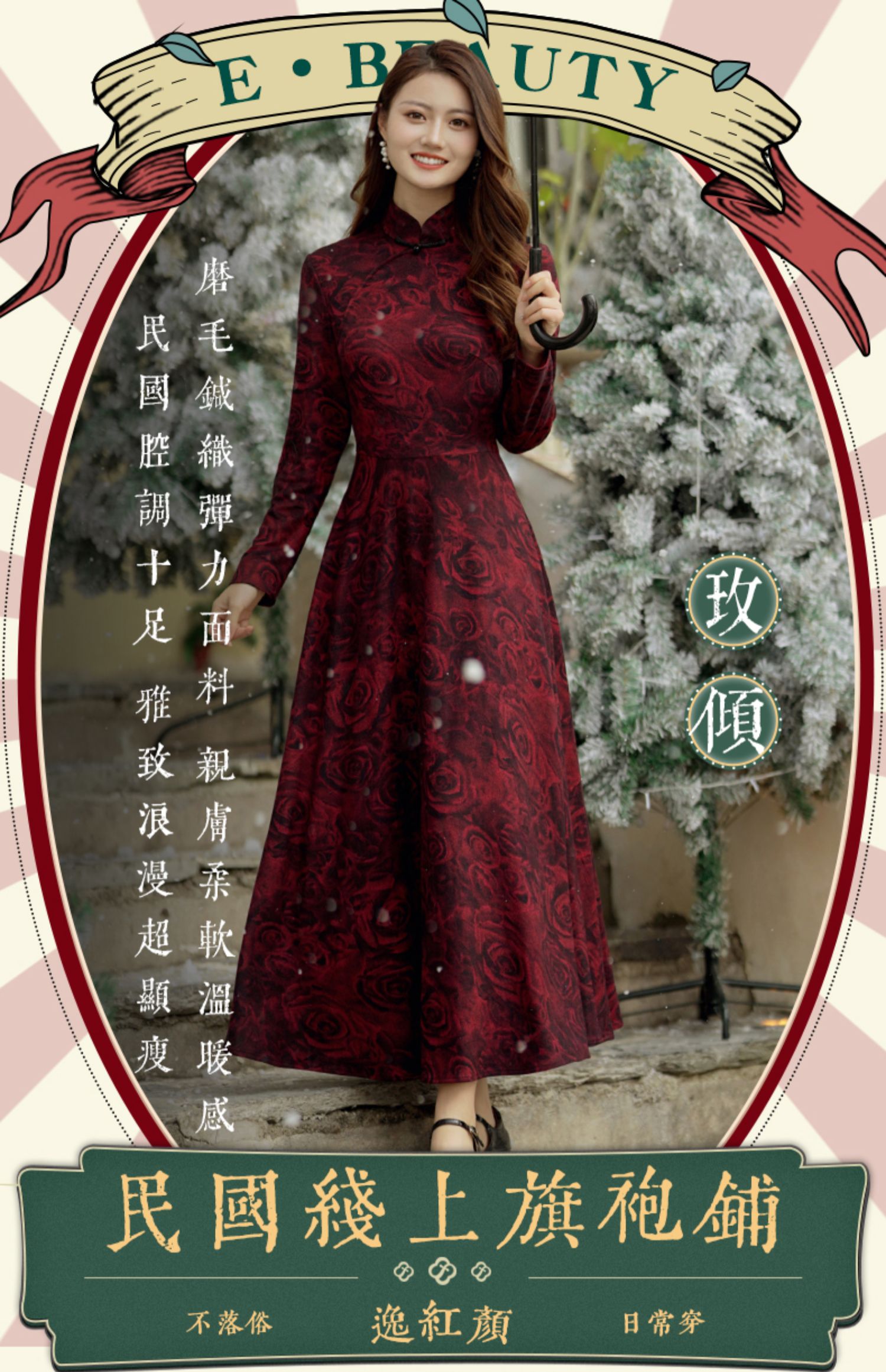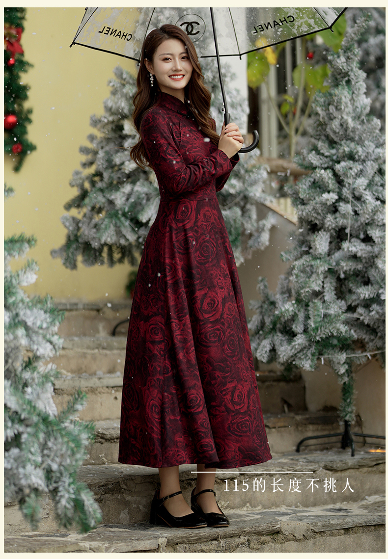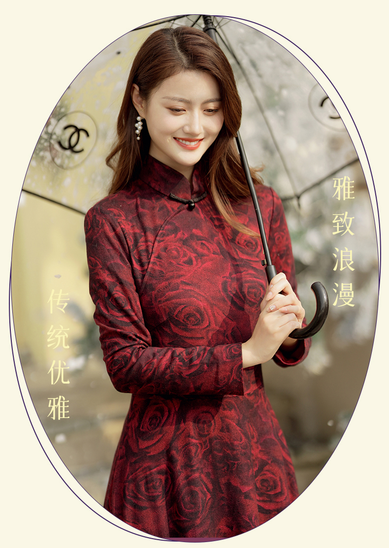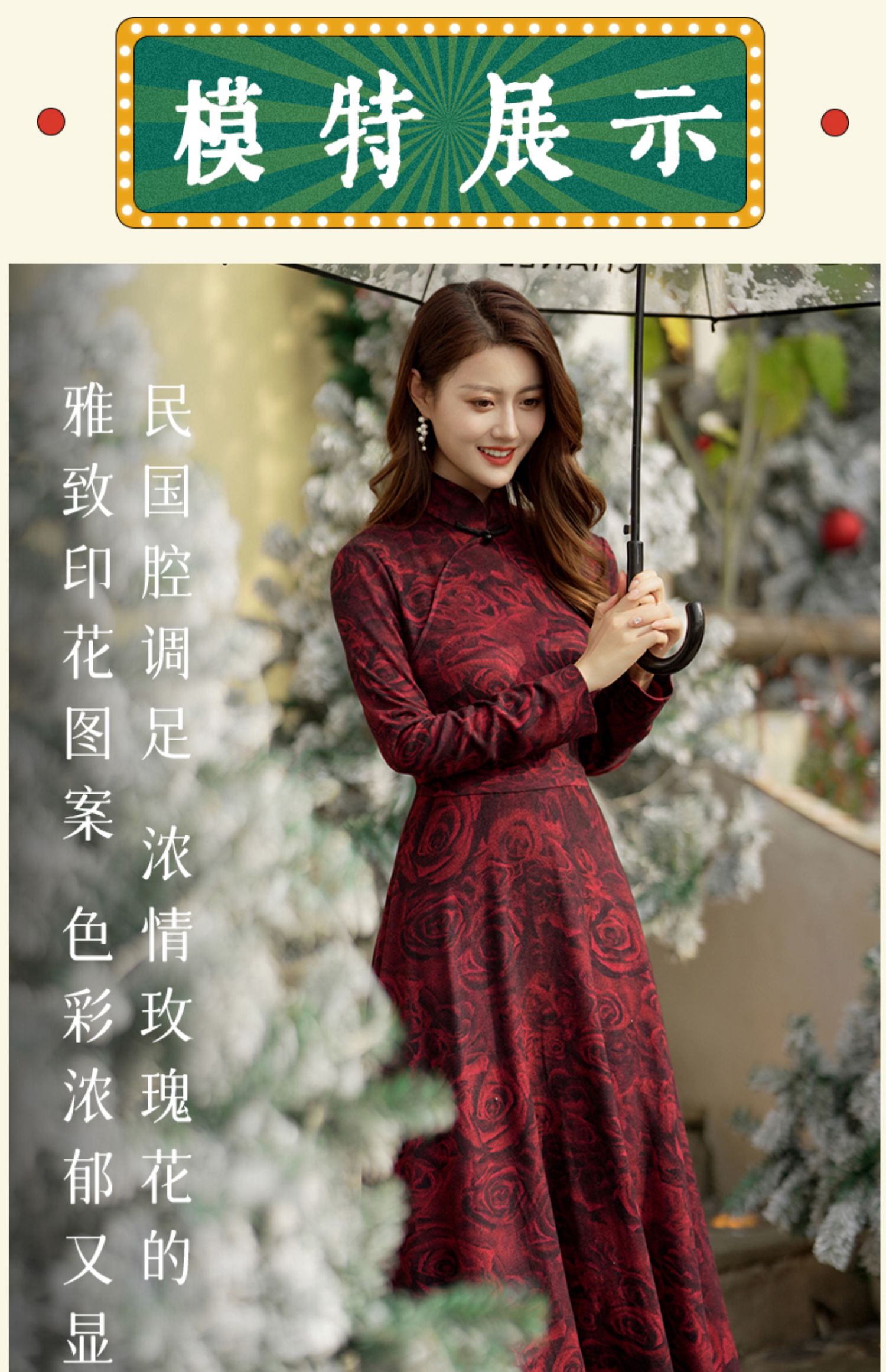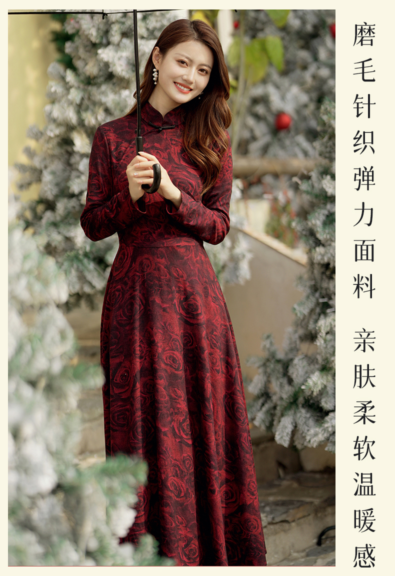 逸红颜 玫倾 2025春季新款针织旗袍改良中式优雅显瘦日常连衣裙女