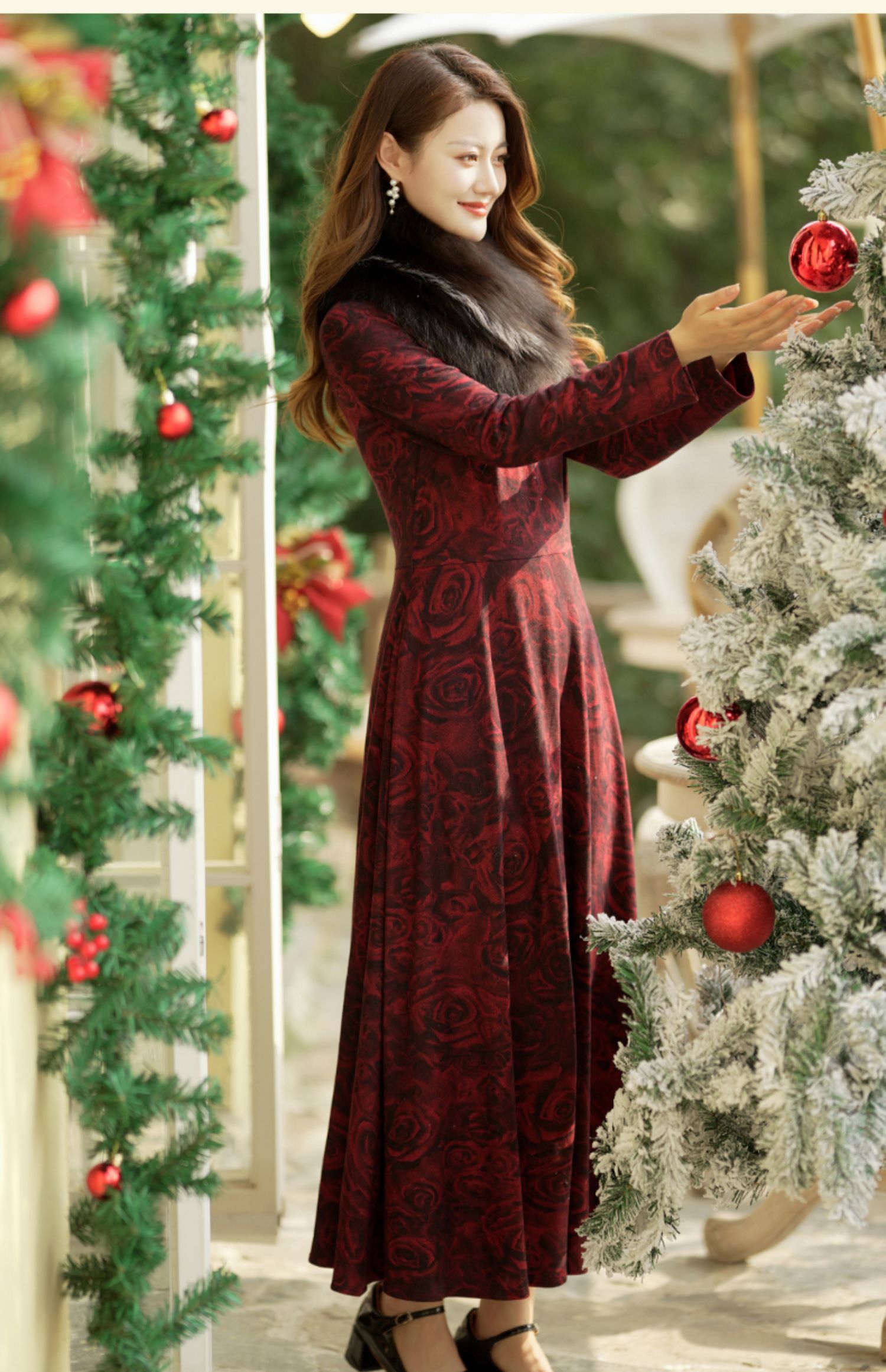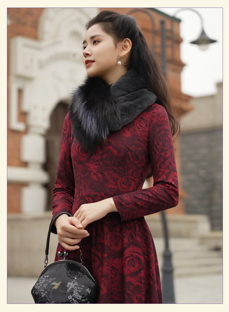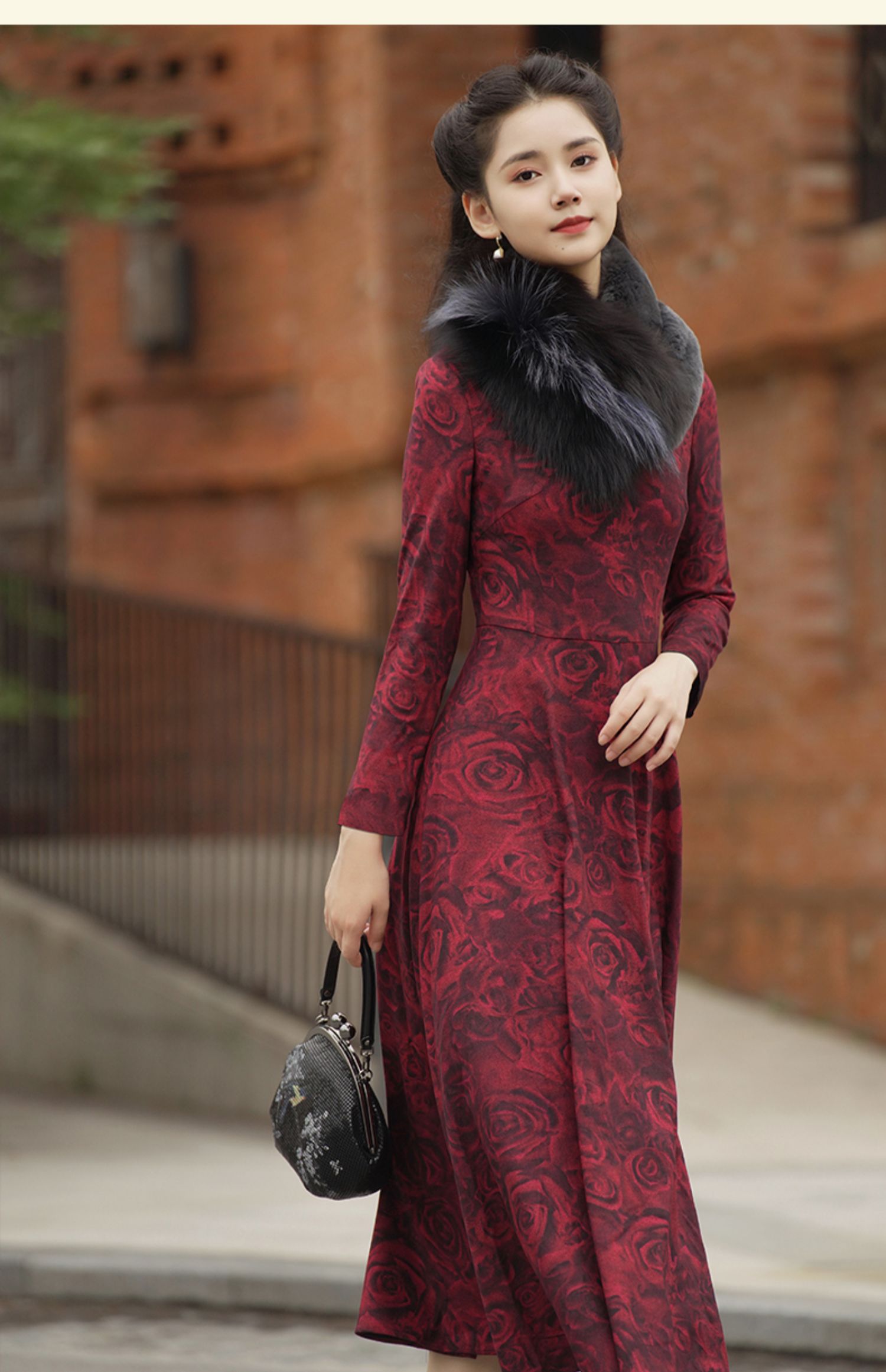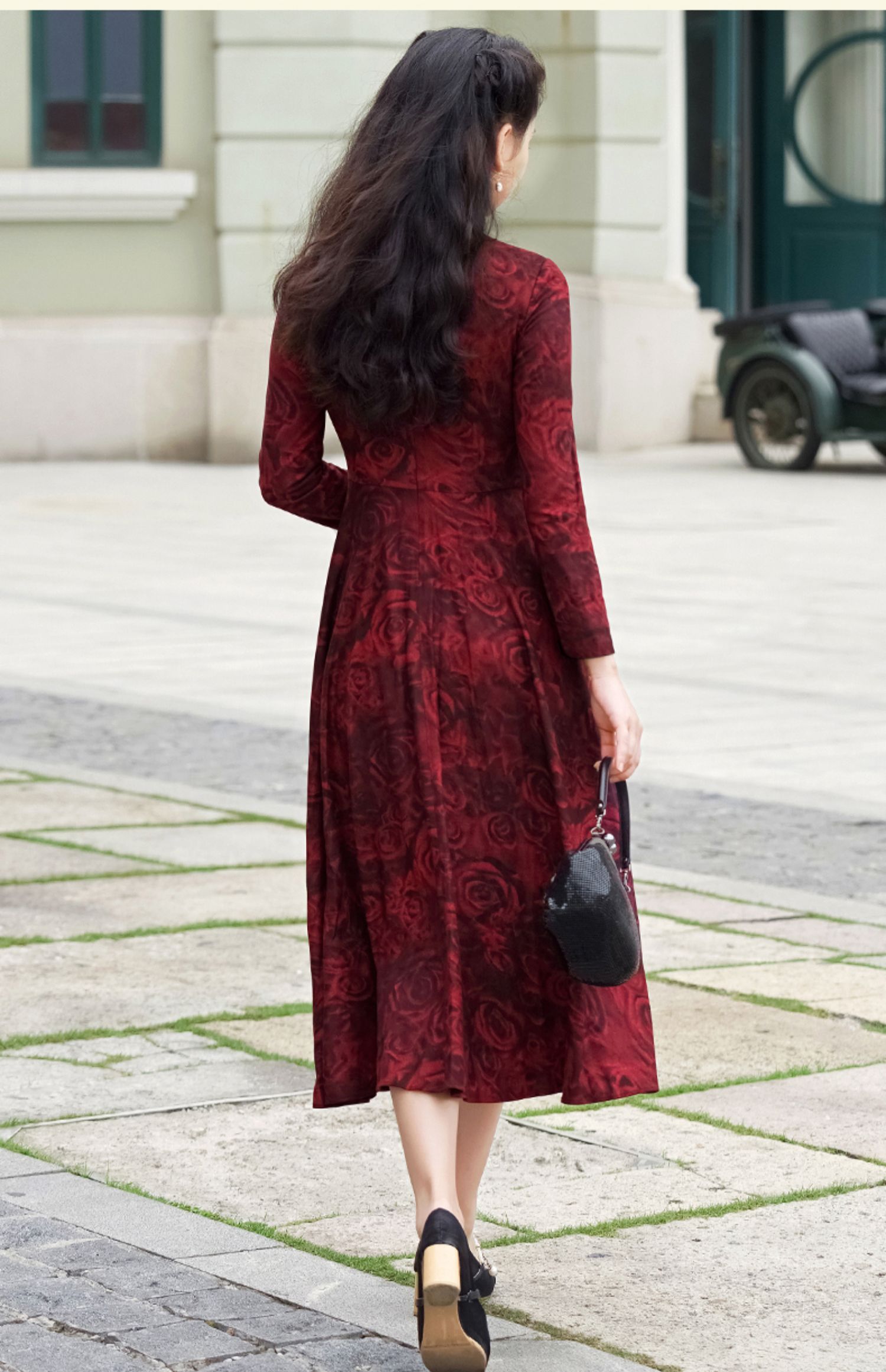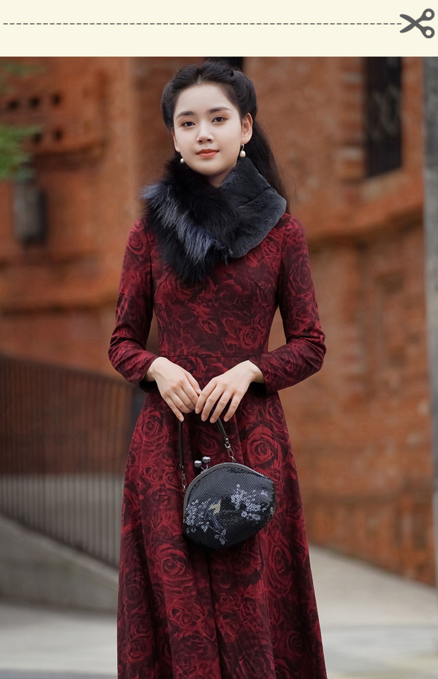 逸红颜 玫倾 2025春季新款针织旗袍改良中式优雅显瘦日常连衣裙女