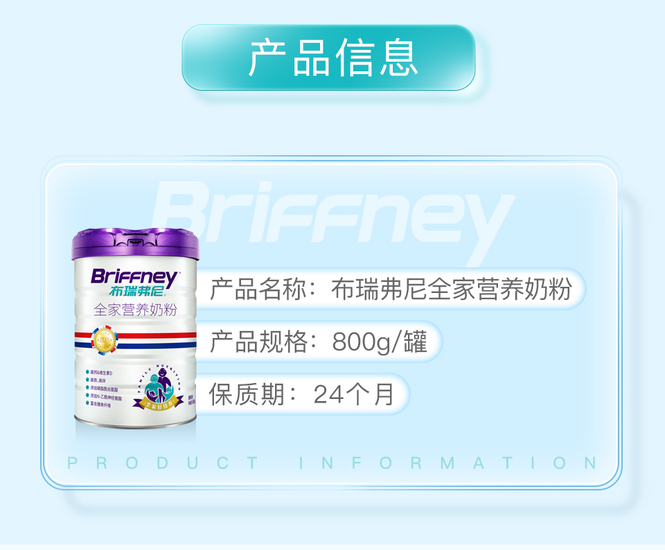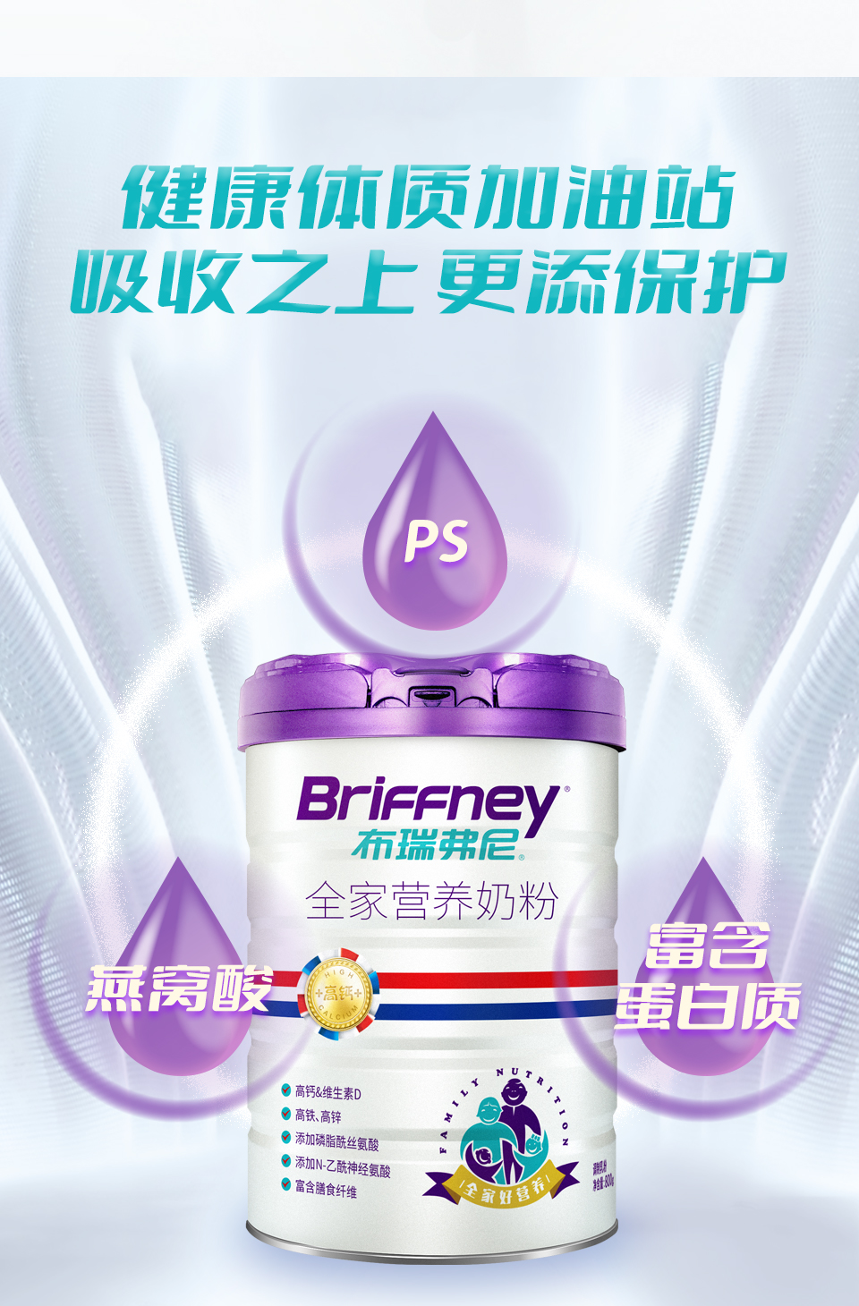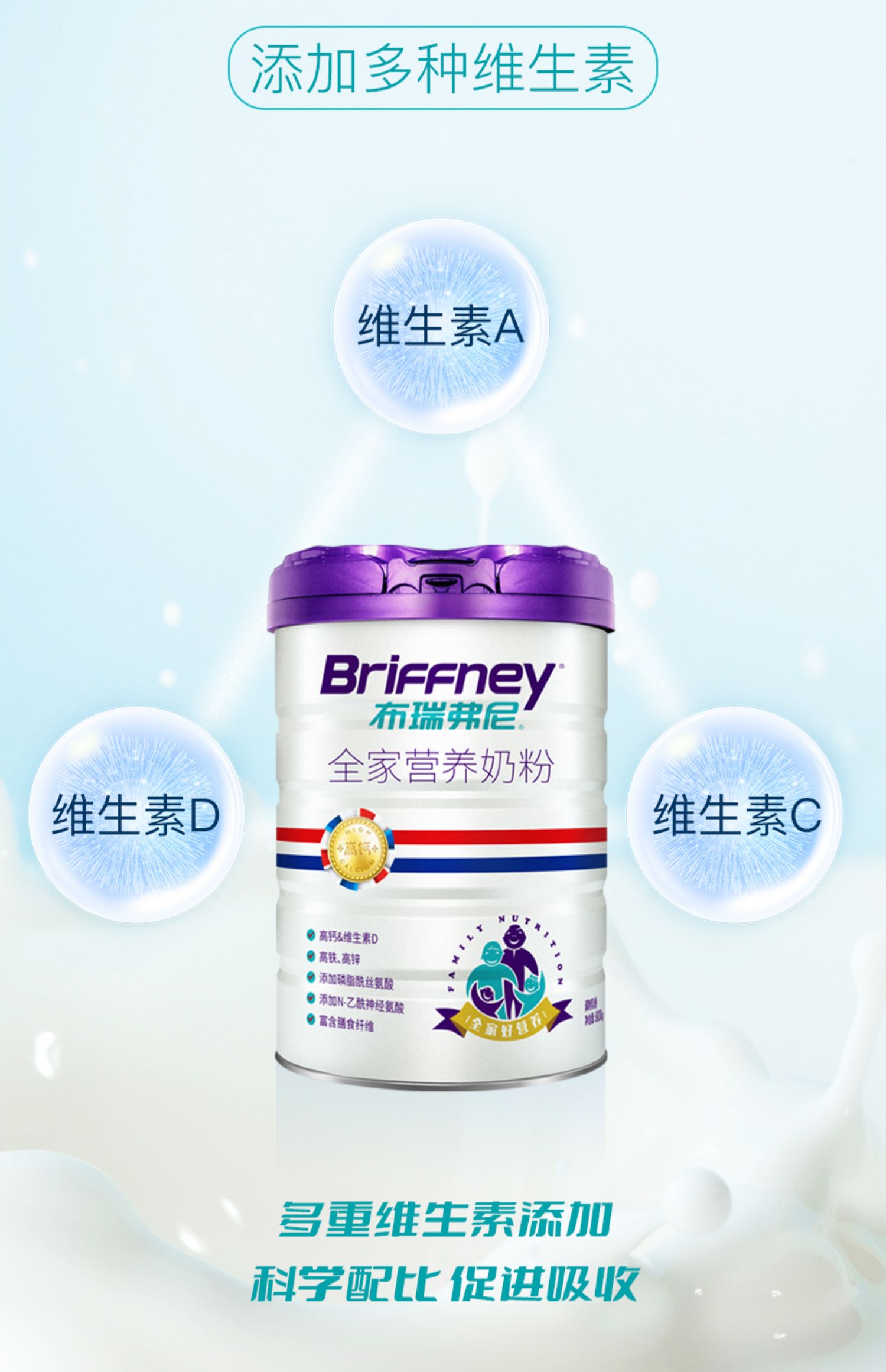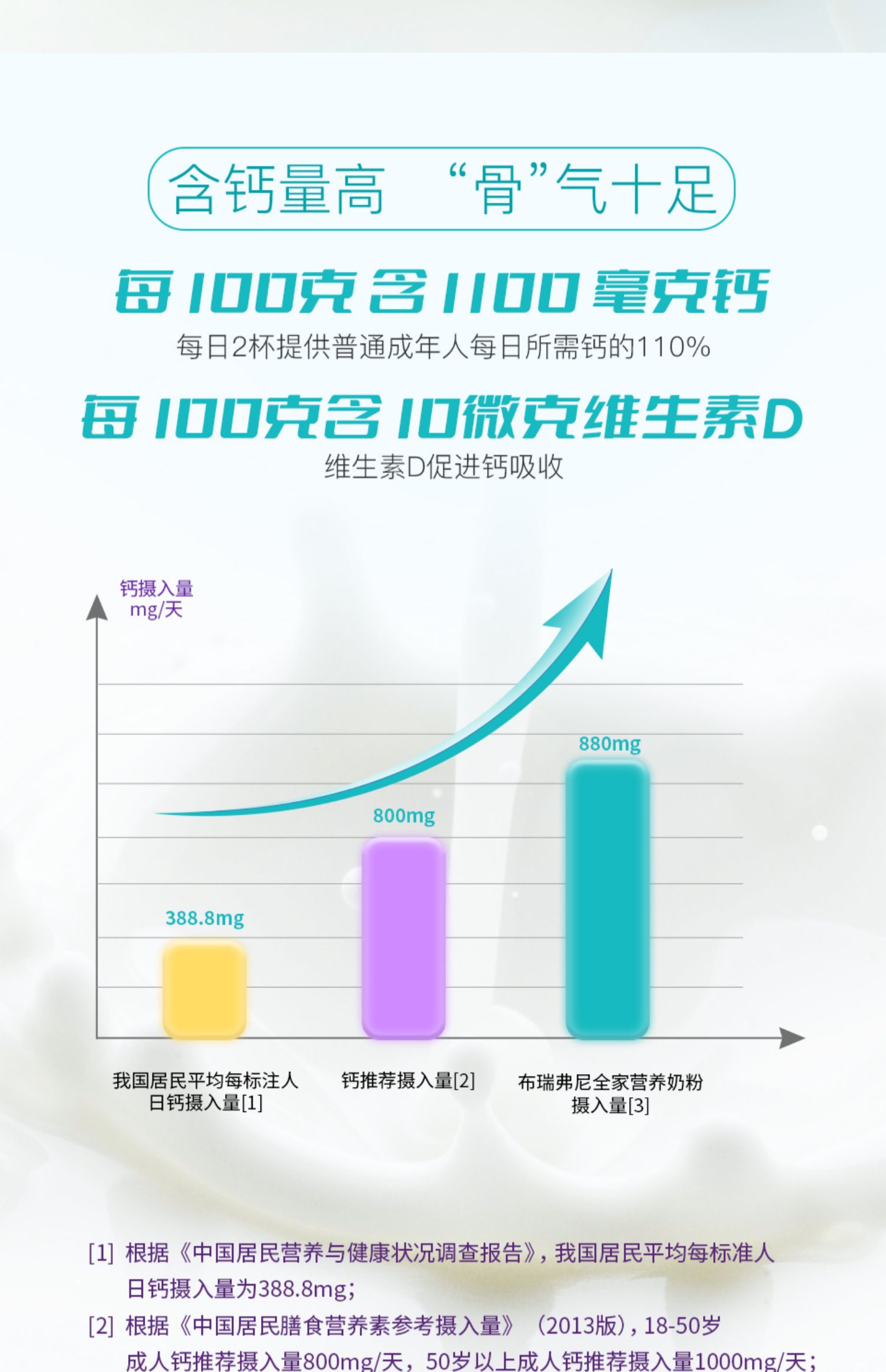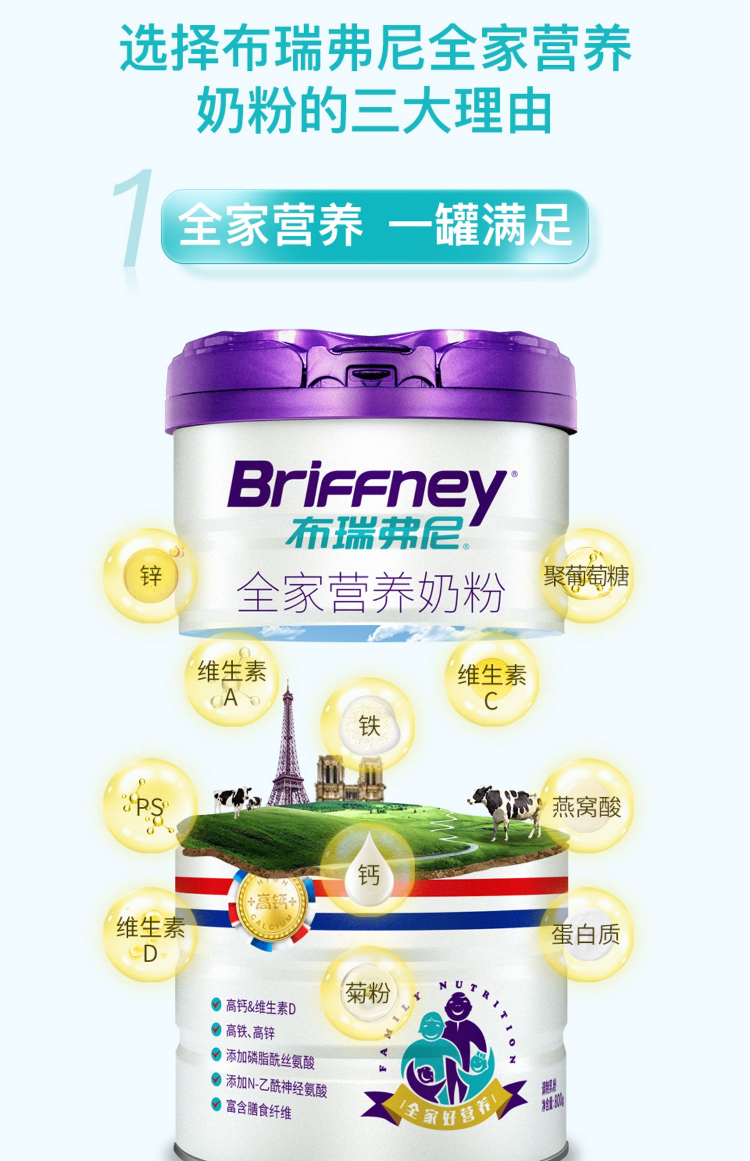 圣元布瑞弗尼全脂高钙奶粉800g全家营养奶粉高铁800g