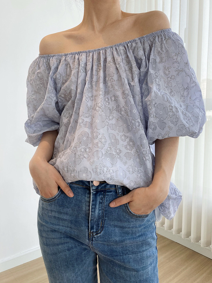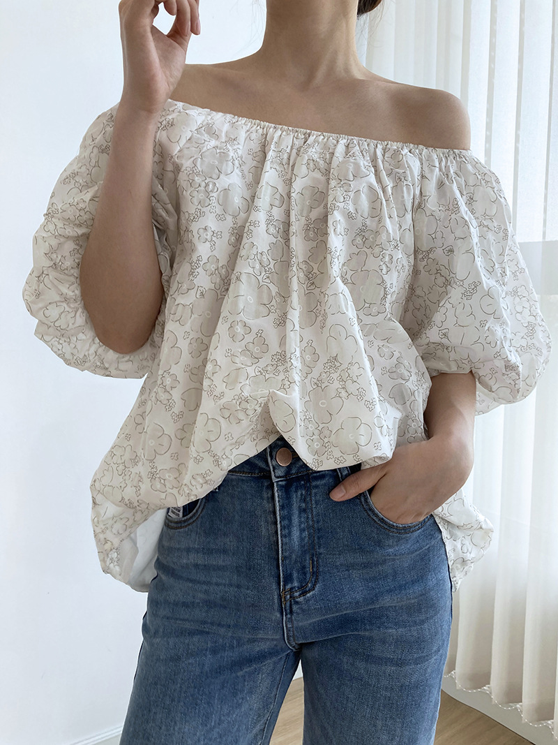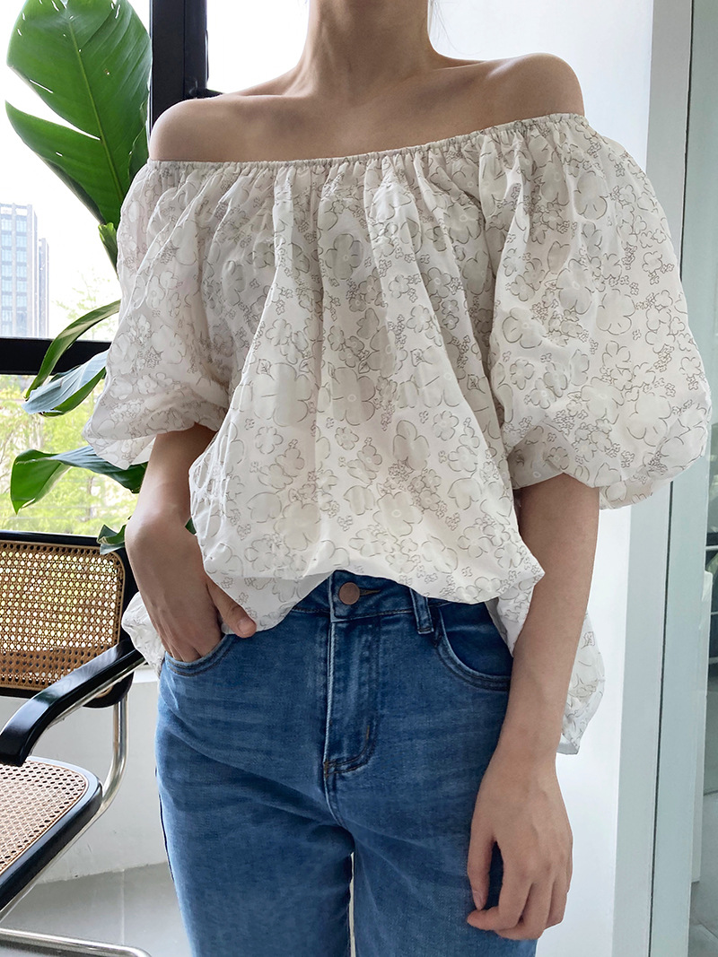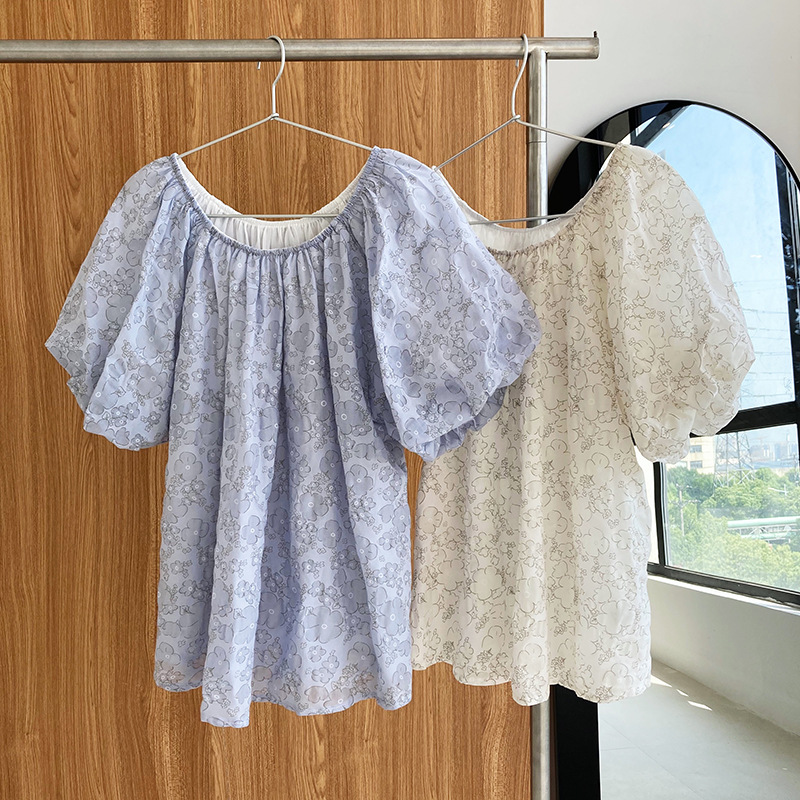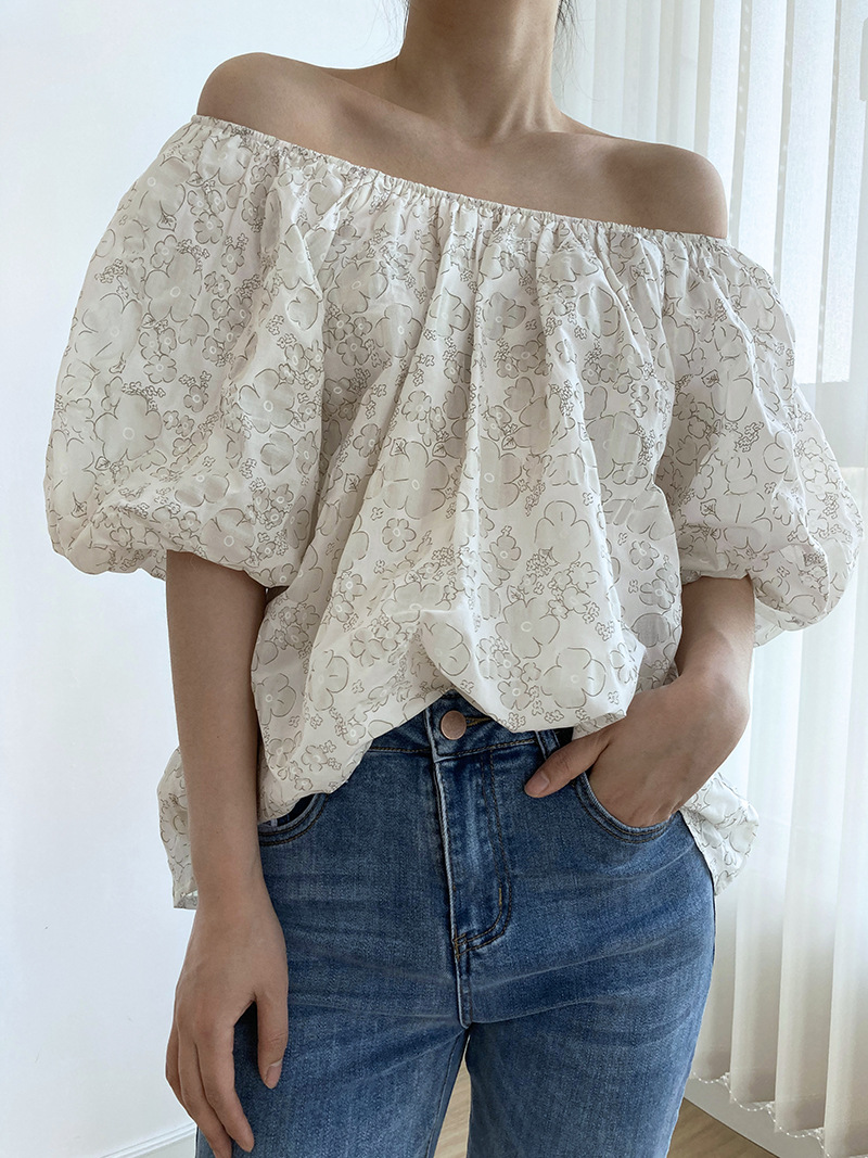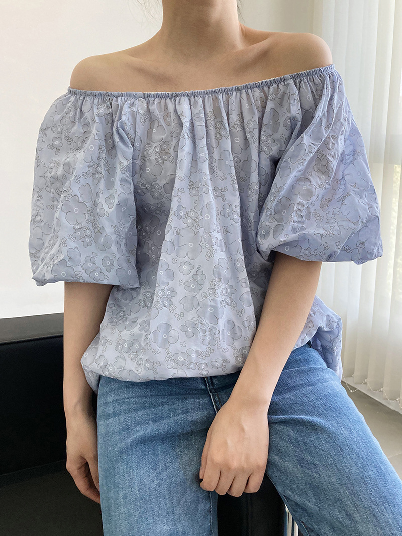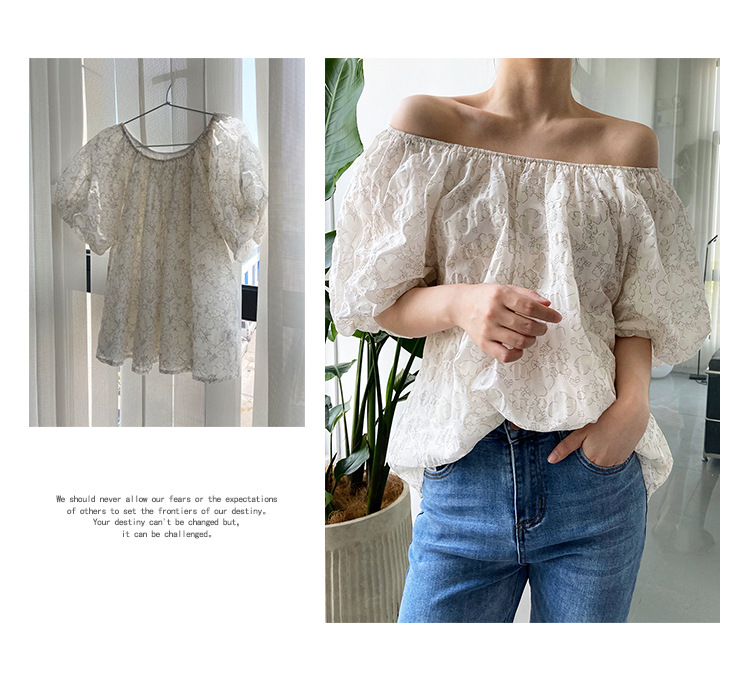 【别致设计感】一字肩泡泡袖 锁骨衬衫 清新可爱 小众娃娃衫