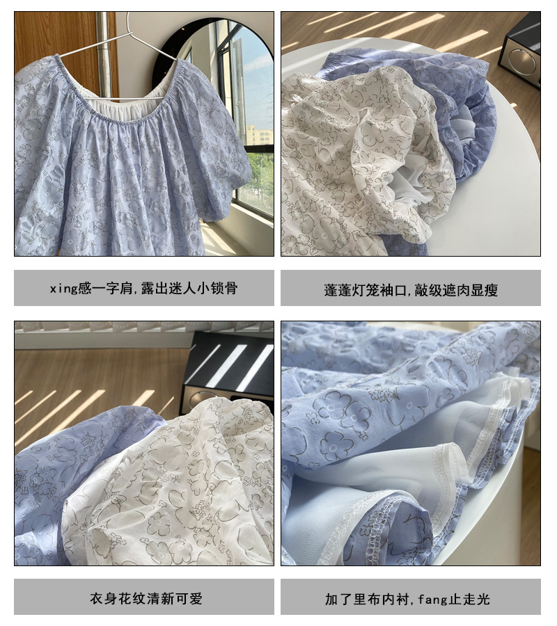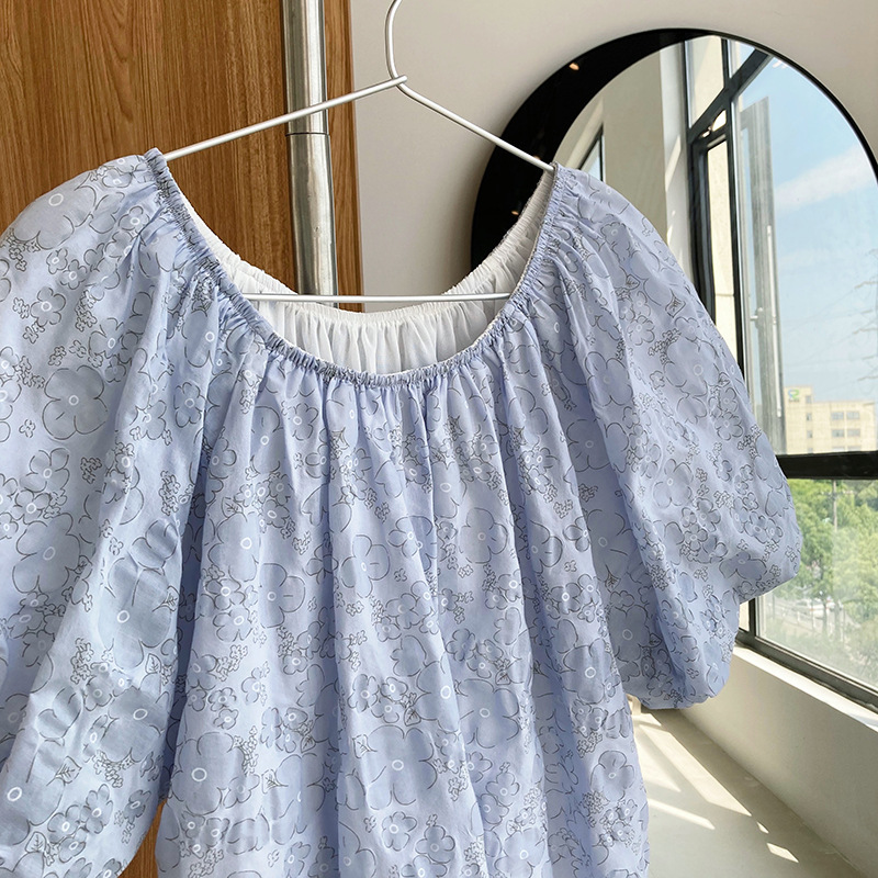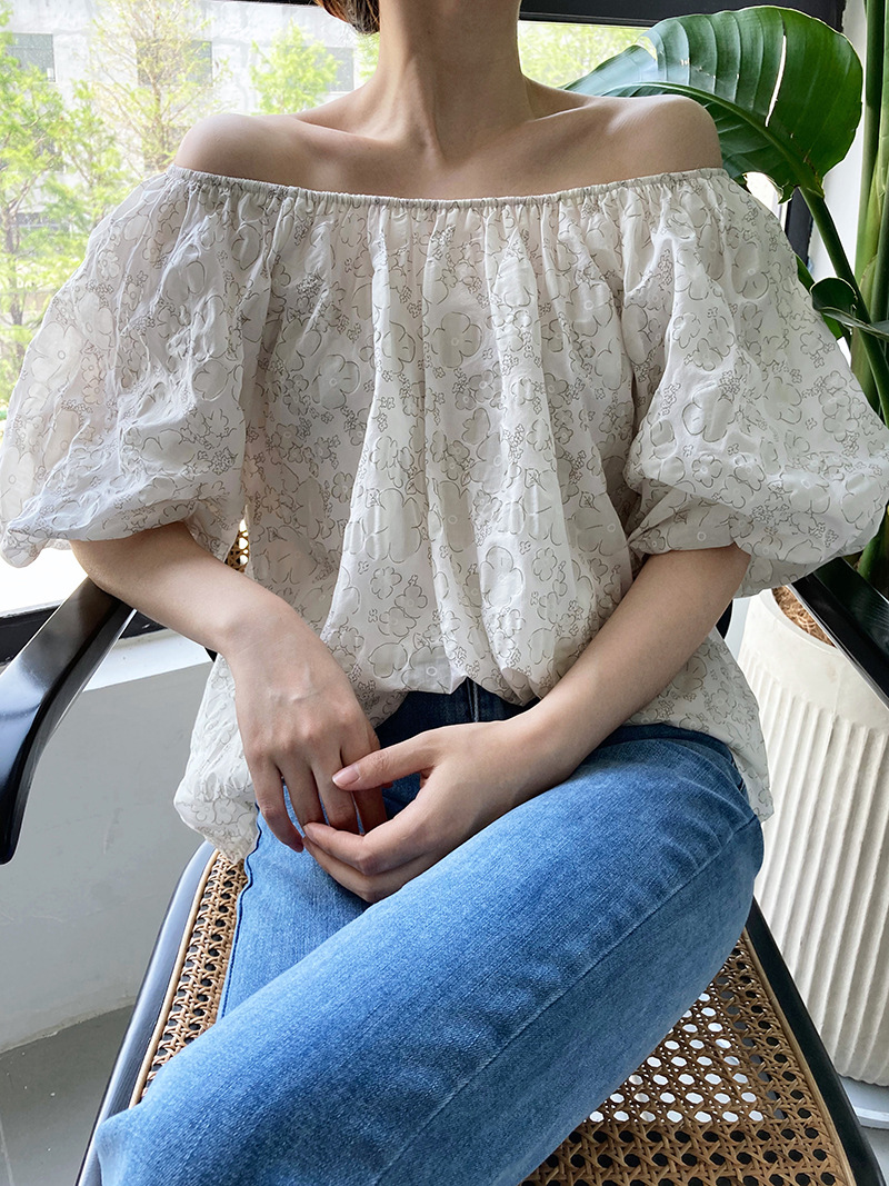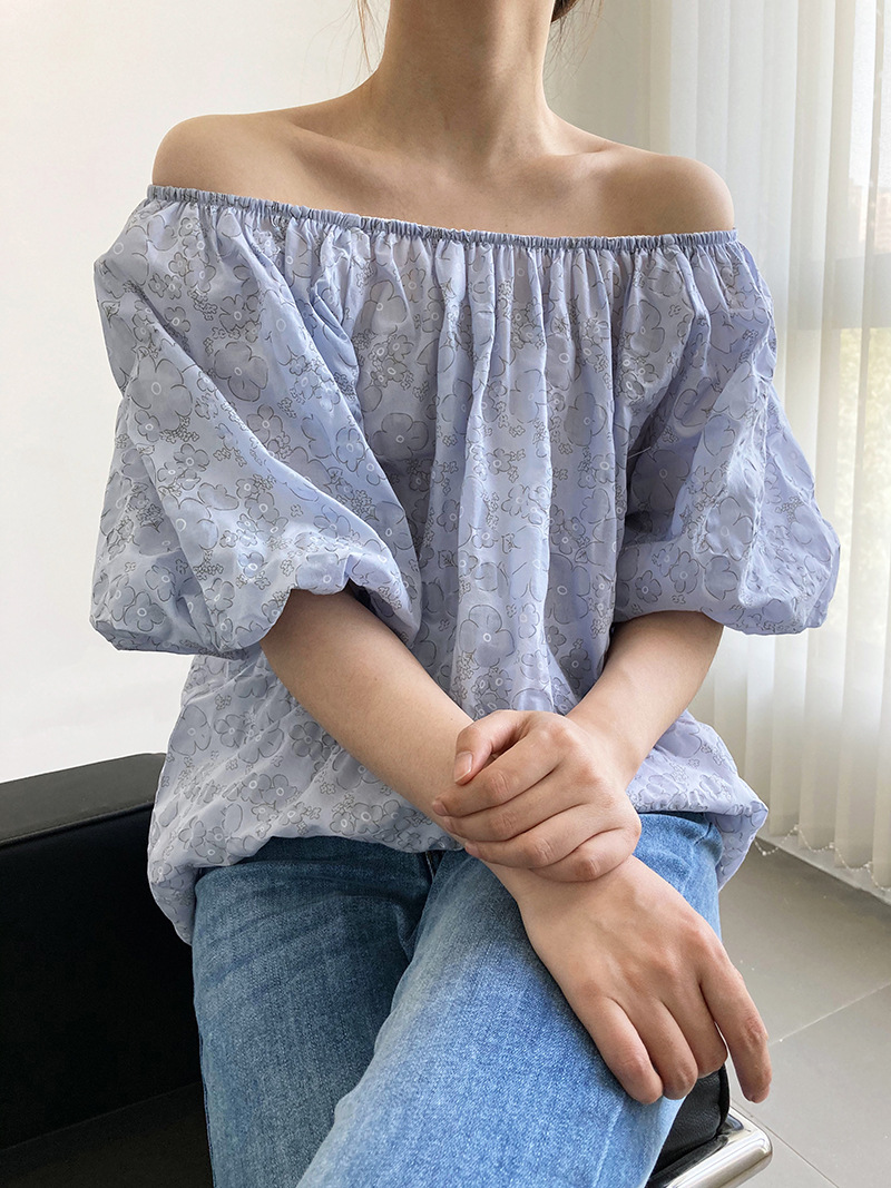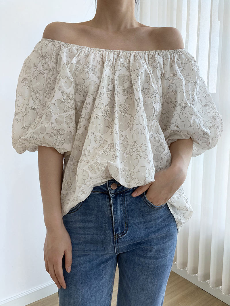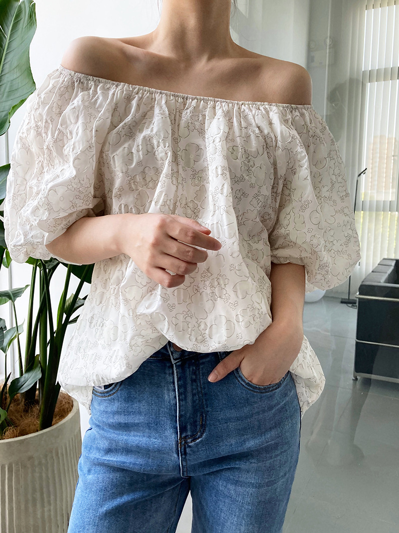 【别致设计感】一字肩泡泡袖 锁骨衬衫 清新可爱 小众娃娃衫