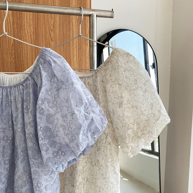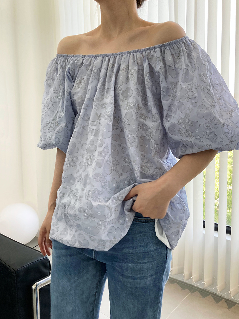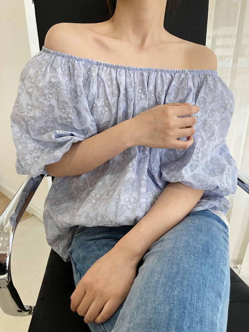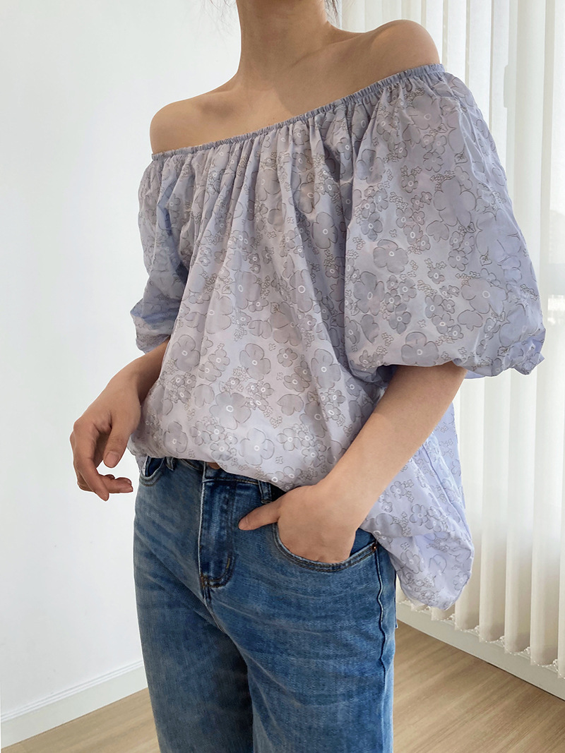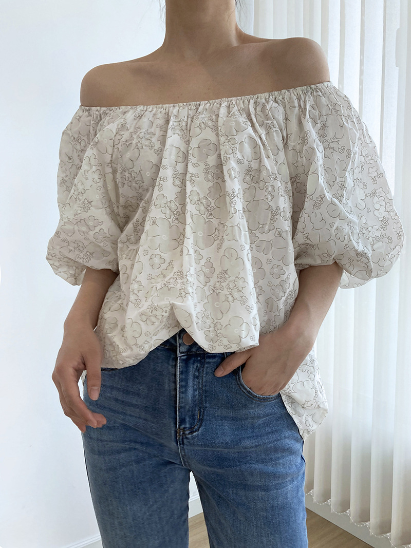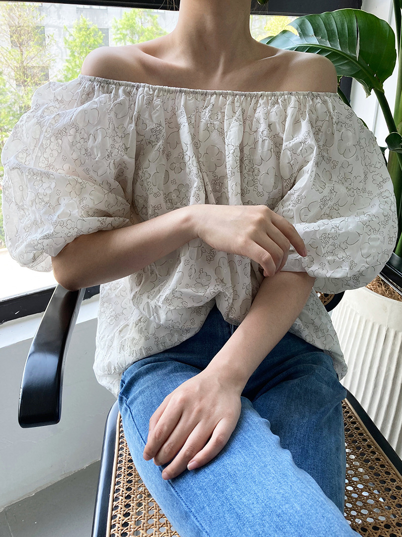【别致设计感】一字肩泡泡袖 锁骨衬衫 清新可爱 小众娃娃衫