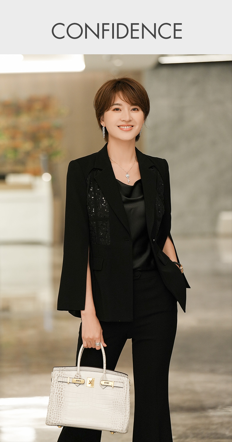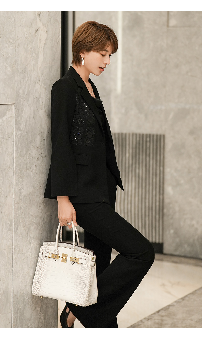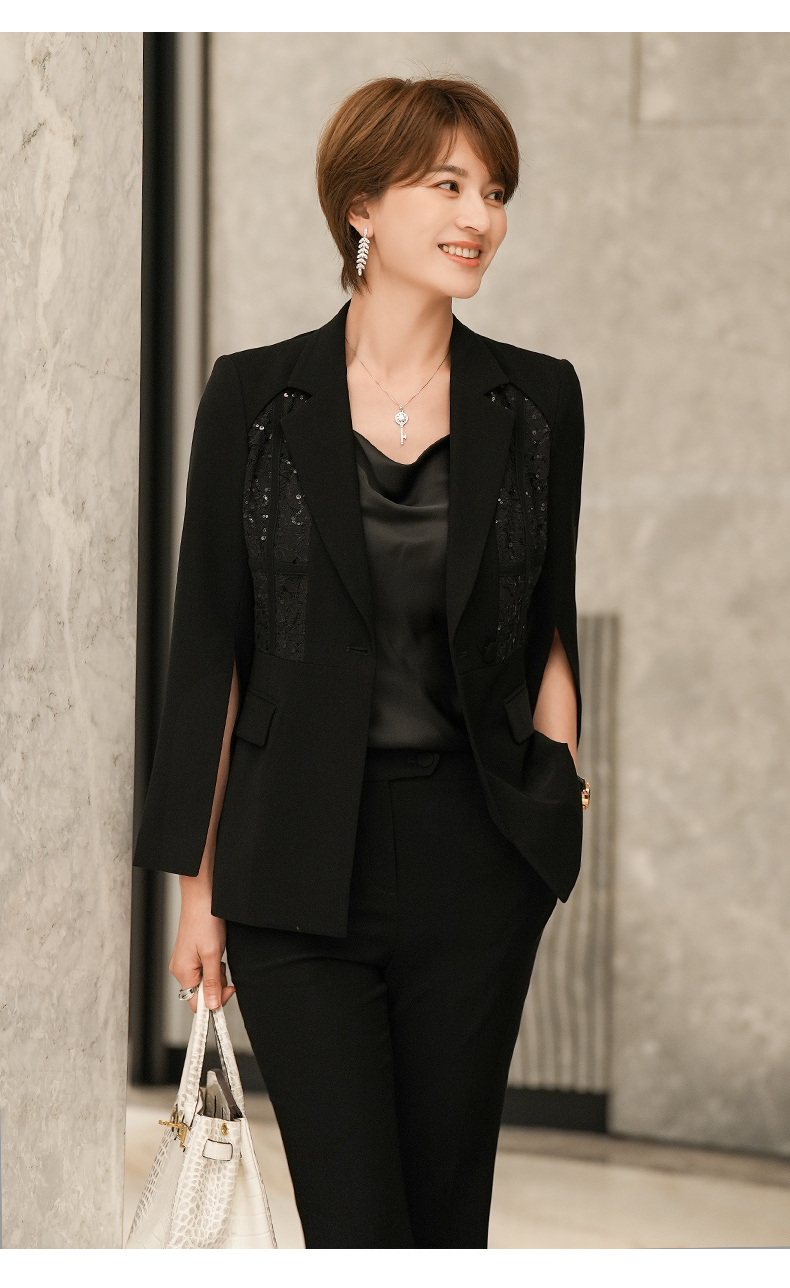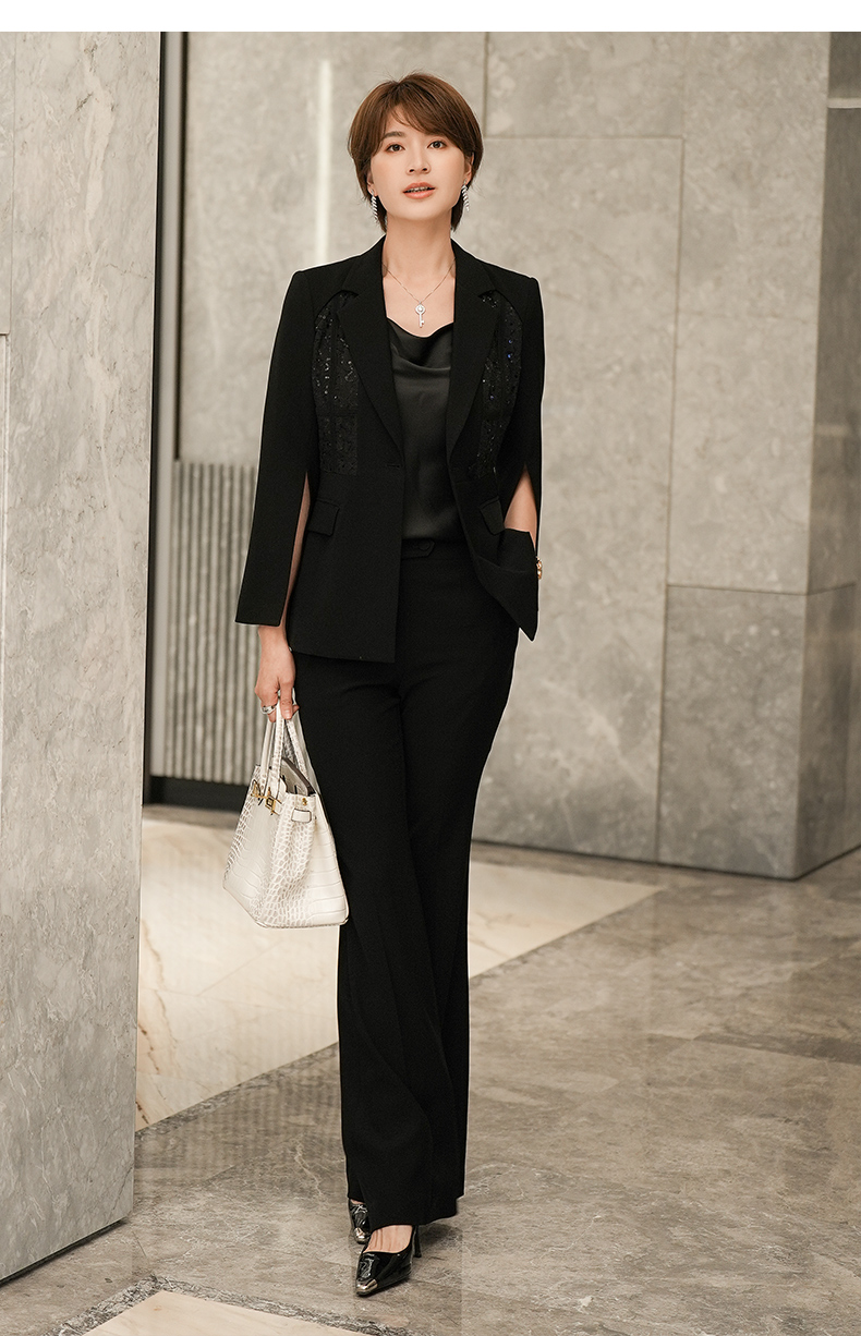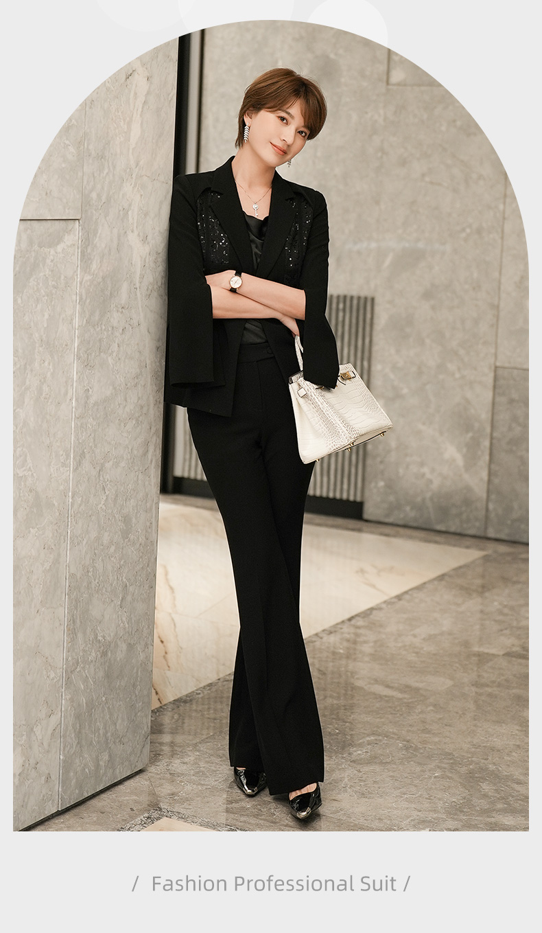 黑色西装套装女2023春季新款设计感气质总裁西服职业两件套