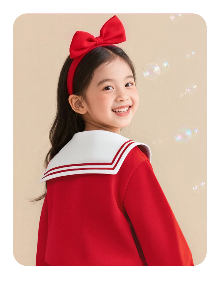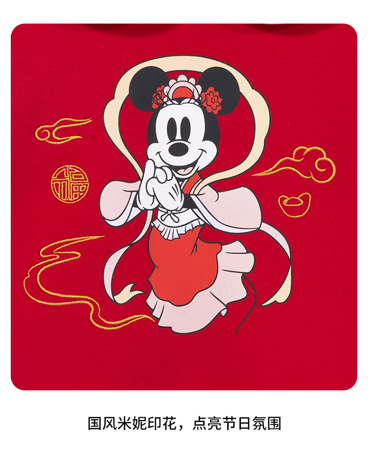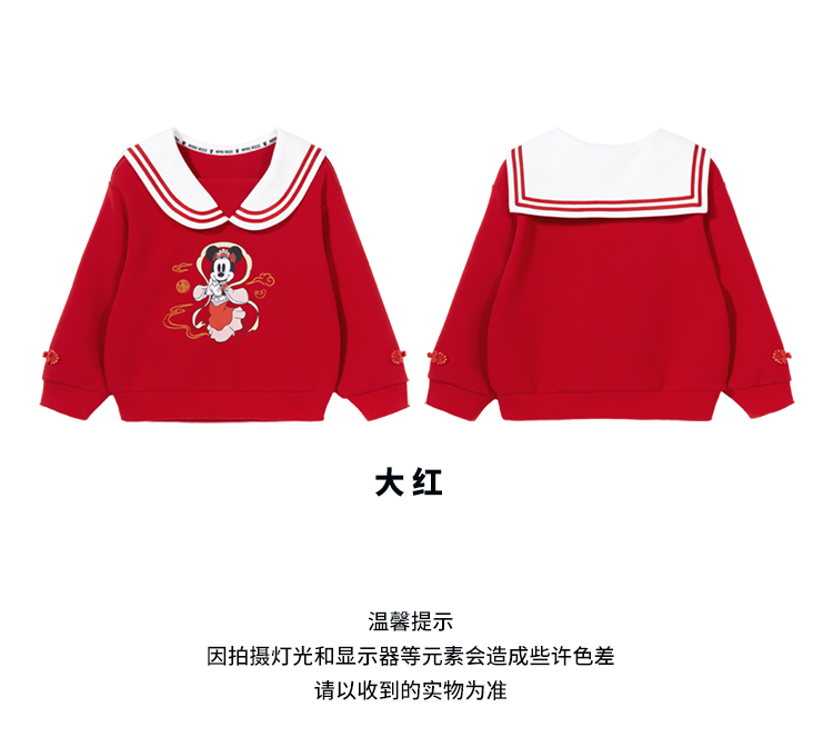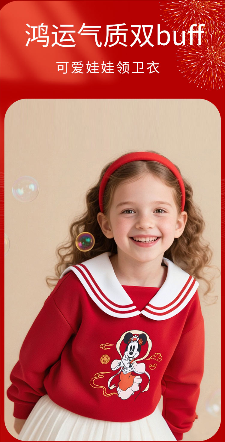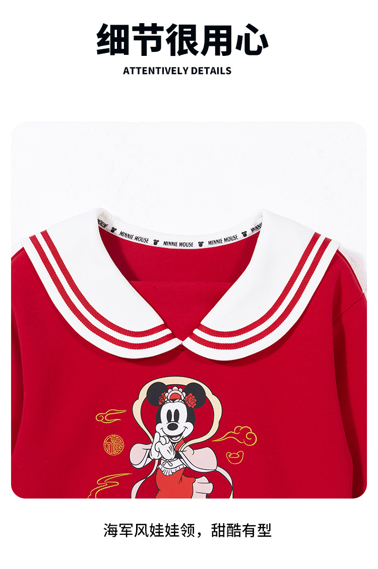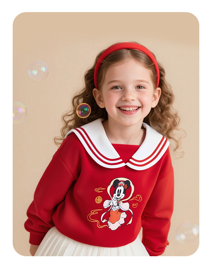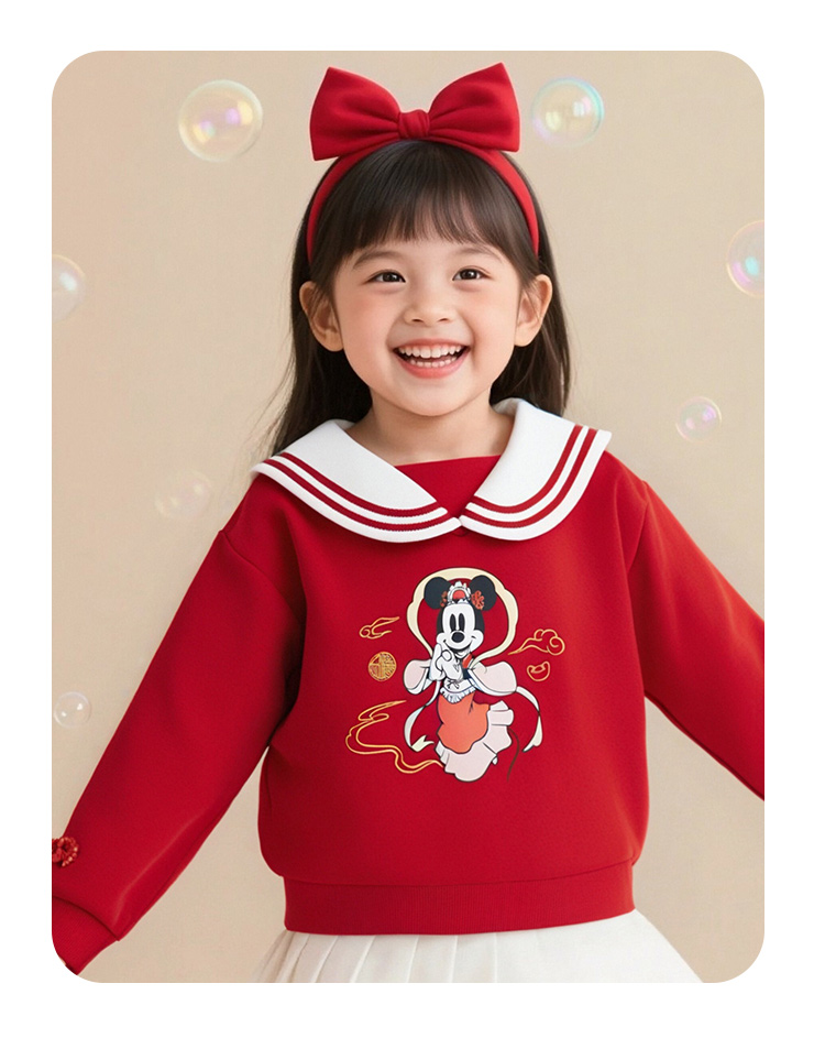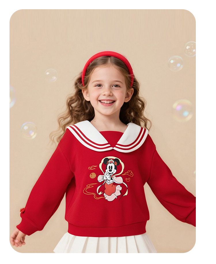 迪士尼2025春秋新款女童海军领卫衣柔软亲肤国风上衣中大童洋气上衣XD1DS089