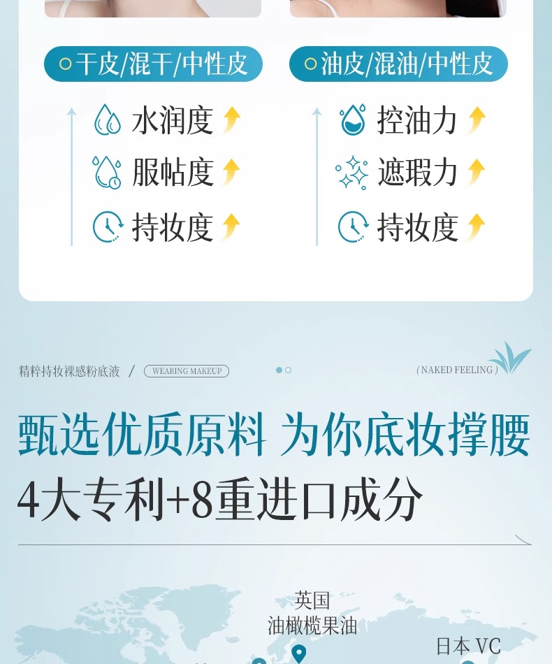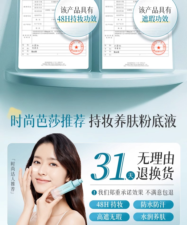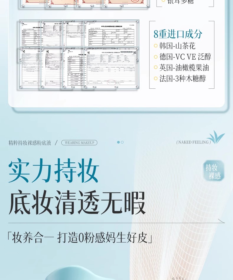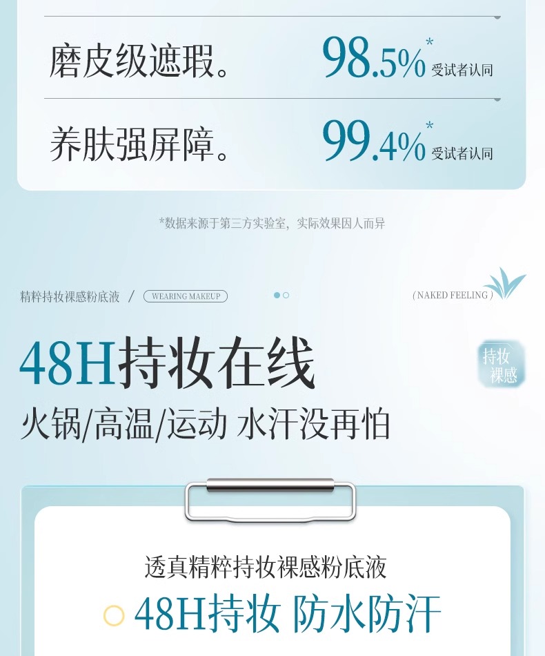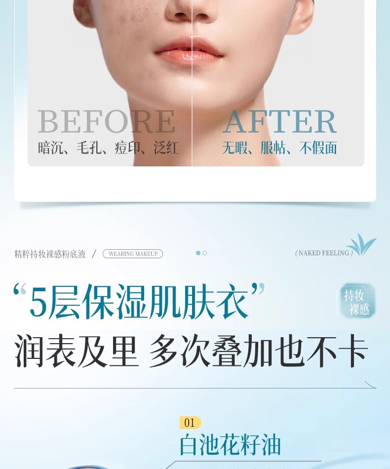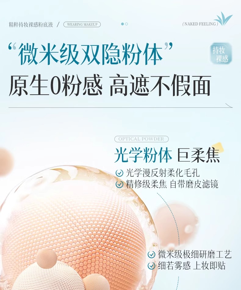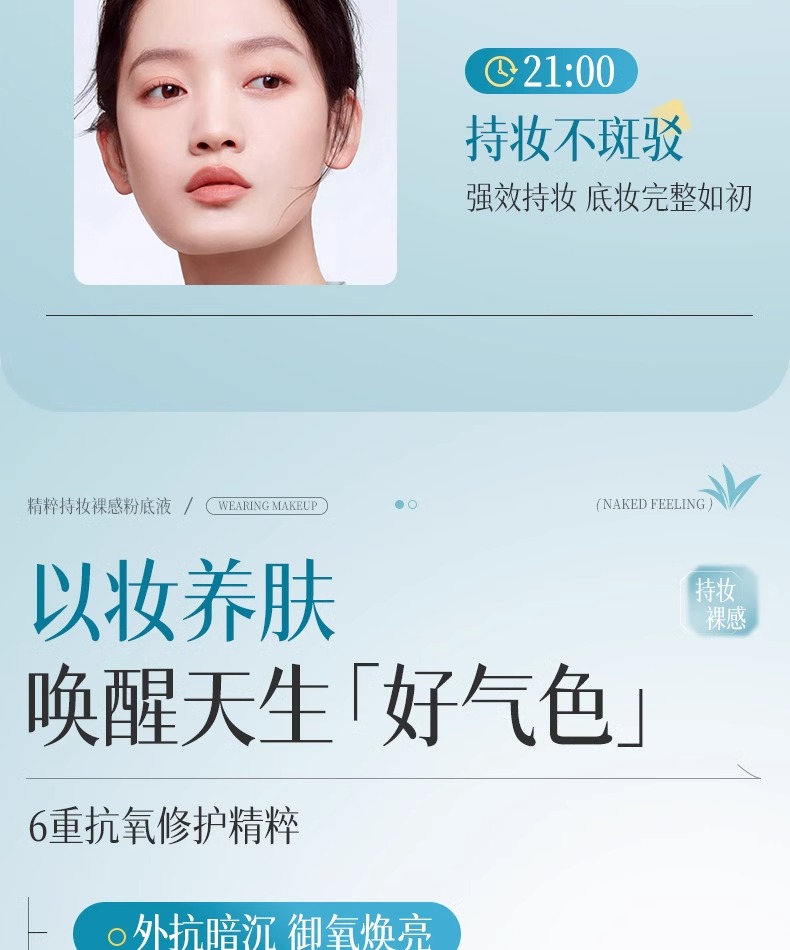 【48H长效持妆 清透无暇】精粹持妆裸感粉底30ml#看不见粉底液遮瑕持久不脱妆混油皮干皮保湿女BB粉霜正品官方旗舰店