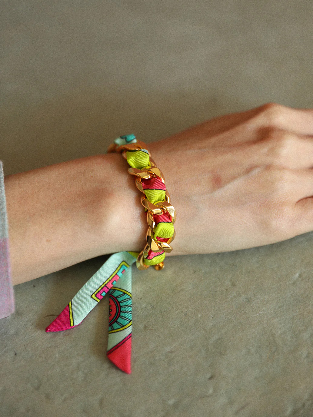 订购14周到|AN-NEE-BRG-DECEMBRE-薄荷绿 幸运予你 1cm 丝巾手镯[法国设计师]