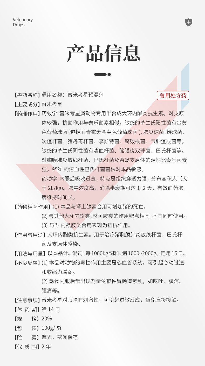 华畜 20%水溶替米考星预混剂100g 链球菌 支原体感染
