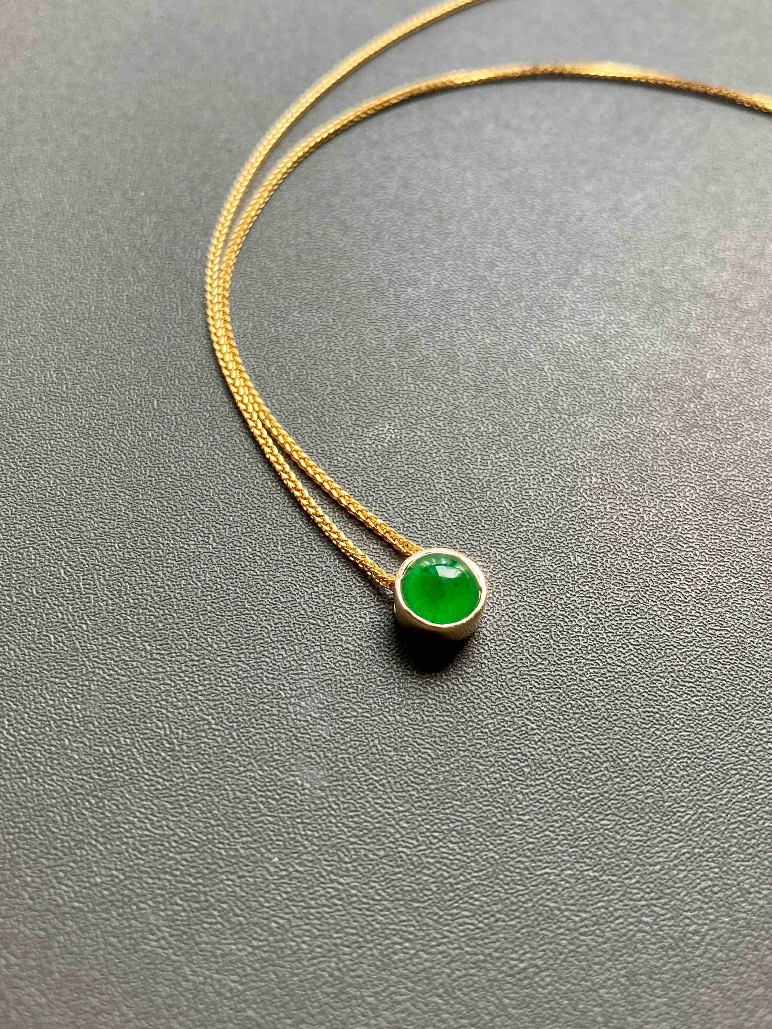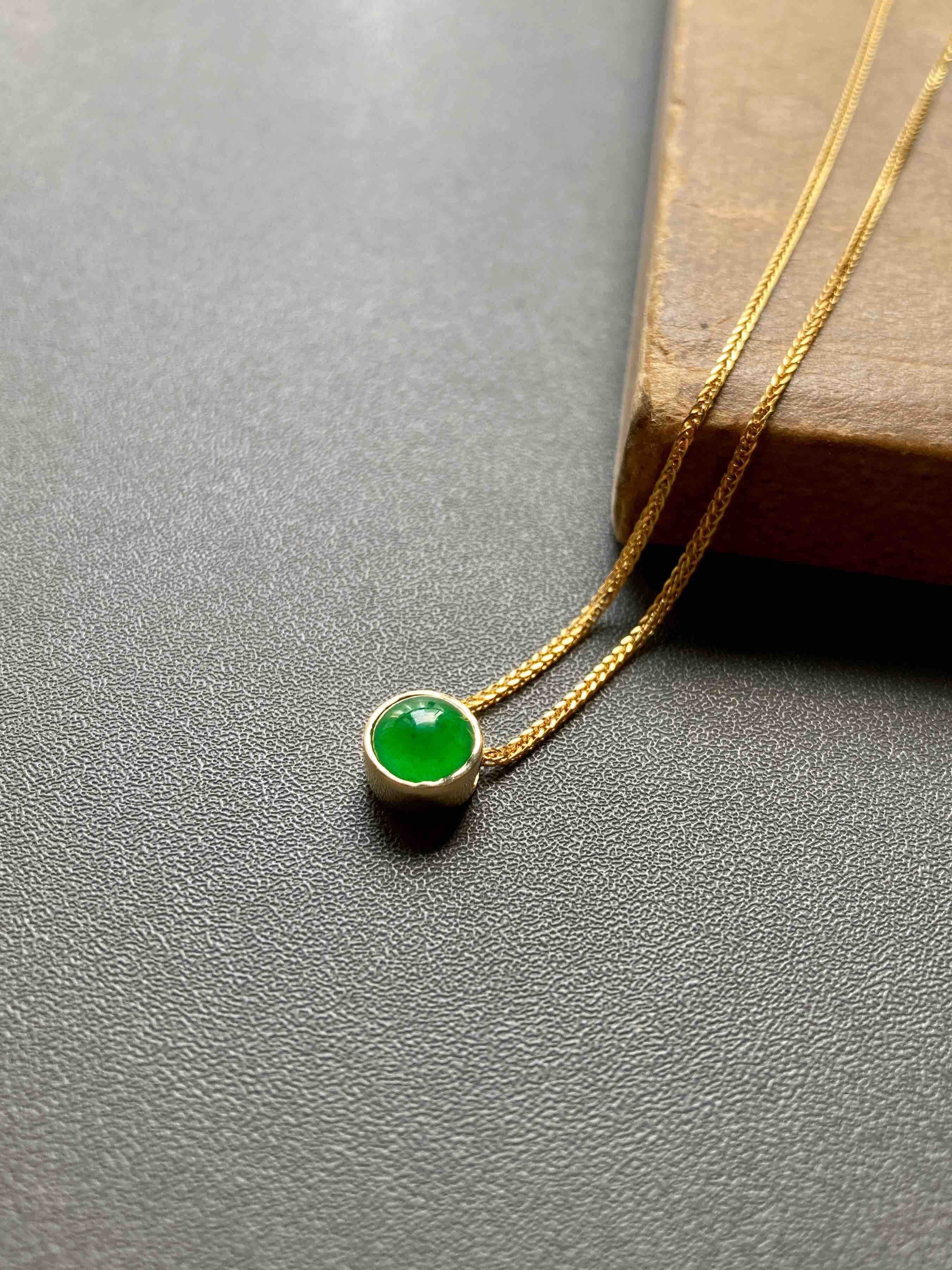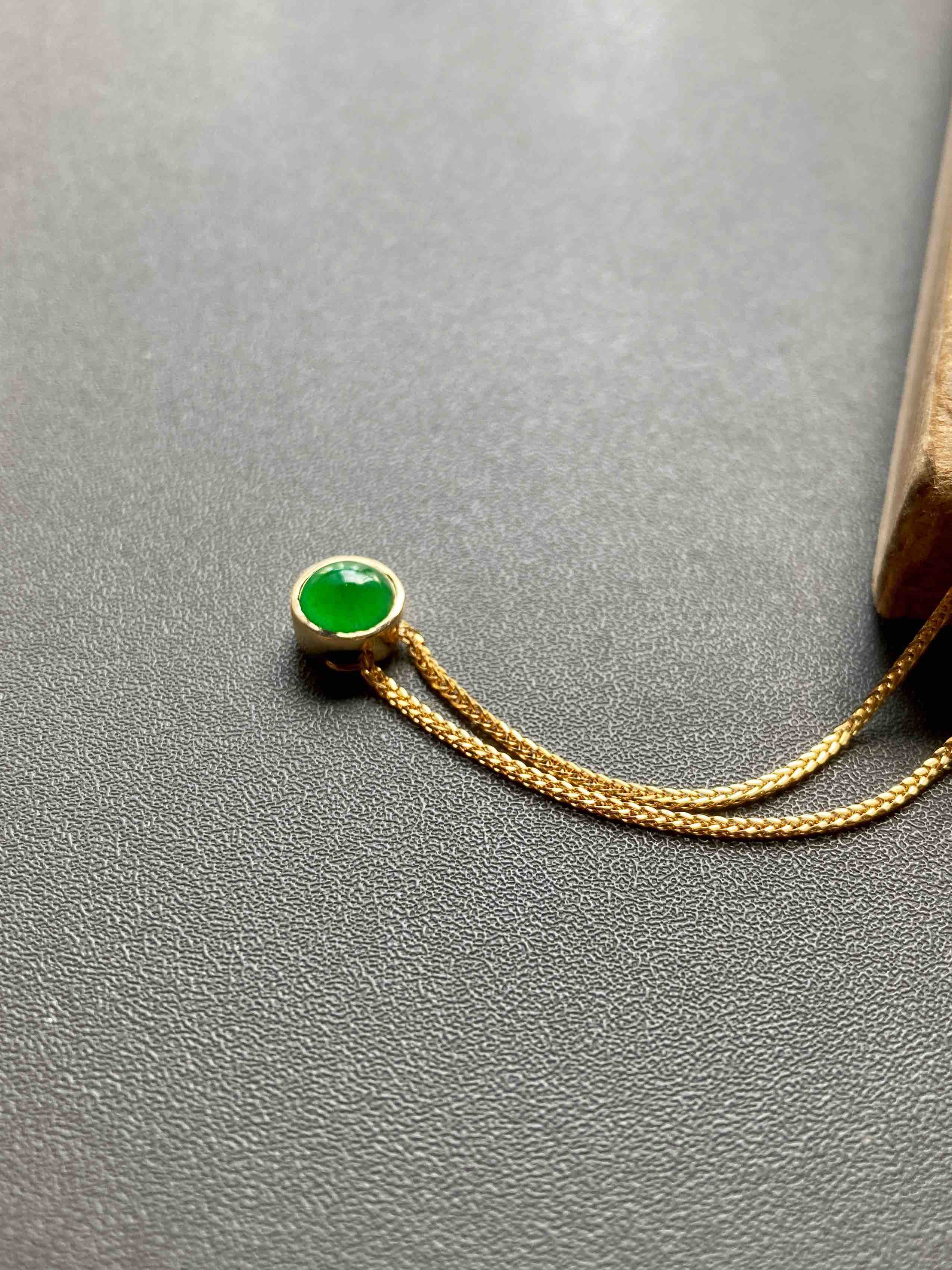 冰种阳绿翡翠蛋面吊坠18k黄金镶嵌