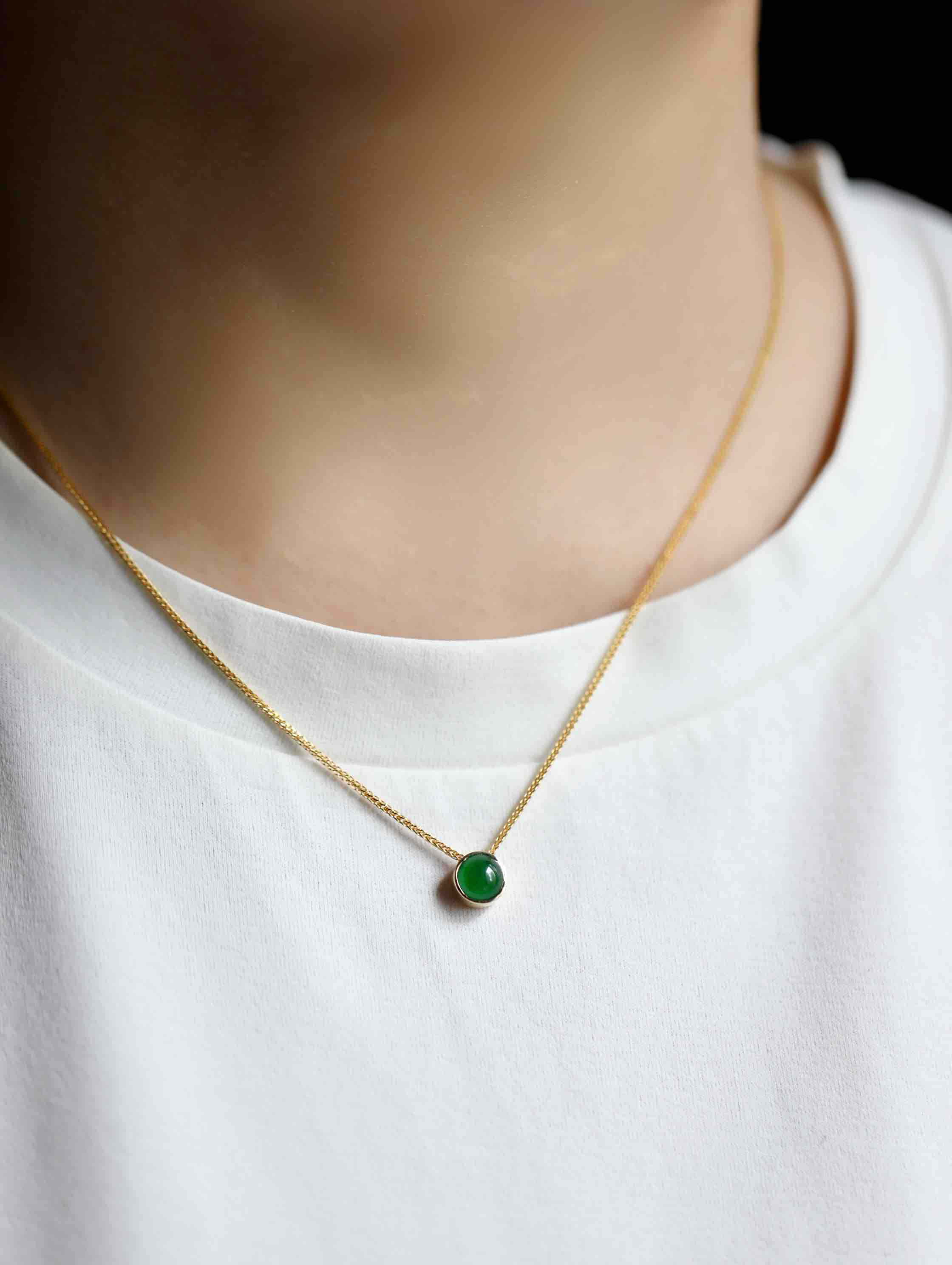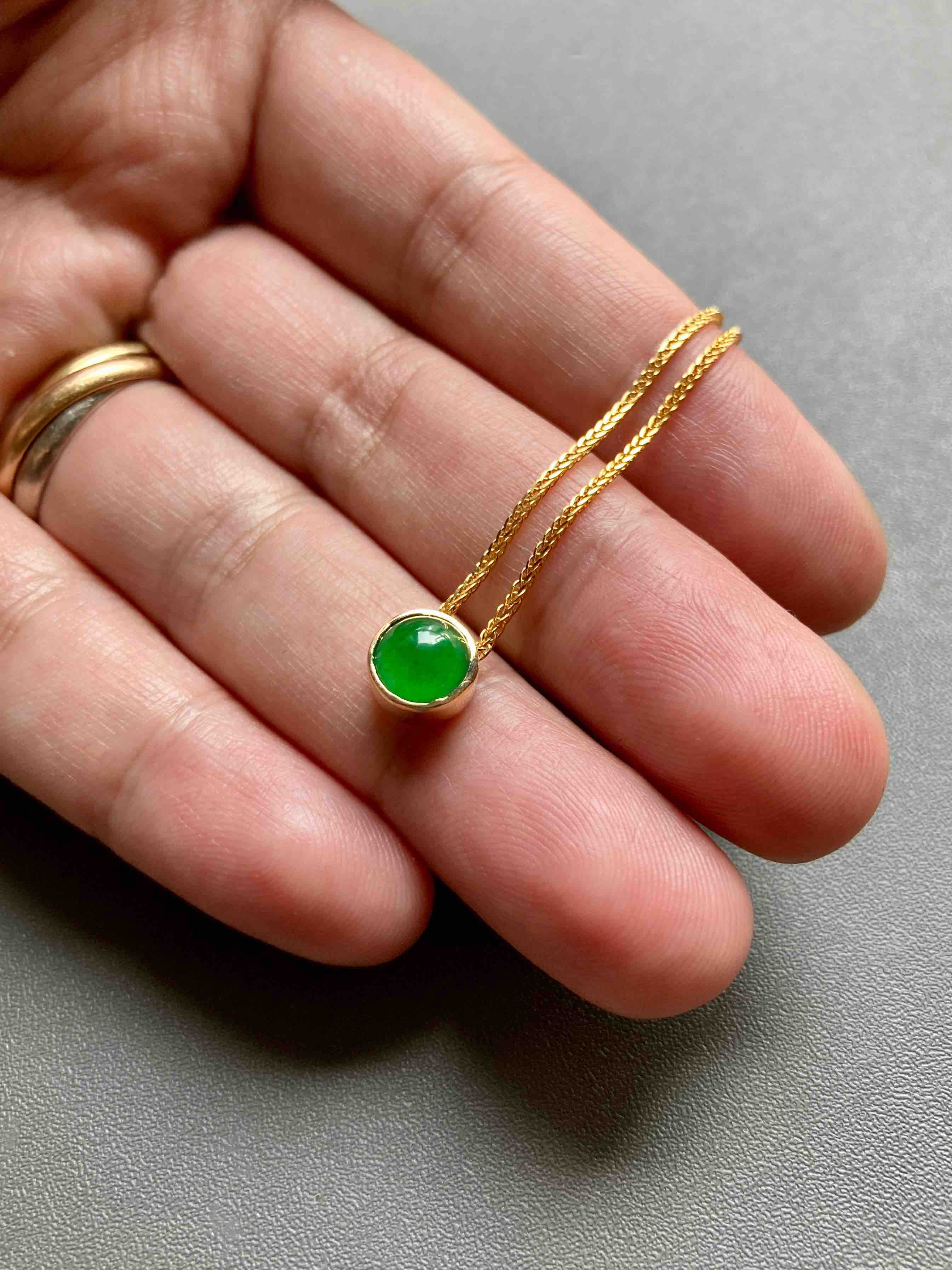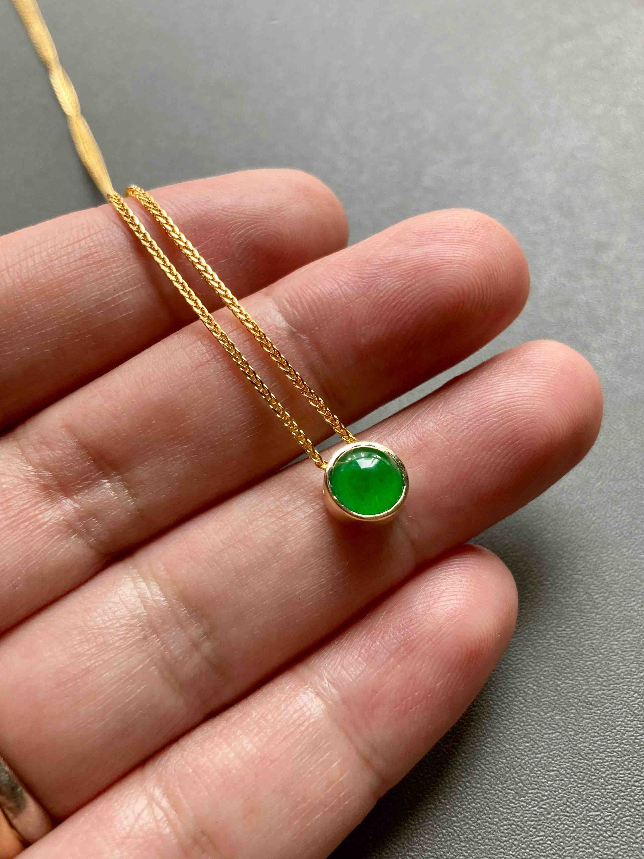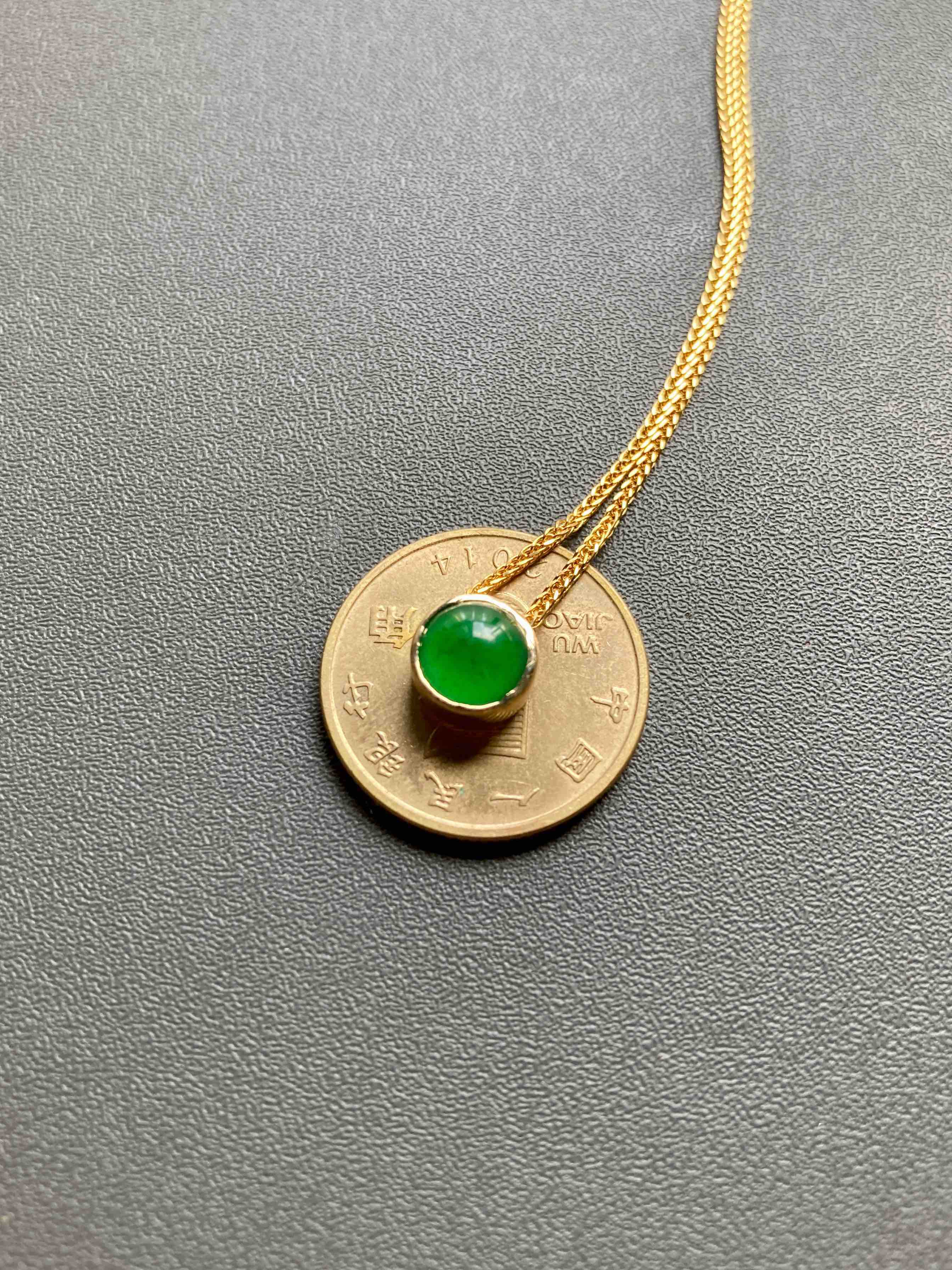 冰种阳绿翡翠蛋面吊坠18k黄金镶嵌