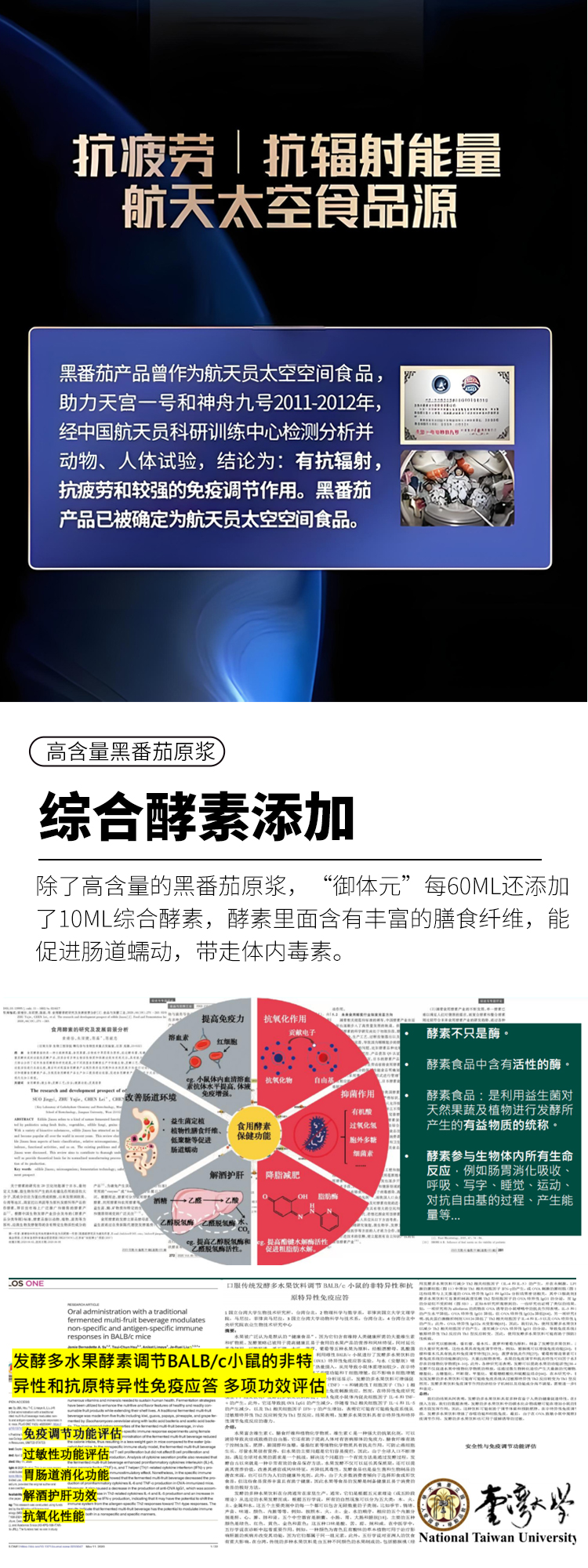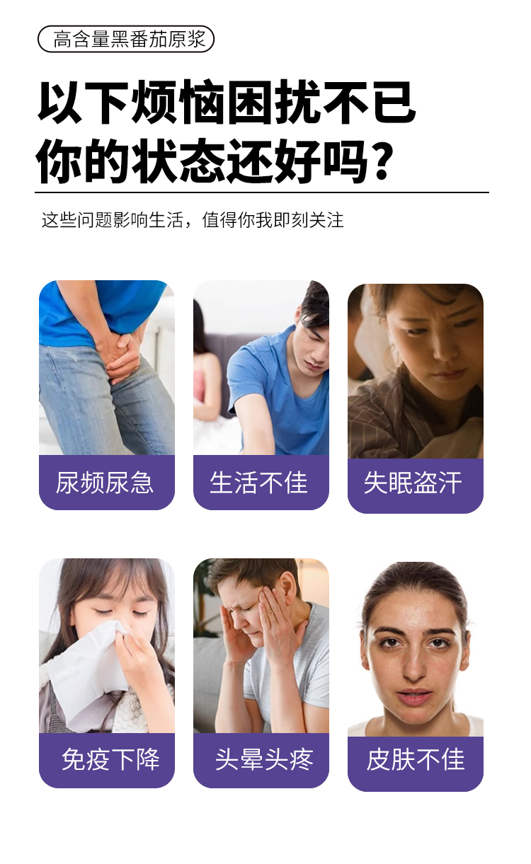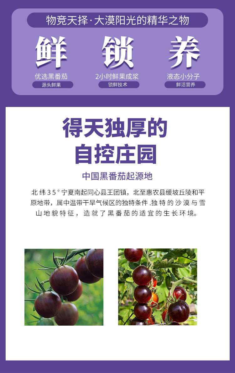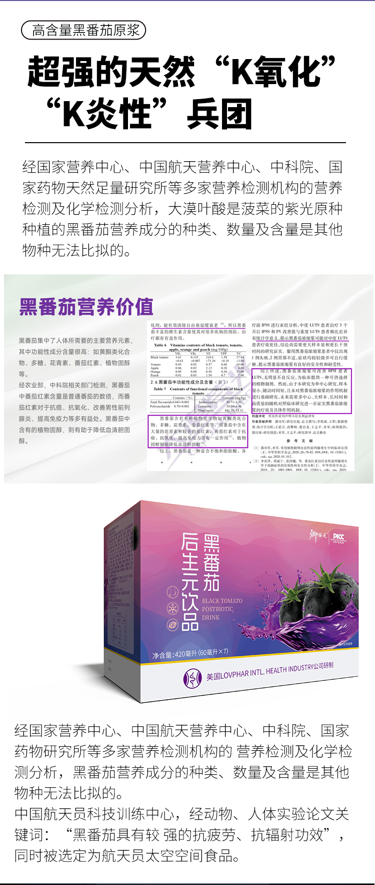 【成分】黑番茄原浆78%,综合浓缩果蔬发酵液[蔬果发酵液(苹果、香蕉、甘薯、菠萝、西兰花、球茎甘蓝、木瓜、青梅、西瓜、胡萝卜、葡萄柚、甜瓜、芥蓝、番石榴、杨桃、葡萄、莲雾、柠檬、花椰菜、芜菁、萝卜、山药、马铃薯、牛蒡根、芋头、苋菜、蕹菜、冬瓜、西葫芦、甘薯叶、苦瓜、根恭菜、豆瓣菜、丝瓜、黄瓜、南瓜、柿子、大白菜、芦笋、枣、芹菜、叶用芥菜、结球甘蓝、菠菜、叶用莴苣、青椒、番茄、银耳、木薯、佛手瓜、金针菇、草菇、火龙果、黑木耳、李子、茄子、木耳菜、姜、豌豆、油菜、雪里蕻、水蜜桃、西番莲、猕猴桃、柑橘、橙子、诺丽果浆、番荔枝)、低聚异麦芽糖、山梨糖醇]16.4695%,蓝莓浓缩汁5%,胶原三肽,雨生红球藻粉,银耳多糖,透明质酸钠,烟酰胺,后生元(灭活乳酸菌PostbioP-6)