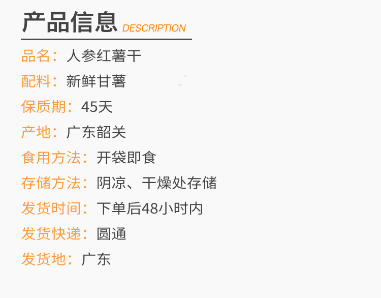 候物人参红薯干 满嘴香地瓜干 250g/袋