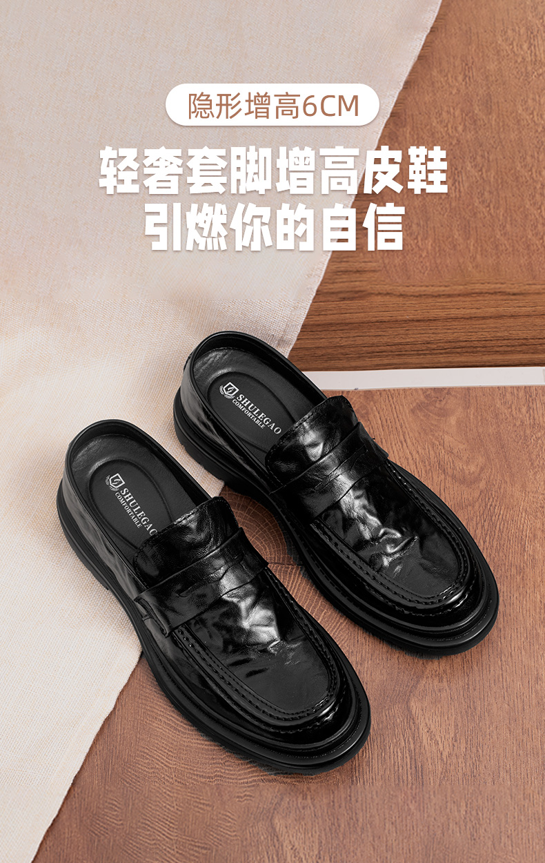 舒乐高男鞋皮鞋男款内增高10cm商务正装鞋男真皮德比鞋厚底结婚鞋