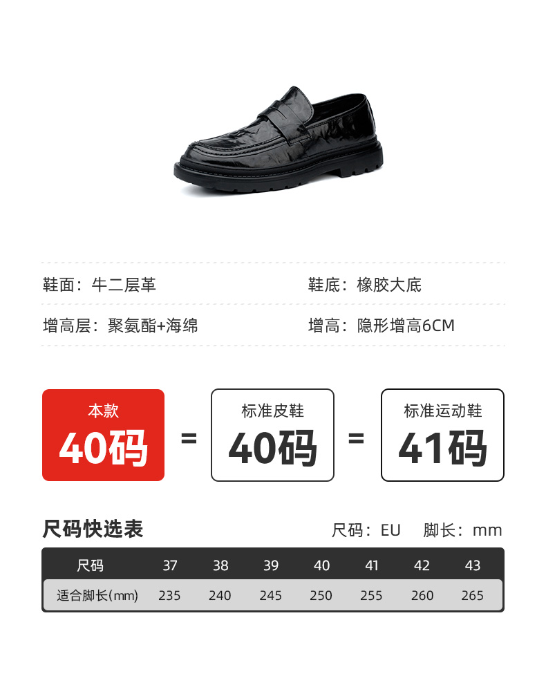 皮鞋男正装商务德比鞋男士皮鞋男结婚内增高6cm休闲皮鞋黑