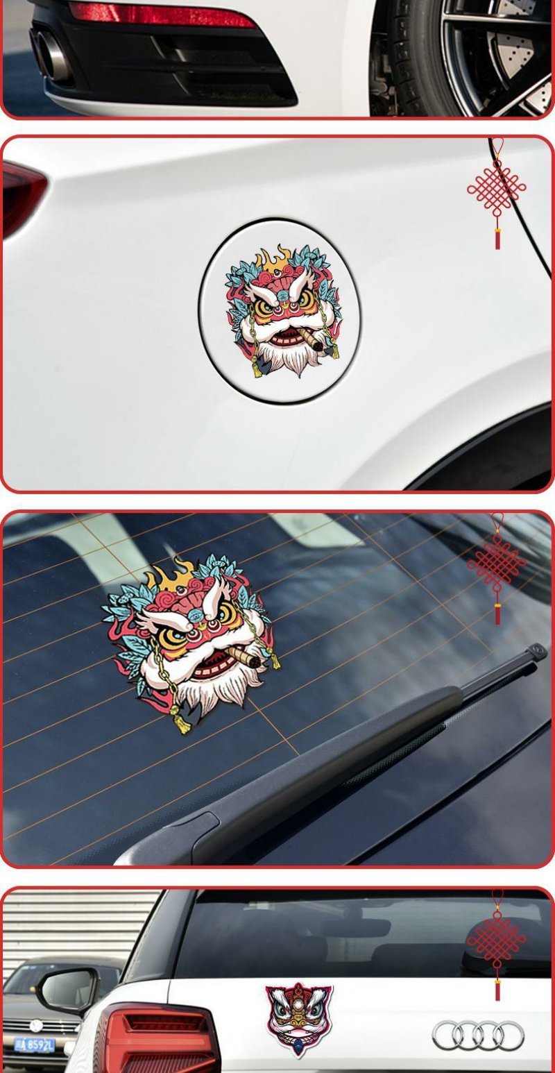 个性反光国潮狮子车贴时来运油箱盖贴纸摩托车贴车门遮挡划痕贴