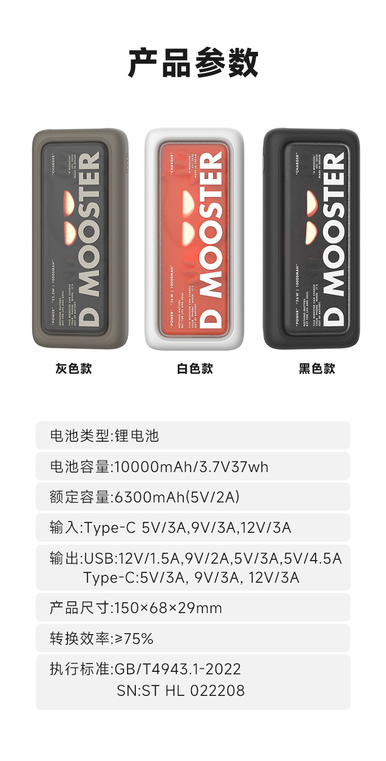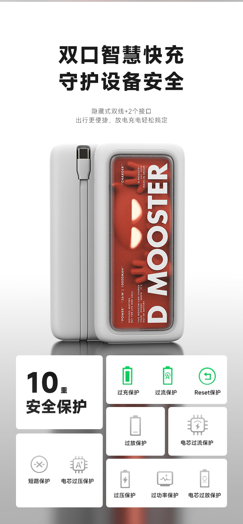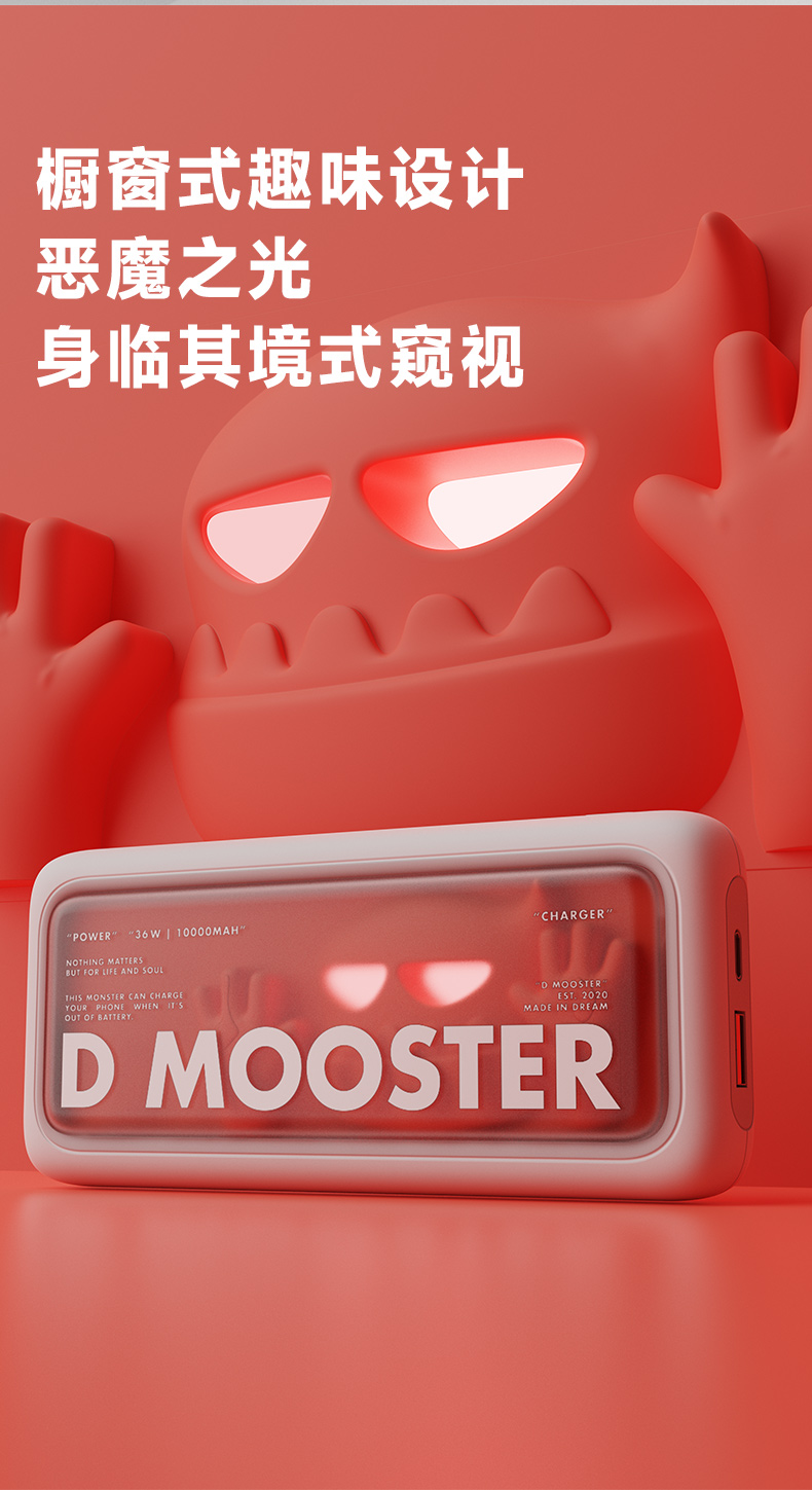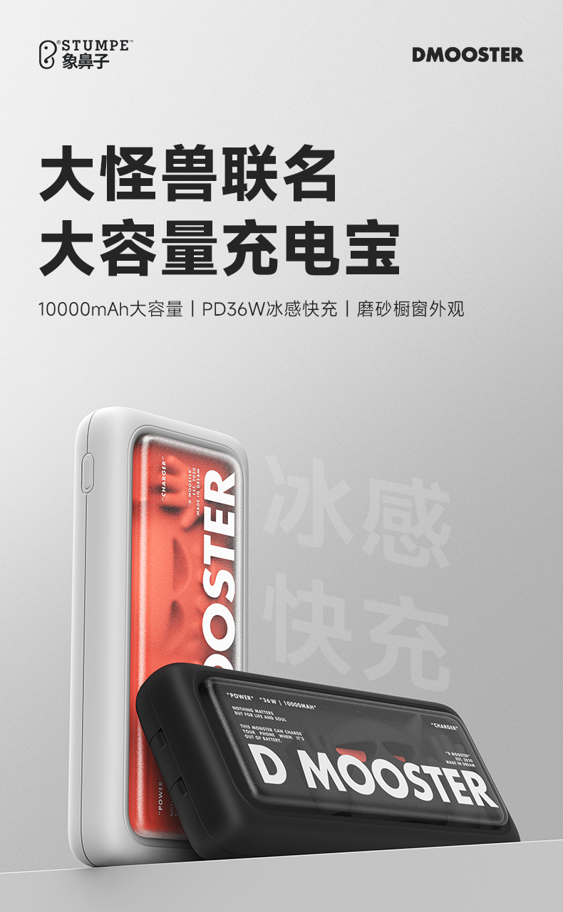 象鼻子联名大怪兽10000毫安充电宝 自带线双向快充大容量闪充小巧移动电源闪充户外 D52充电宝