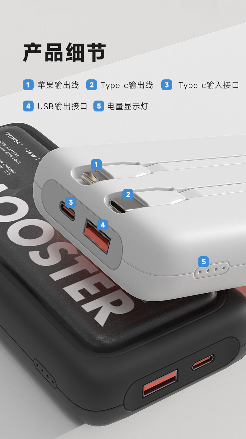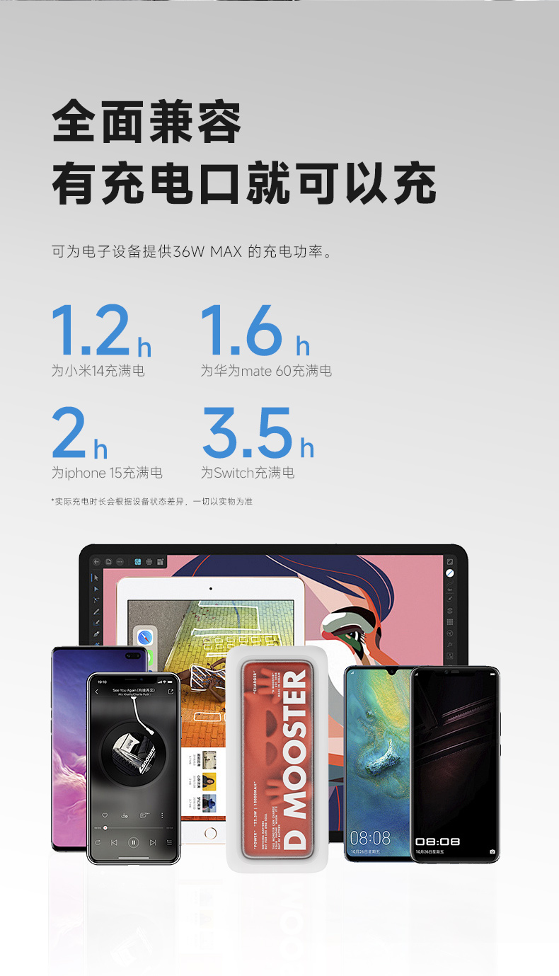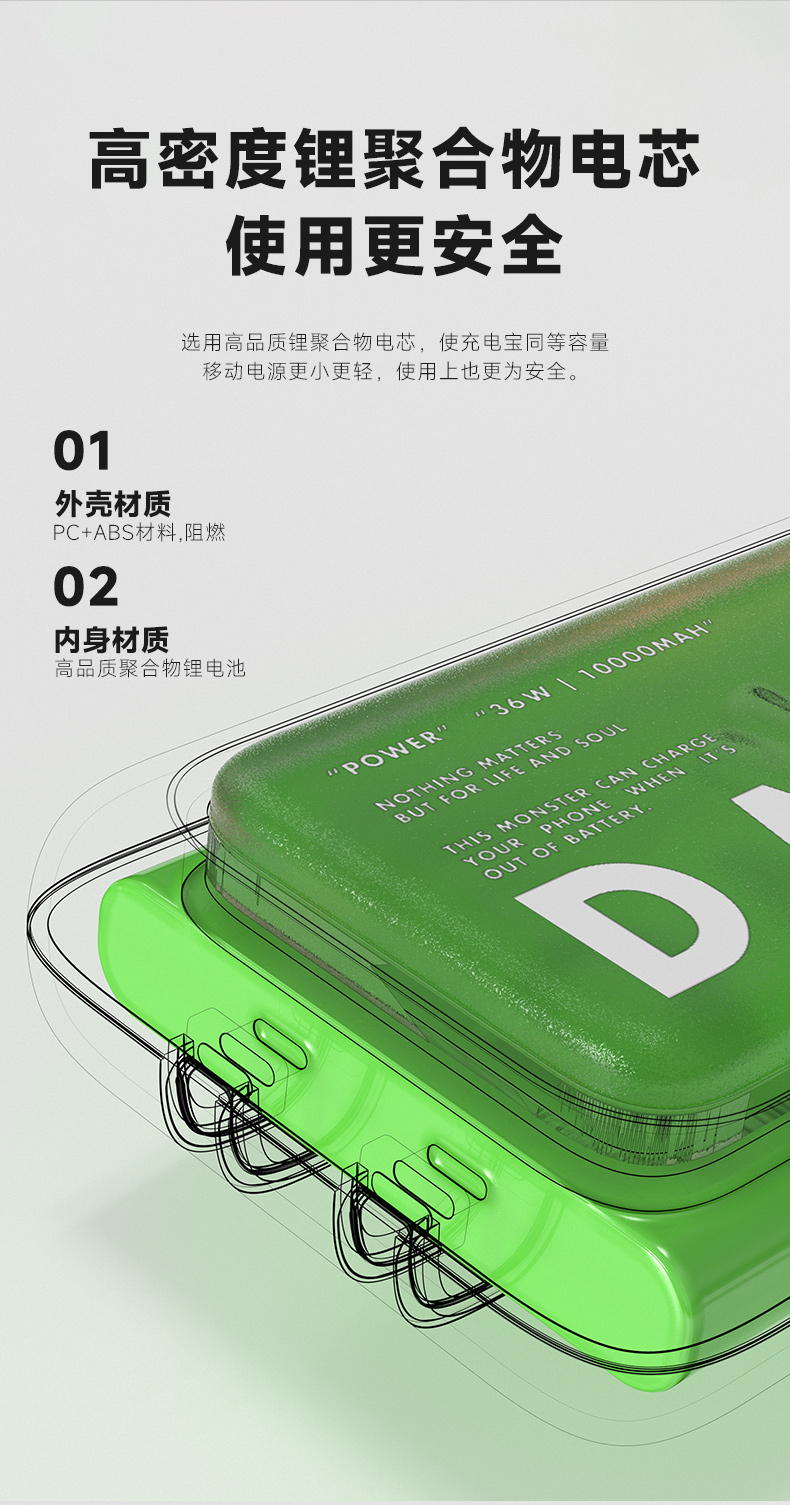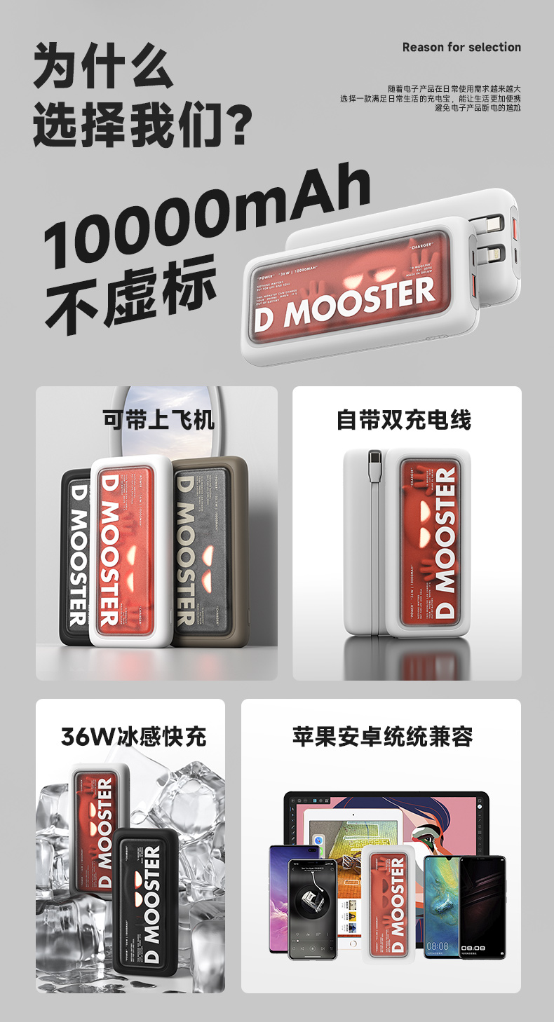 象鼻子联名大怪兽10000毫安充电宝 自带线双向快充大容量闪充小巧移动电源闪充户外 D52充电宝