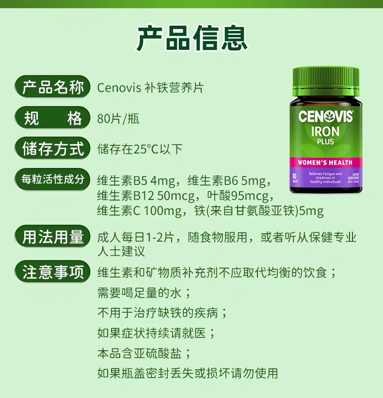 Cenovis铁片是小斯从墨尔本线下药店购入统一邮寄到国内再寄到大家的地址哦发货时间暂不确定