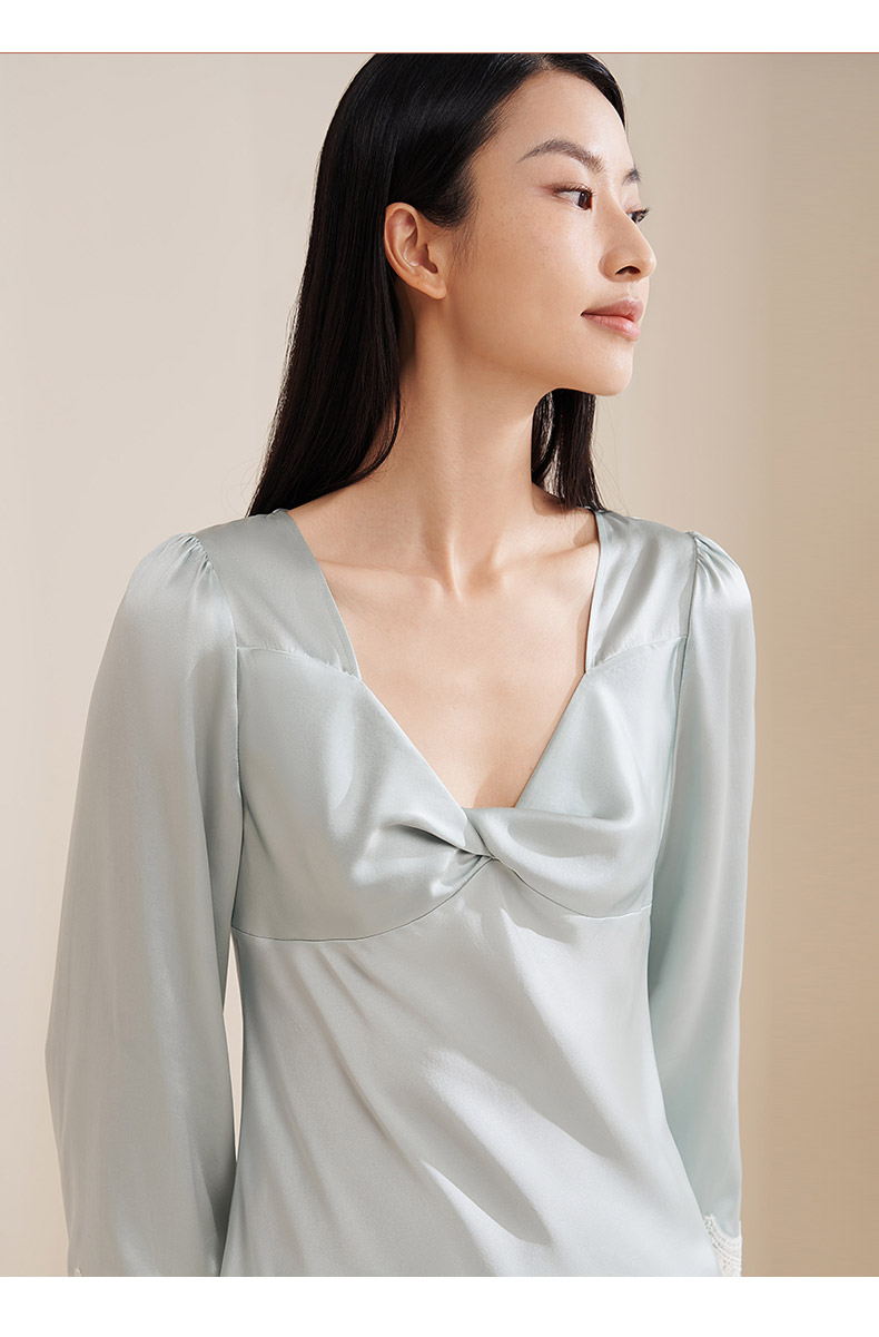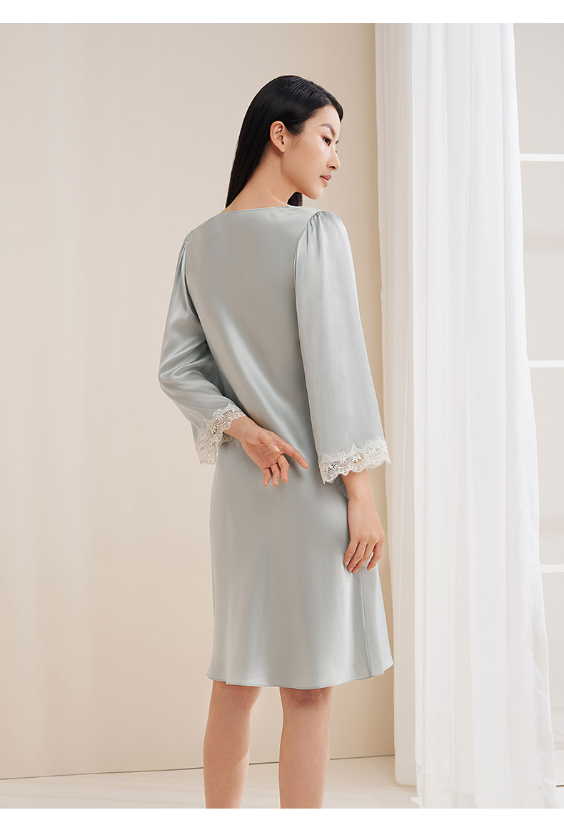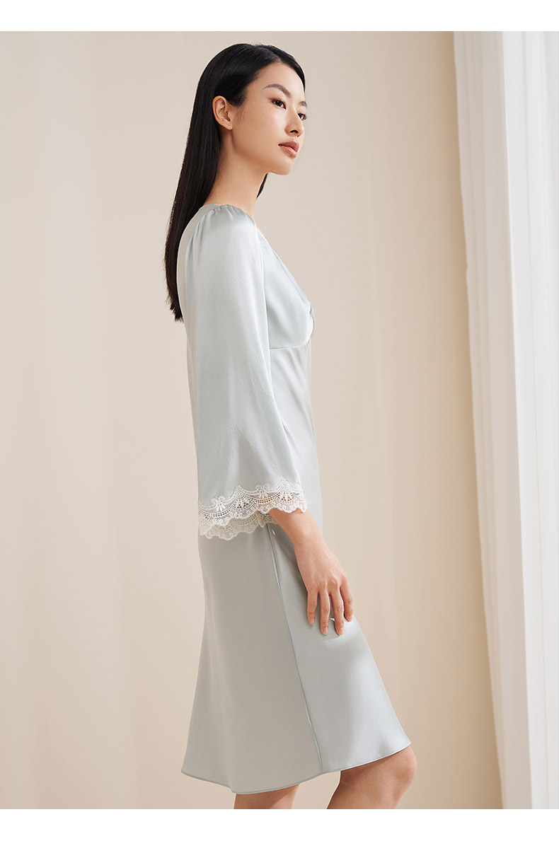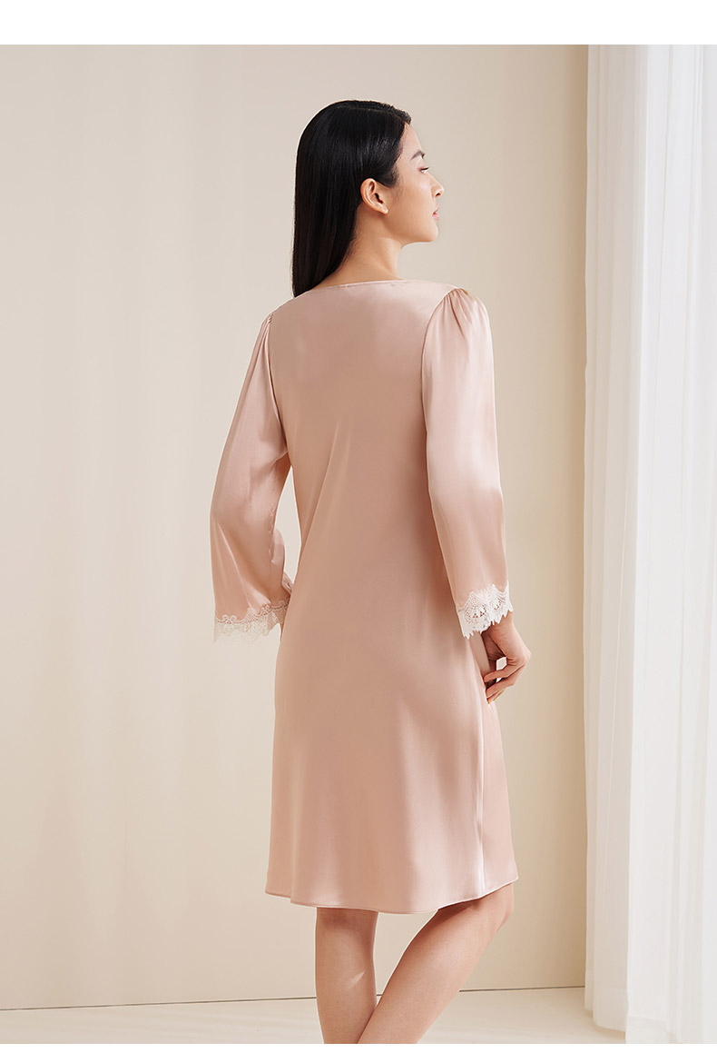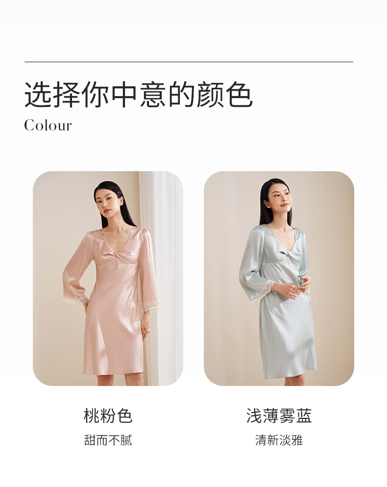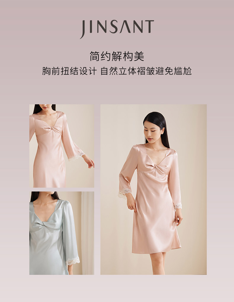 金三塔真丝睡裙女春新品蕾丝家居服100%桑蚕丝时尚扭结可外穿睡衣 YSFEA301