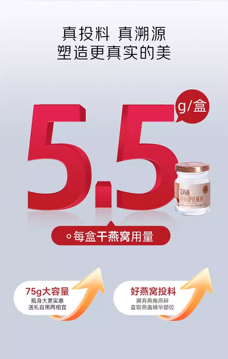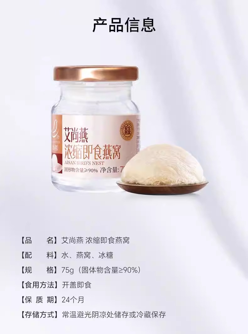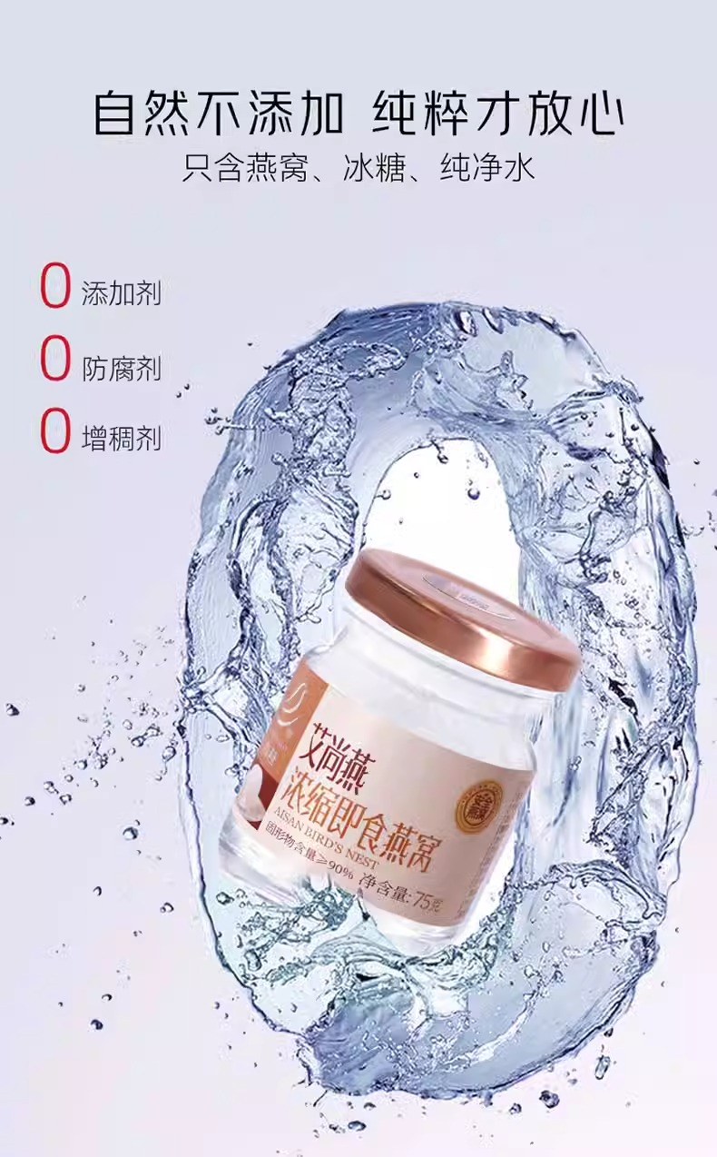 艾尚燕冰糖即食燕窝75g单瓶大容量鲜炖燕窝孕产妇中老年滋补营养品单瓶气柱包装