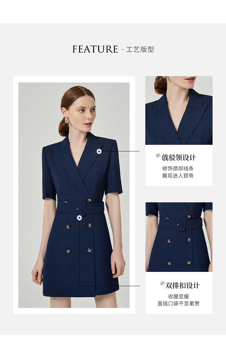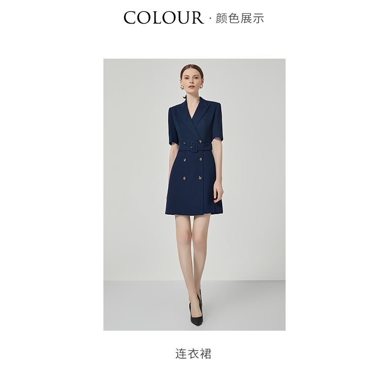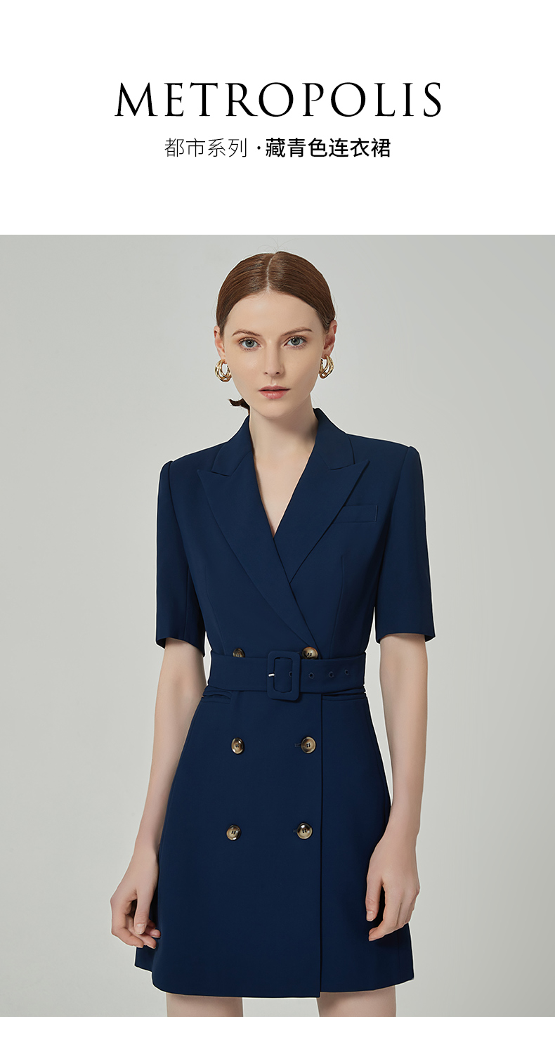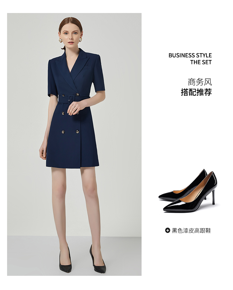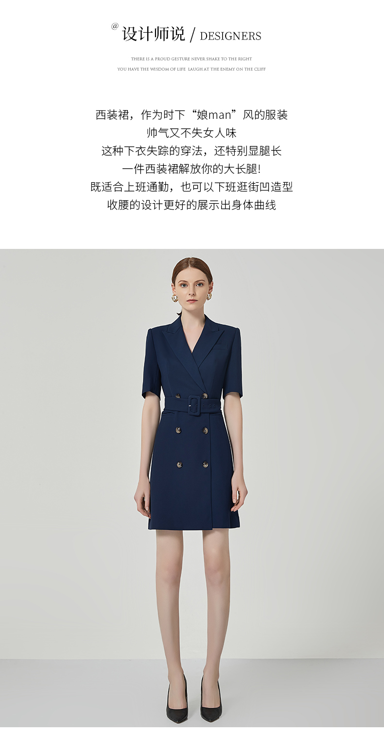 ewy夏季新款藏青色职业连衣裙女修身显瘦气质短袖西装裙工装正装