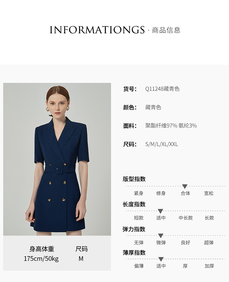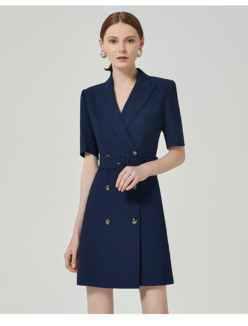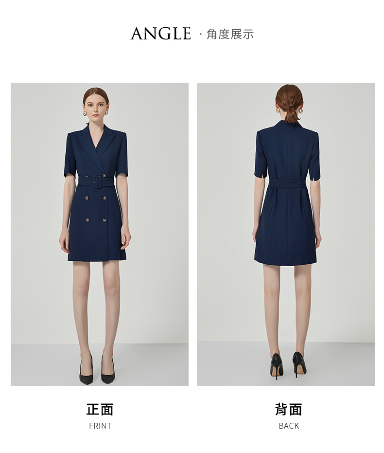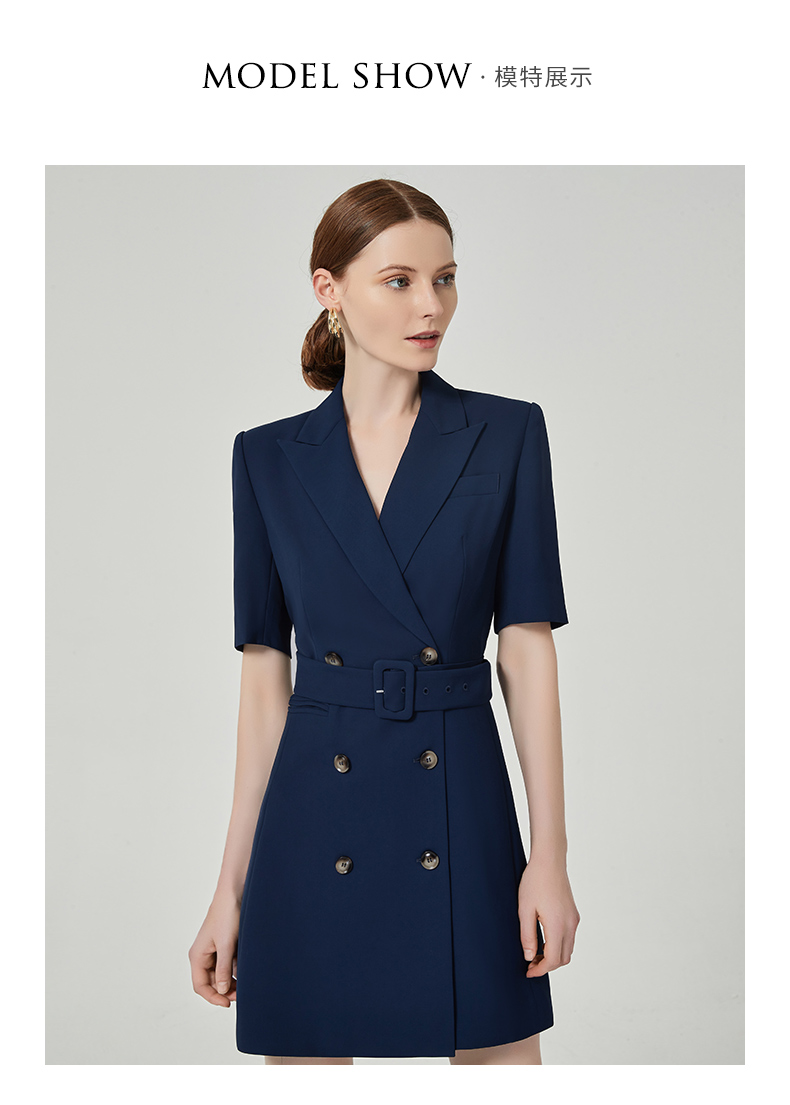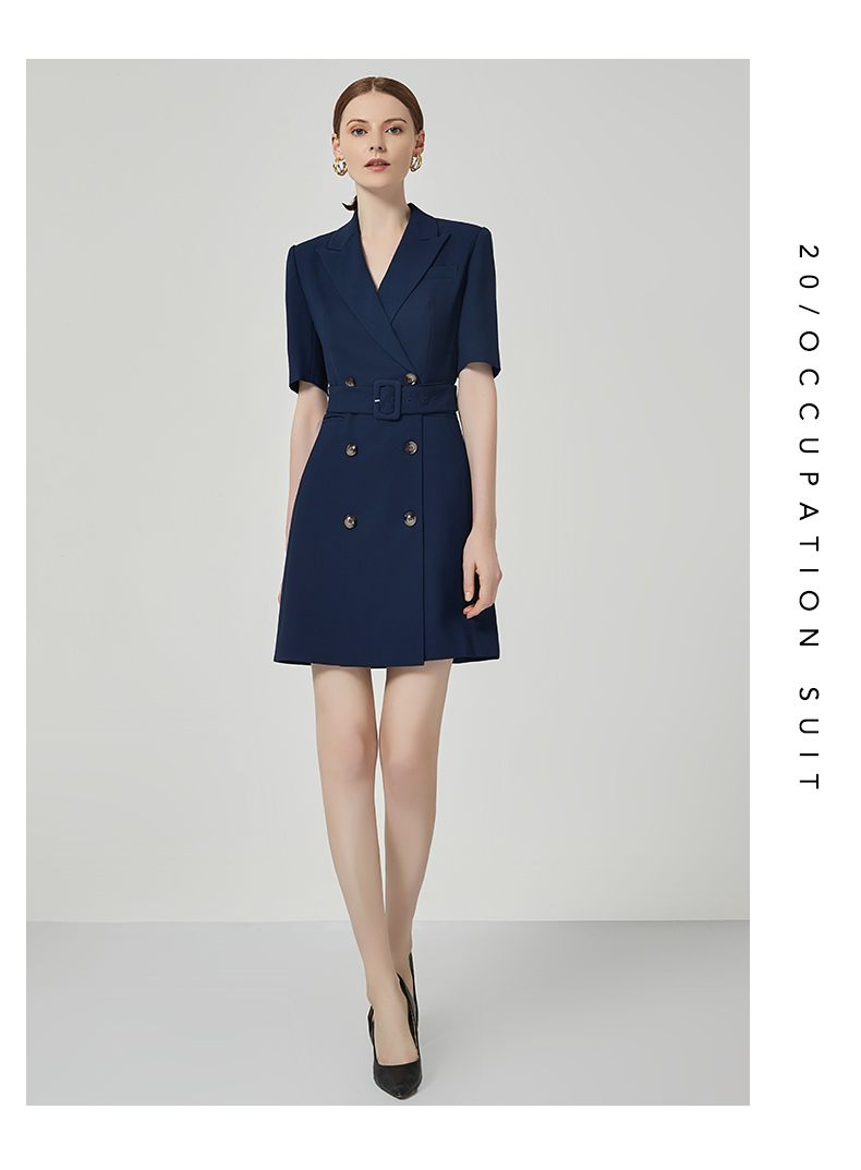 ewy夏季新款藏青色职业连衣裙女修身显瘦气质短袖西装裙工装正装
