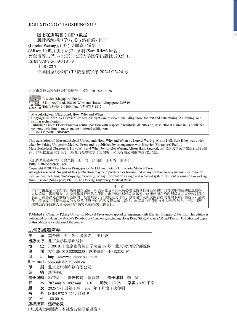 肌骨系统超声学 超声图像优化和安全防护 肌骨系统超声的基本原则概述 主译冀全博 王岩 张国强等