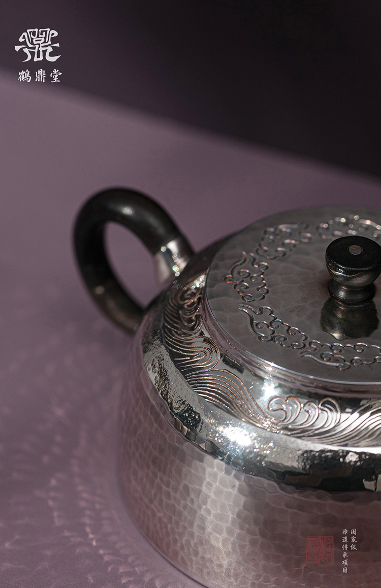鹤鼎堂银壶于野系列康年錾刻花边急须(缺货)