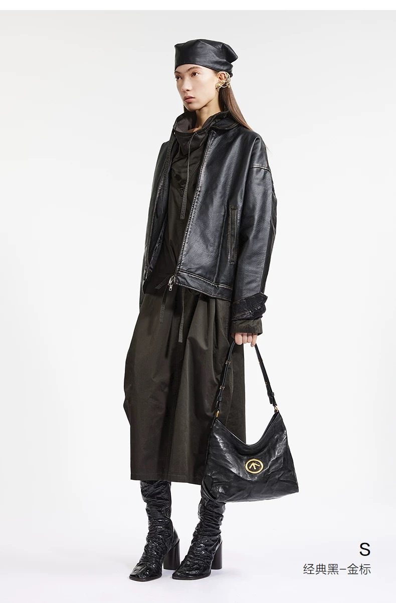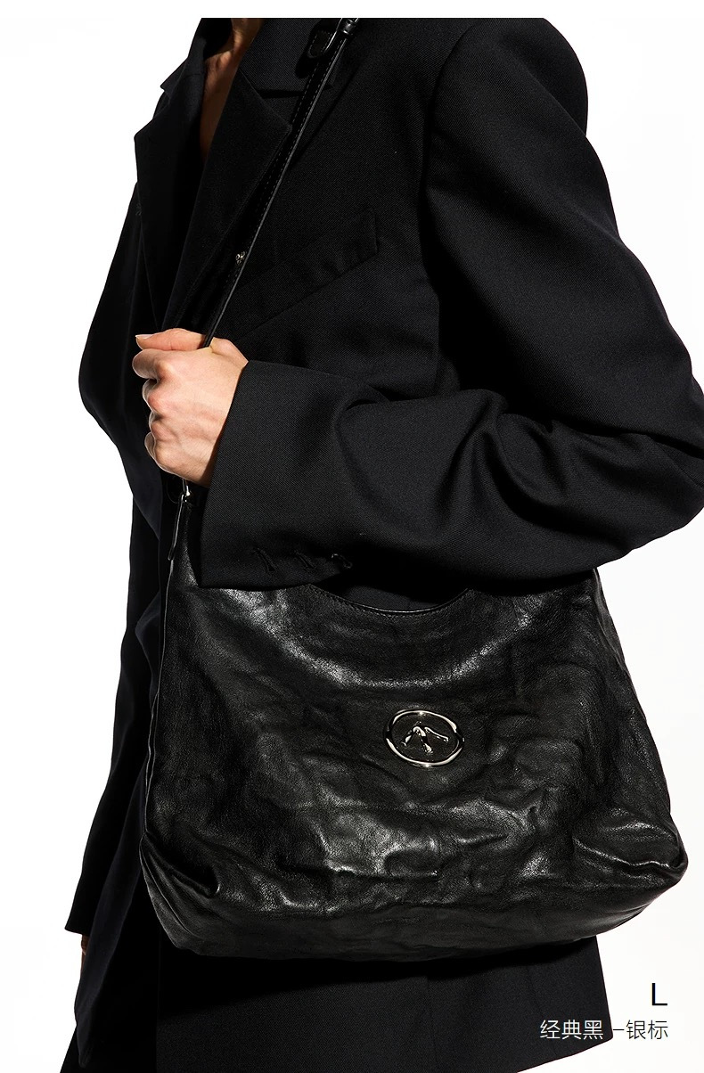 .大号和中号!GROTT*|个乐黑石植鞣绵羊皮hobo包大容量包包 男女同款