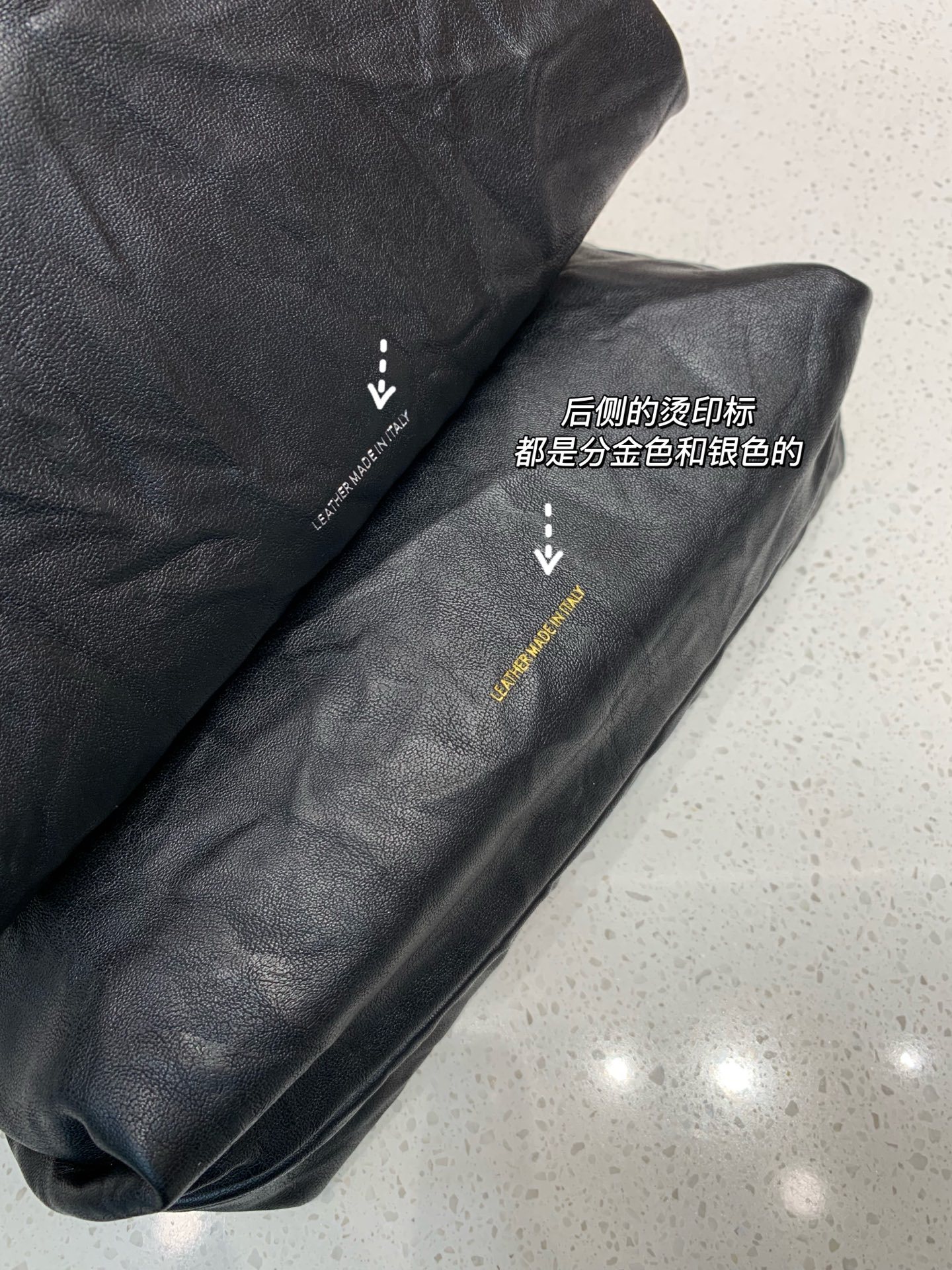 金标显贵气、银标显清冷,岩石褶皱肌理,越摸越有质感,包身线条简约中性,男女都能背的哈,搭配西装是干练职场风,配卫衣是街头休闲感,通勤约会无缝切换,明星博主都在背,必须自留一只了!